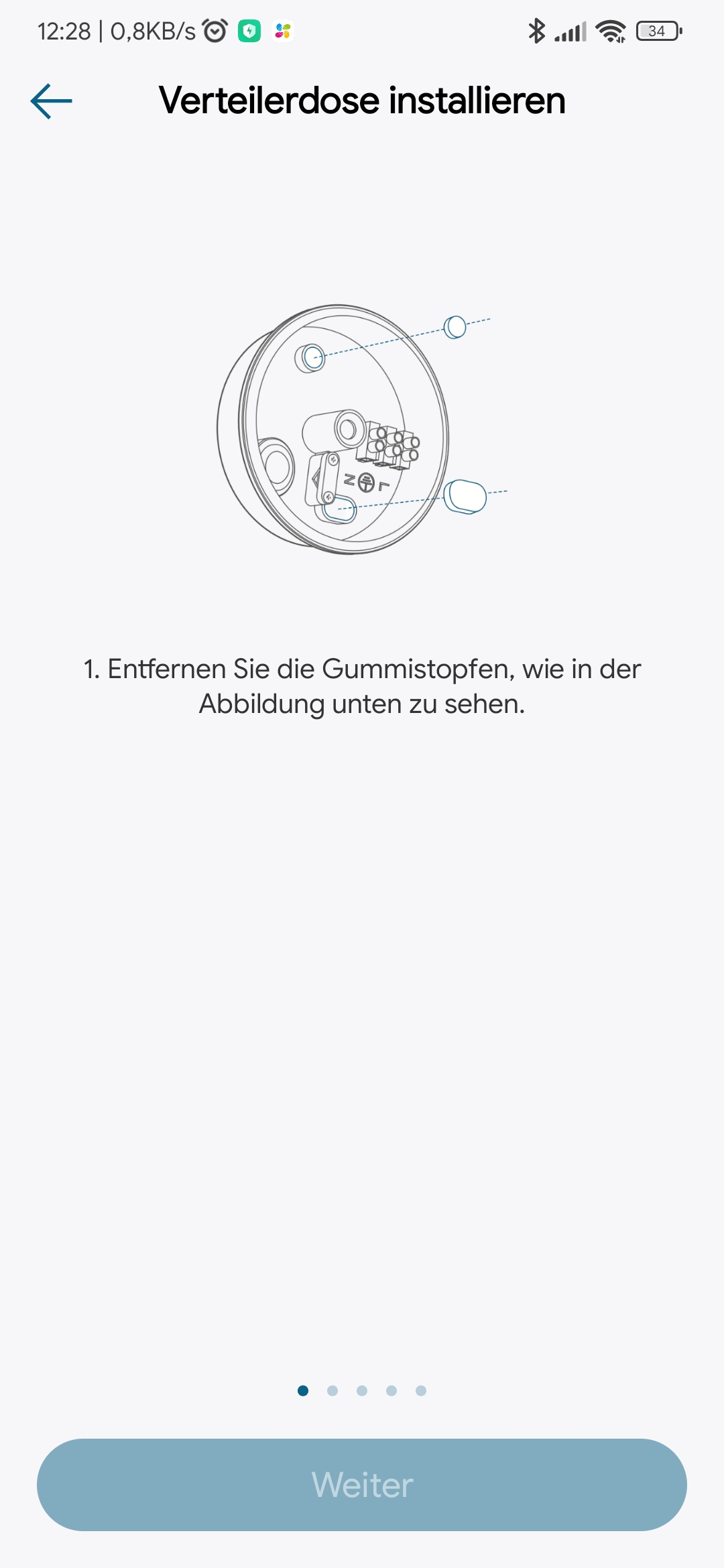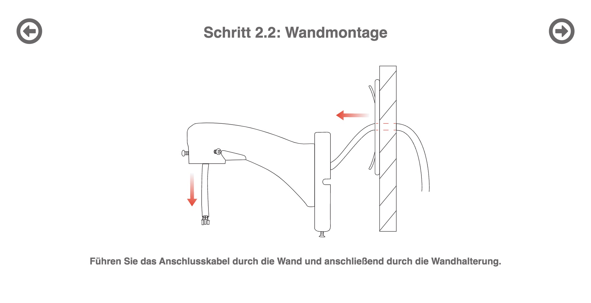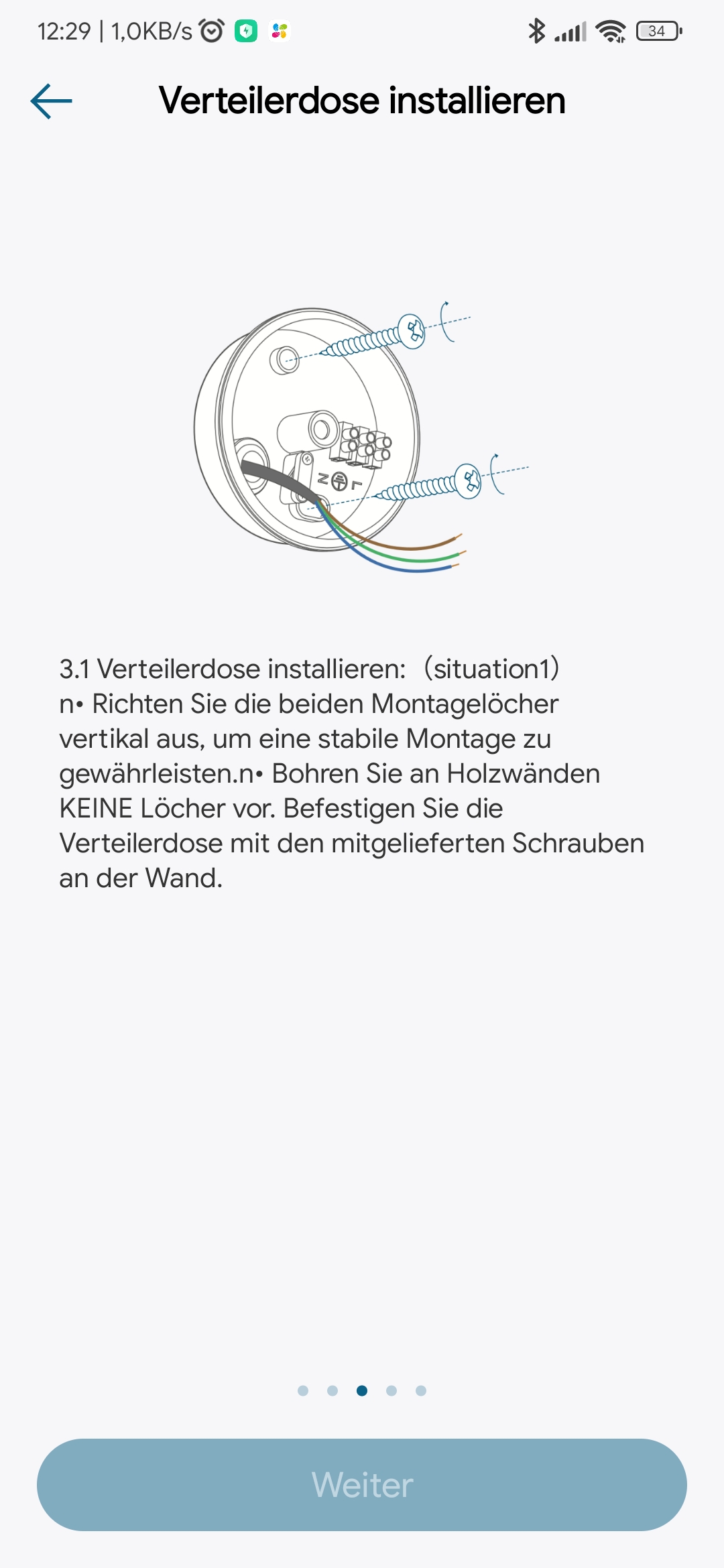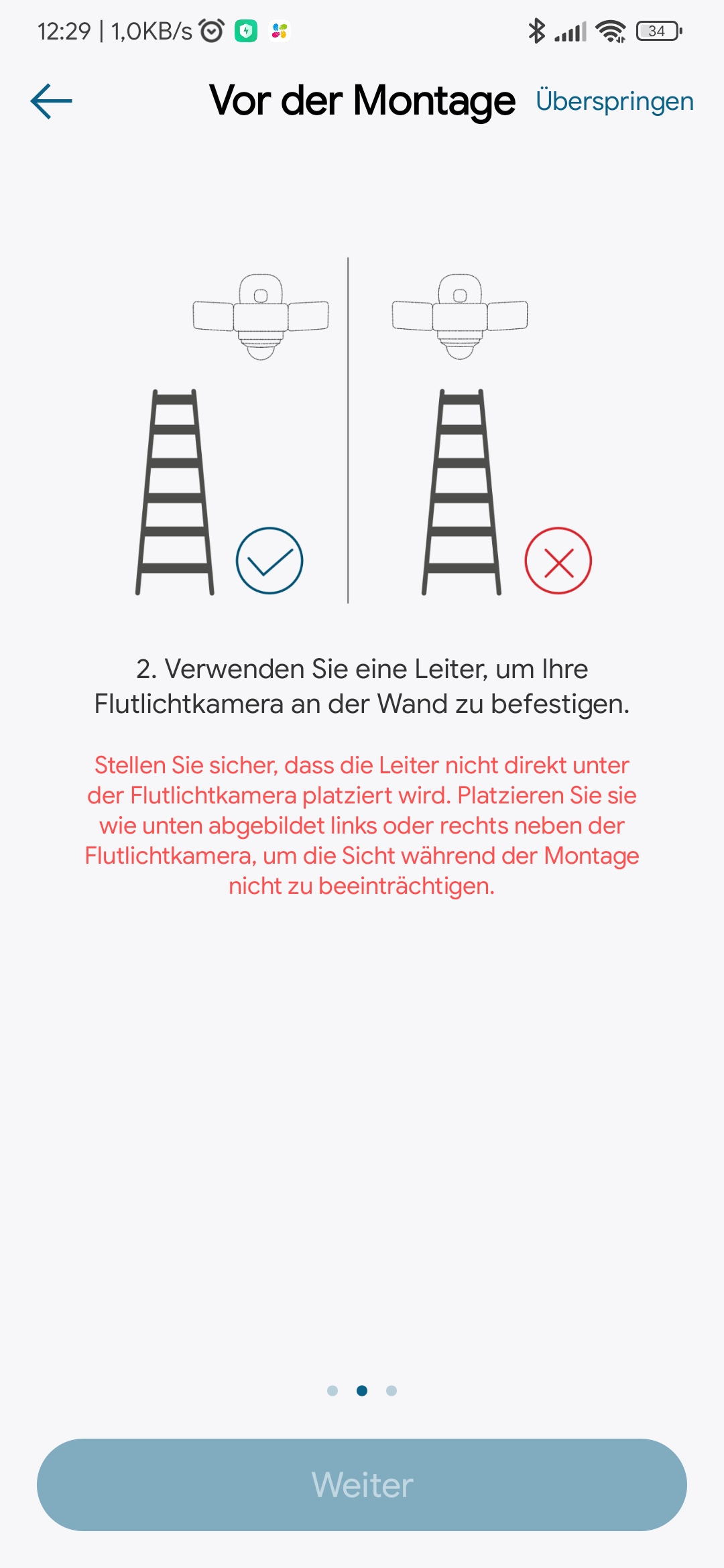 Im Lieferumfang sind für die Montage nötige Halterungen, Schrauben und Dübel sowie eine Bohrschablone enthalten. Die englischsprachige Kurzanleitung bietet detaillierte Informationen zur Montage inklusive Befestigung des Solarpanels. Informationen zur Montage in deutscher Sprache gibt es online und auch detailliert in der App.