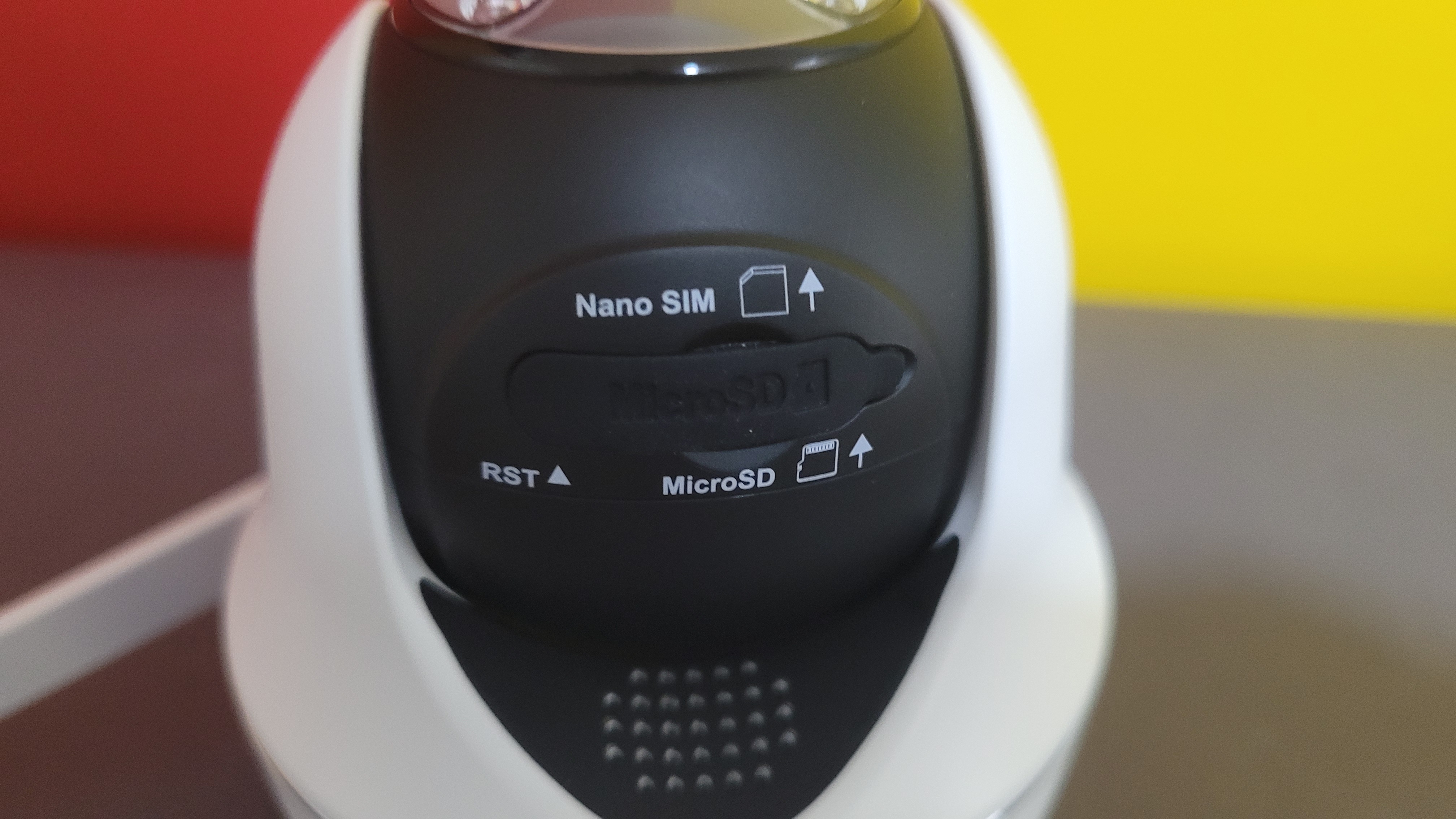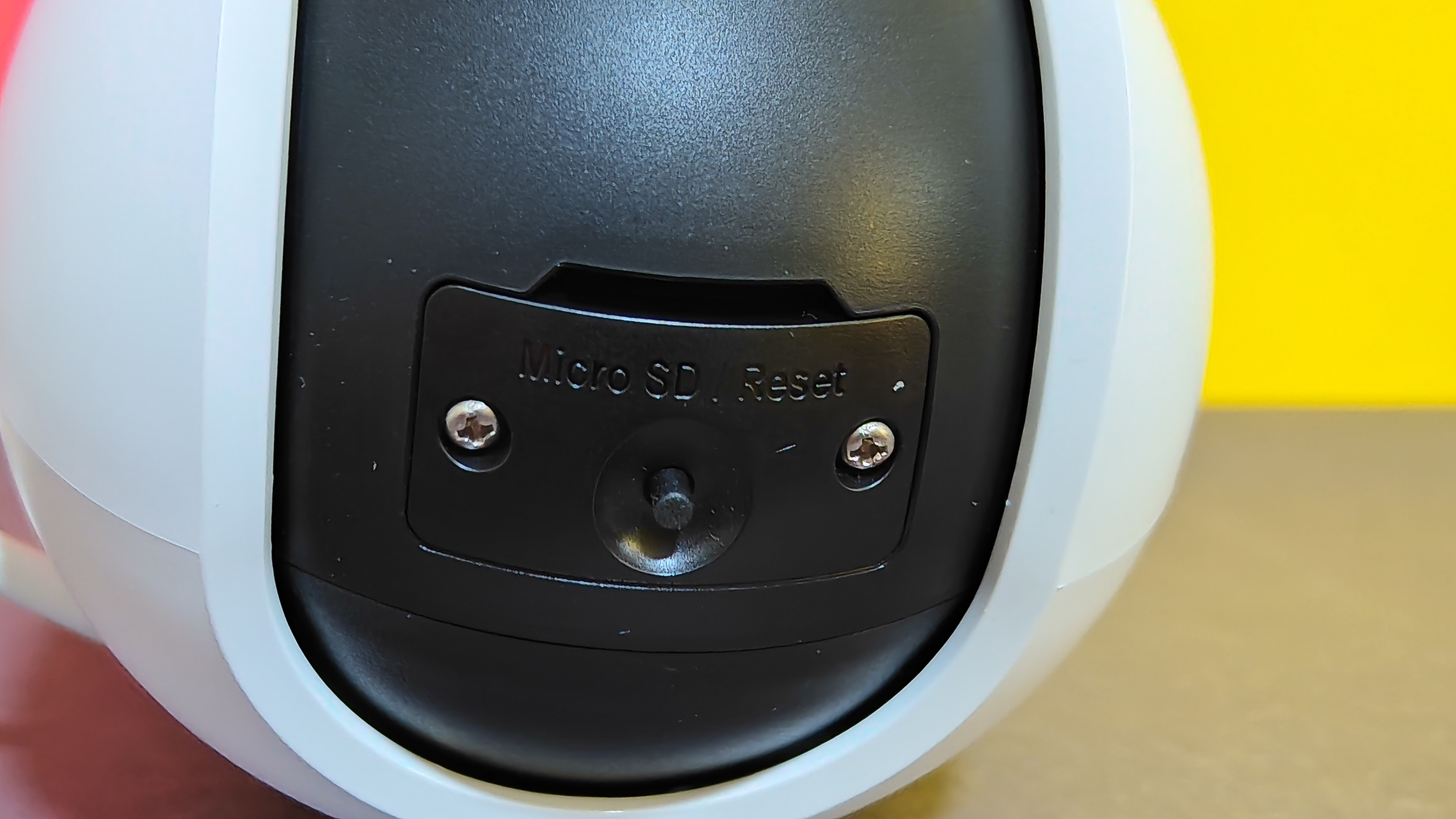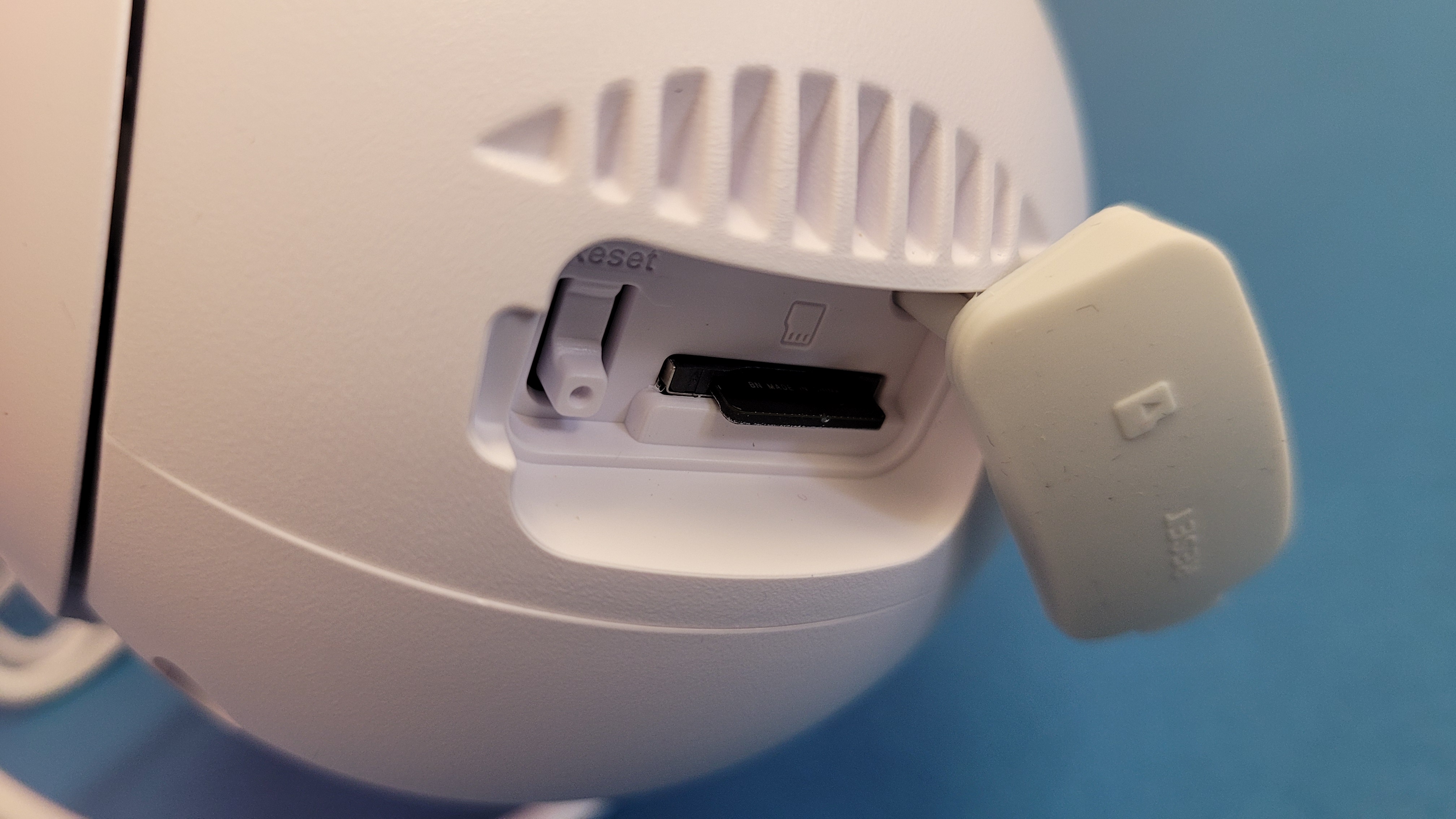 Bevor man mit einer der Tuya-kompatiblen Apps Elesion, Smartlife oder Tuya Smart die Kamera mit dem heimischen WLAN koppelt, legt man vorher noch eine microSD-Karte in den dafür vorgesehenen Slot, der sich unterhalb des Objektivs hinter einer Gummiabdeckung befindet. Dort ist auch der Reset-Knopf zum Zurücksetzen der Kamera untergebracht.