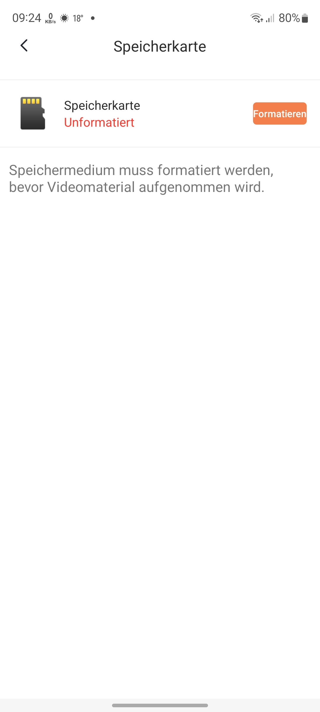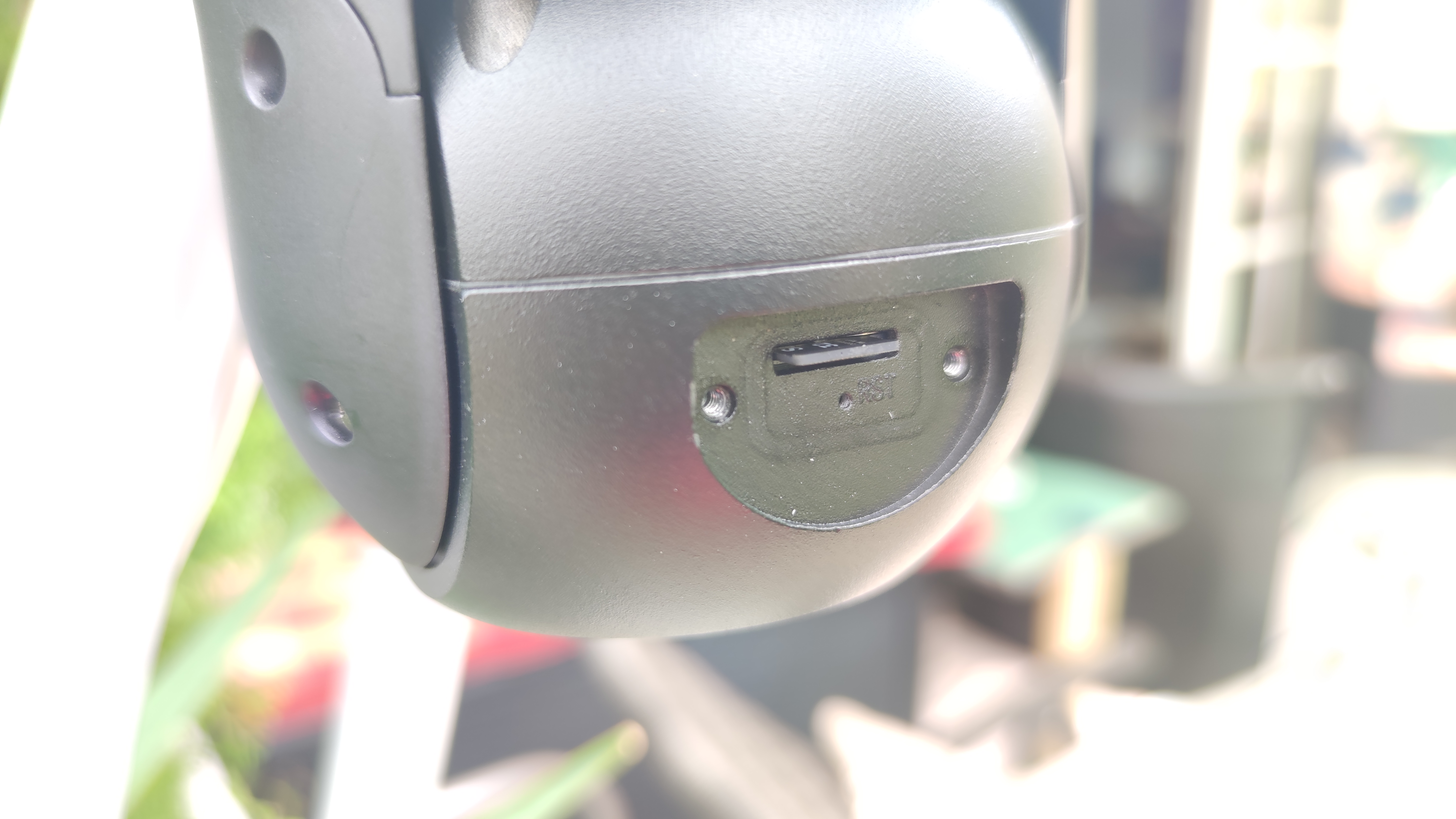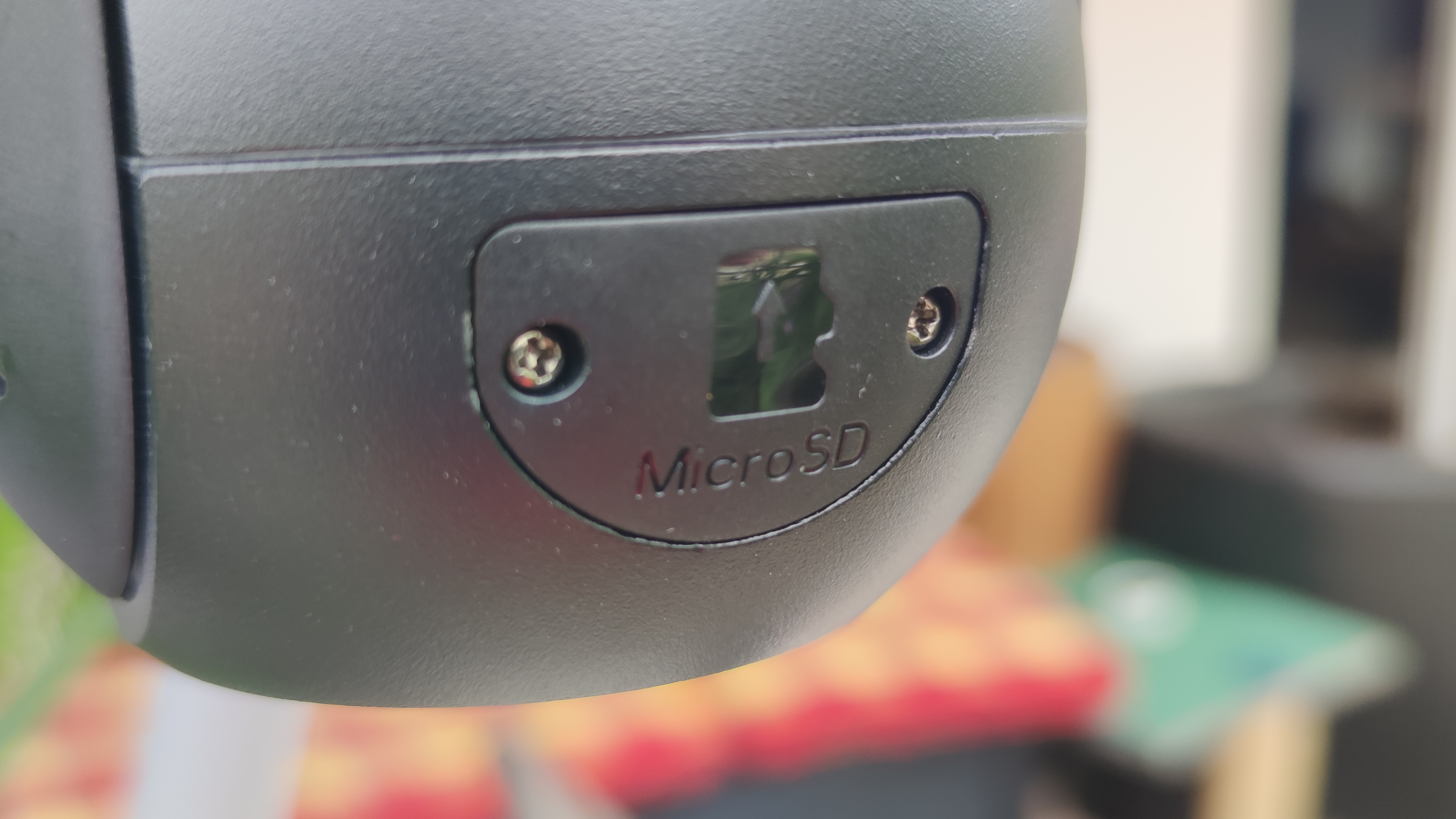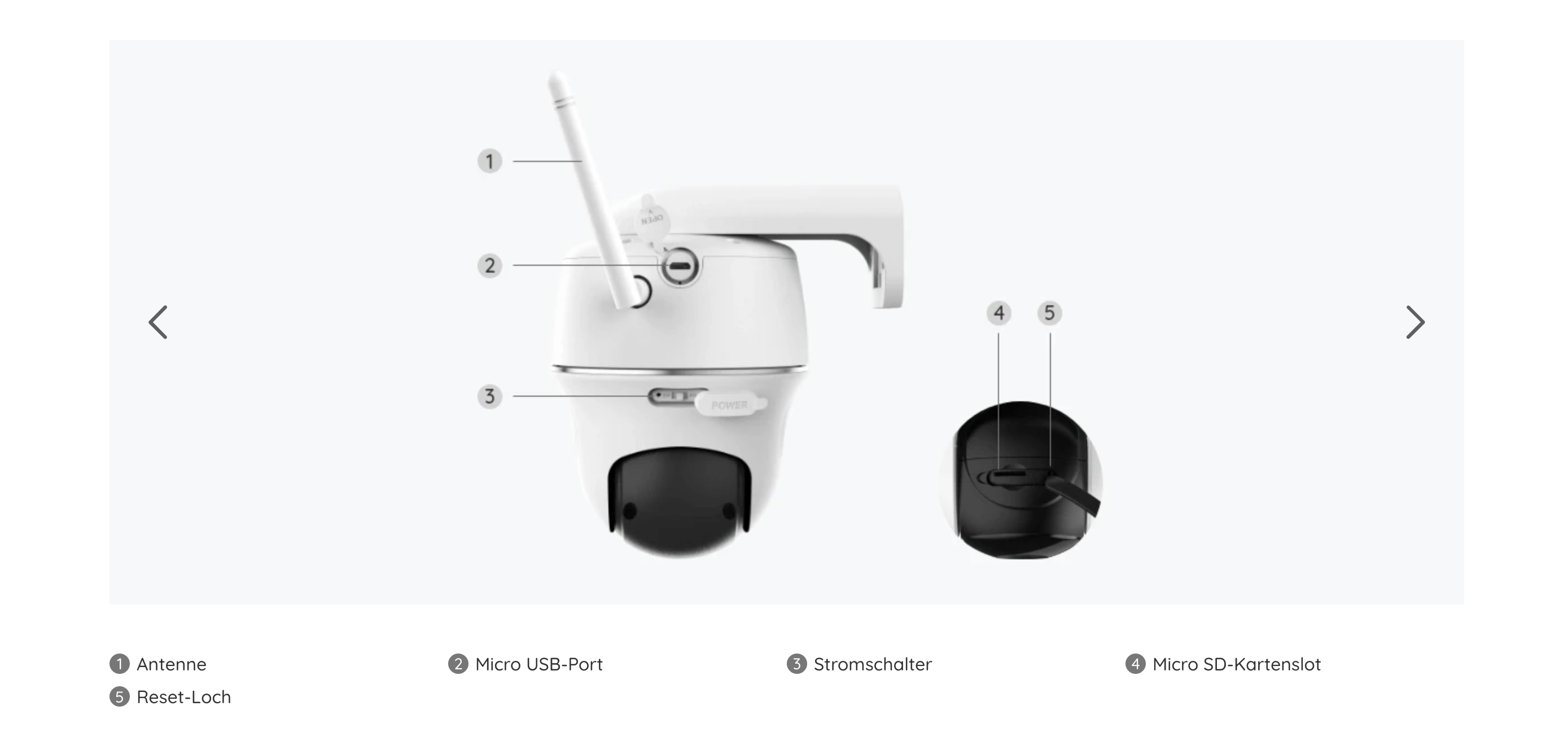Bevor man mit einer der Tuya-kompatiblen Apps Elesion, Smartlife oder Tuya Smart die Kamera mit dem heimischen WLAN koppelt, legt man vorher noch eine microSD-Karte in den dafür vorgesehenen Slot, der sich unterhalb des Objektivs hinter einer Gummiabdeckung befindet. Dort ist auch der Reset-Knopf zum Zurücksetzen der Kamera untergebracht.