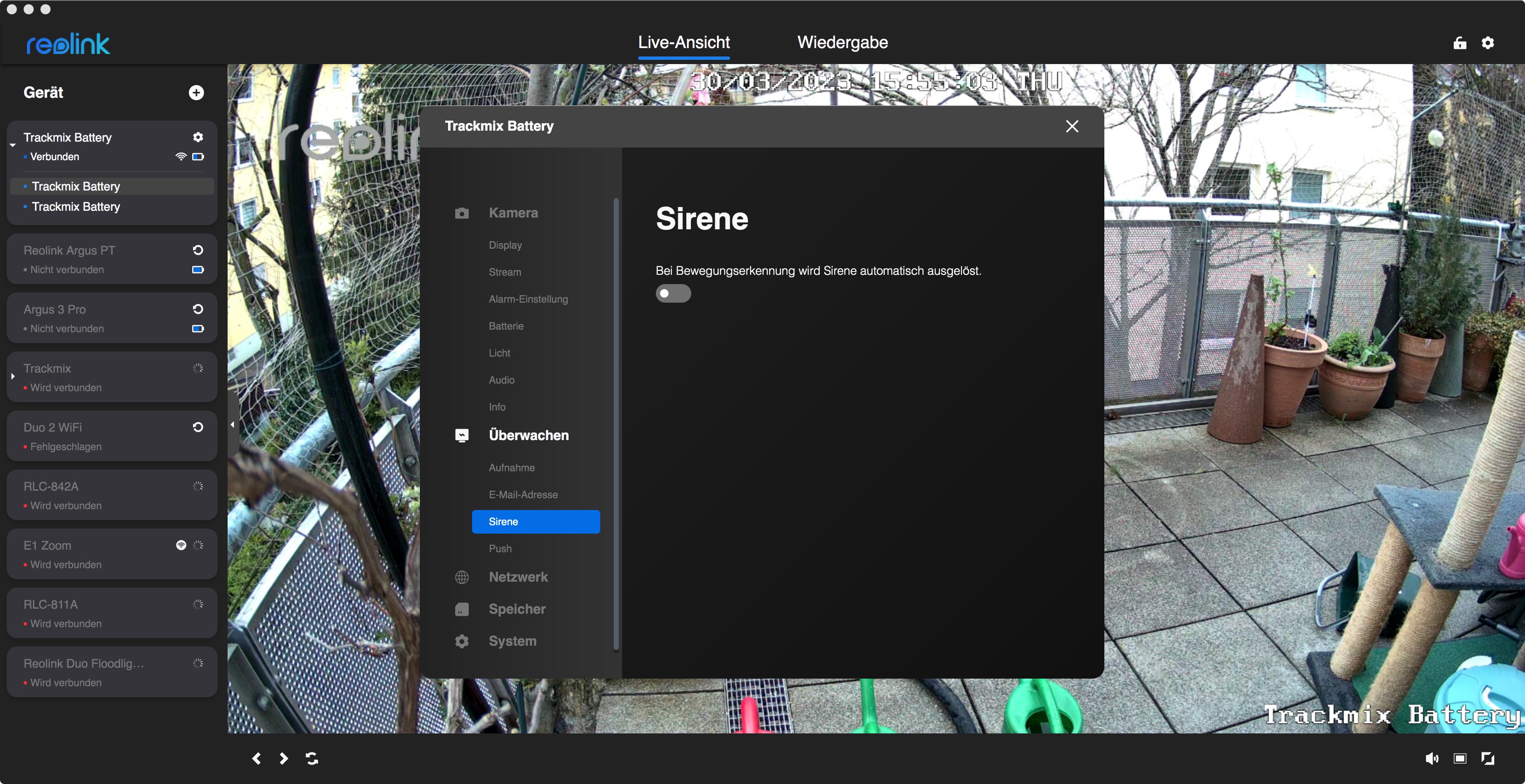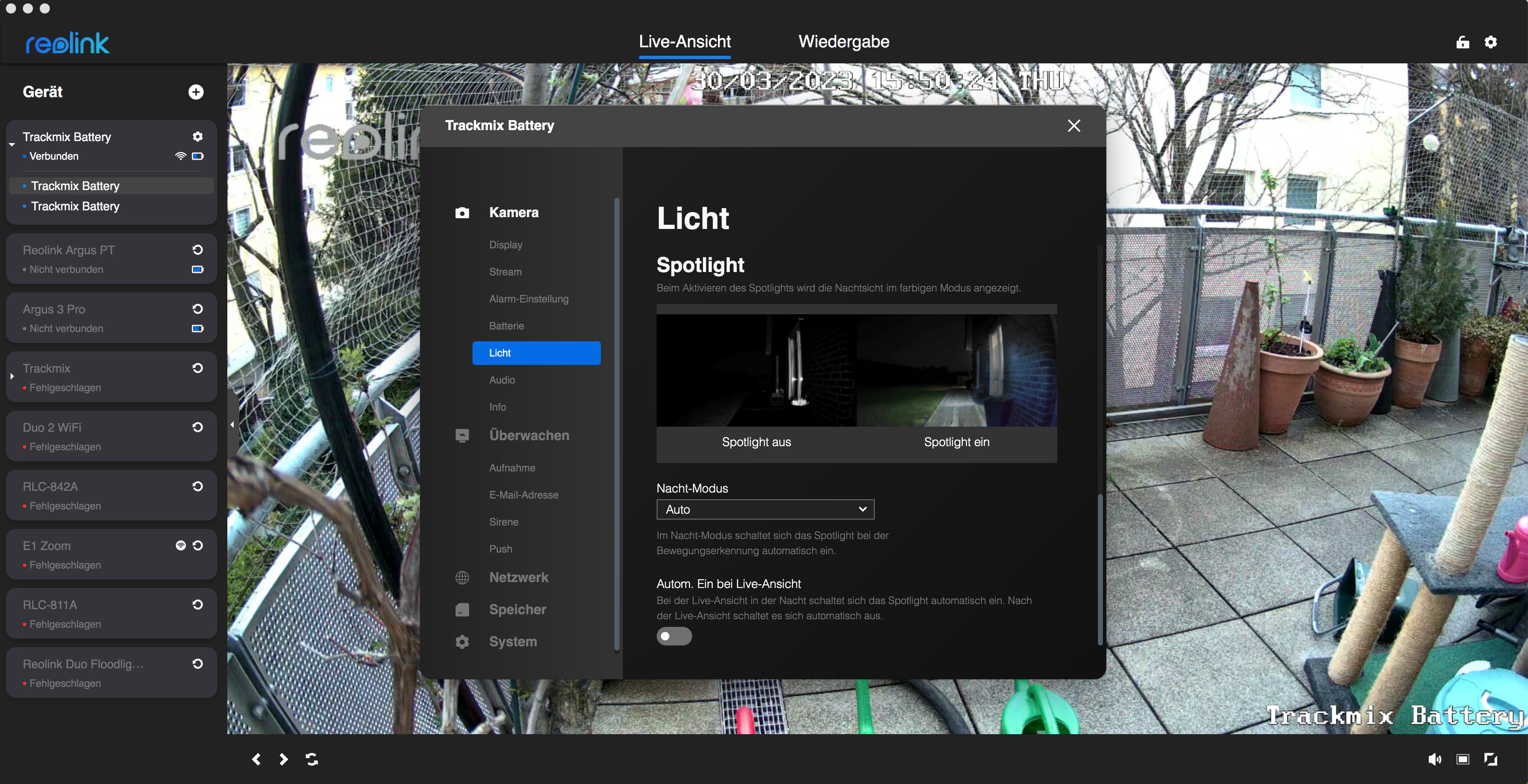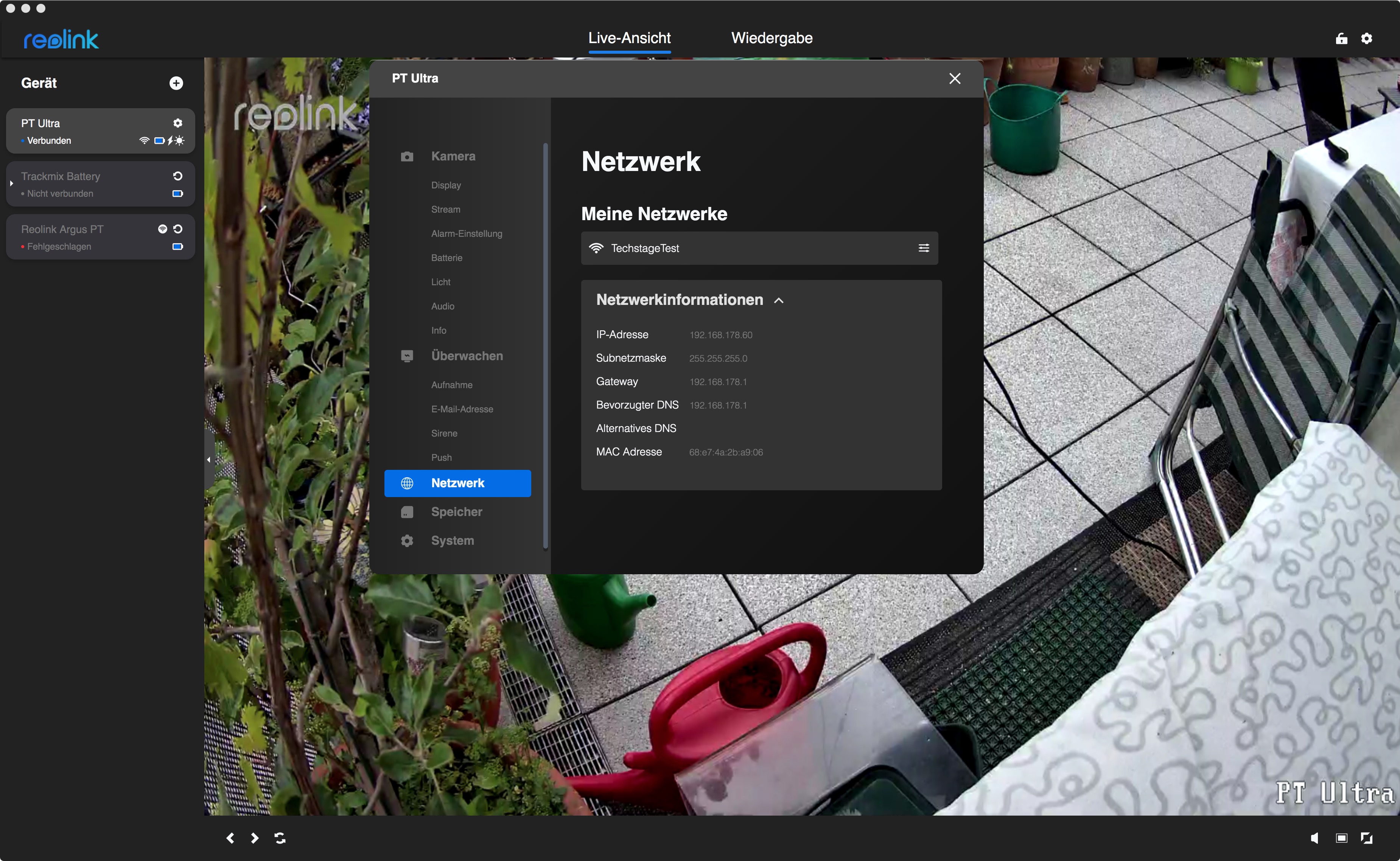 Im Test mit dem Telekom-Mobilfunknetz arbeitet die Reolink zuverlässig. Verbindungsabbrüche gibt es keine. Auch steht der Livestream schnell parat und die Benachrichtigungen über Alarme erreichen uns unverzüglich – entweder per E-Mail oder Push.