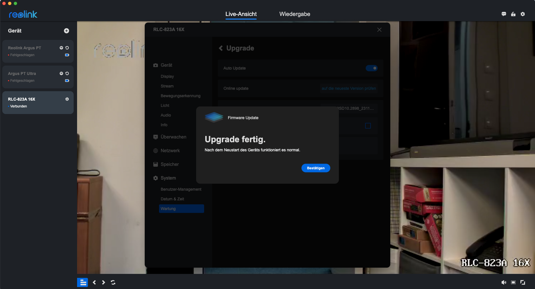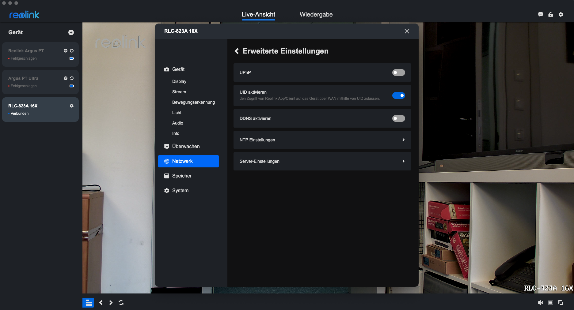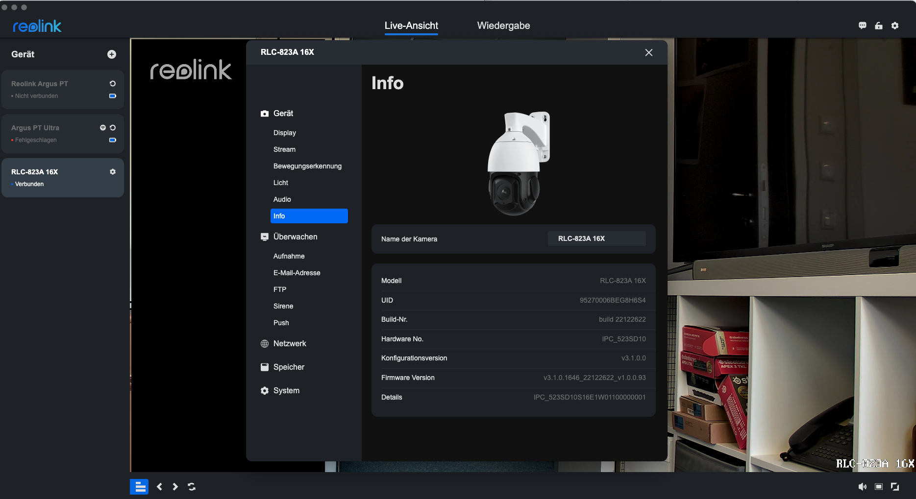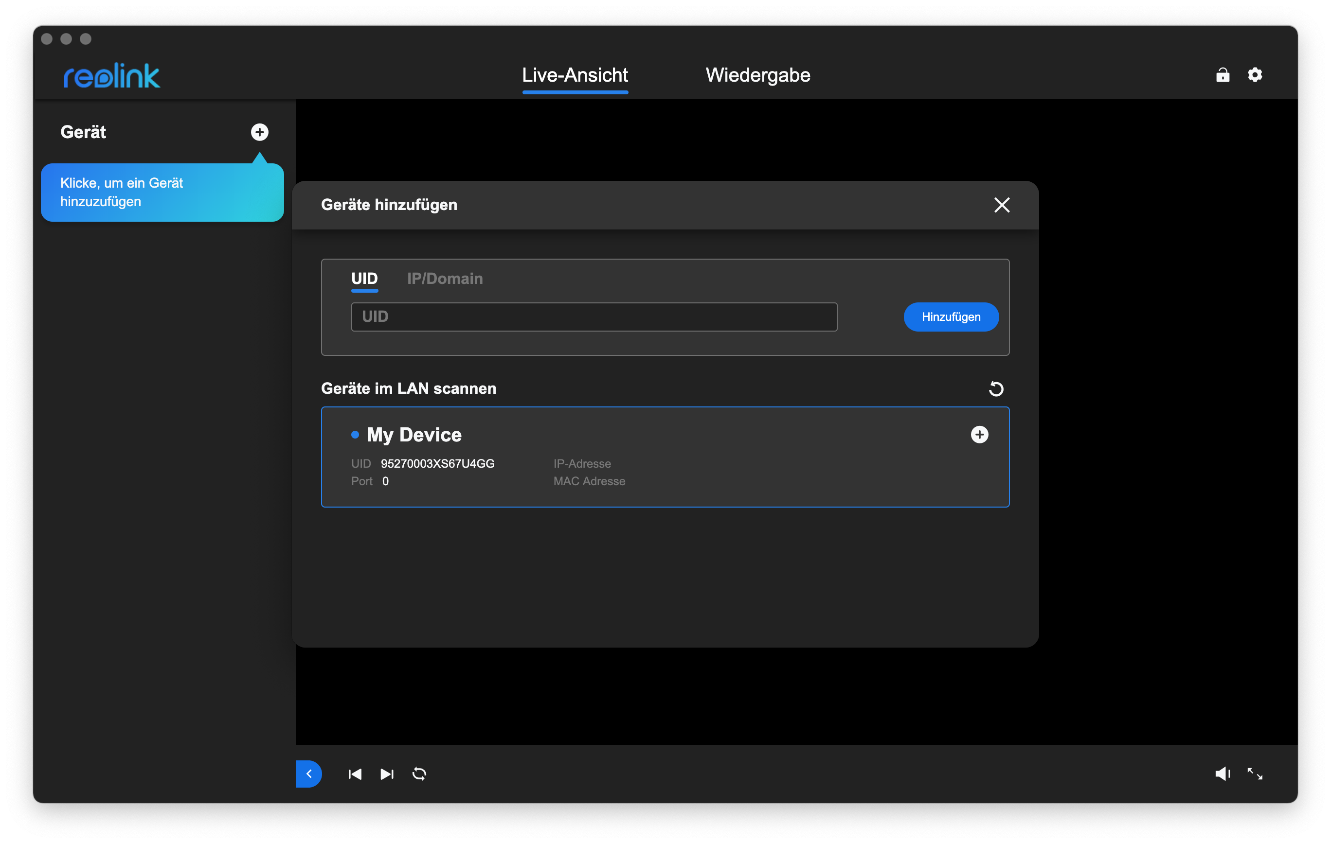 Zusätzlich zur mobilen App können Anwender die Kamera mit der für macOS und Windows vorliegenden Reolink-Desktop-Anwendung steuern. Hierfür muss man lediglich die UID der Kamera (abrufbar in der App unter Geräteinfos) sowie das Gerätepasswort eingeben. Sollten dabei Probleme auftreten, hilft das ausgezeichnete und deutschsprachige Handbuch.