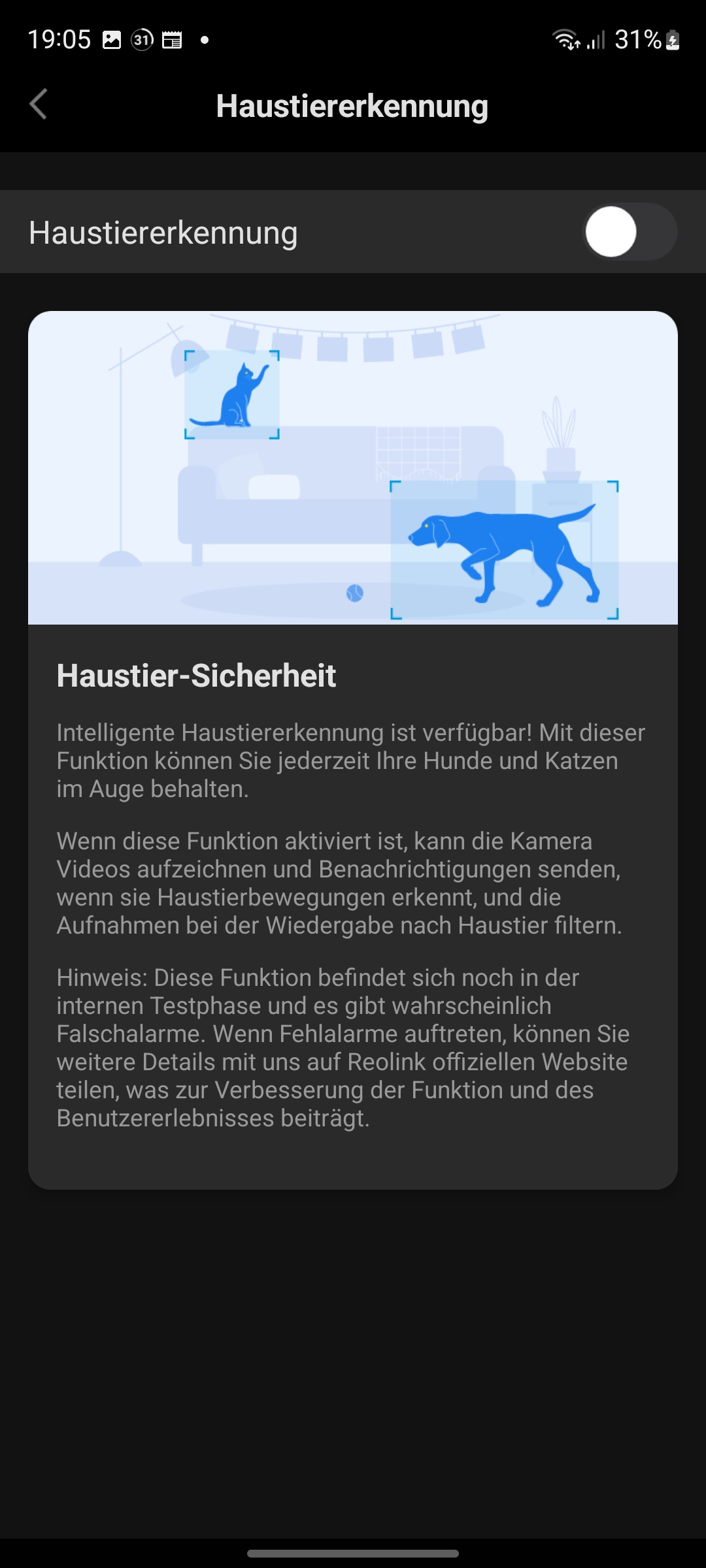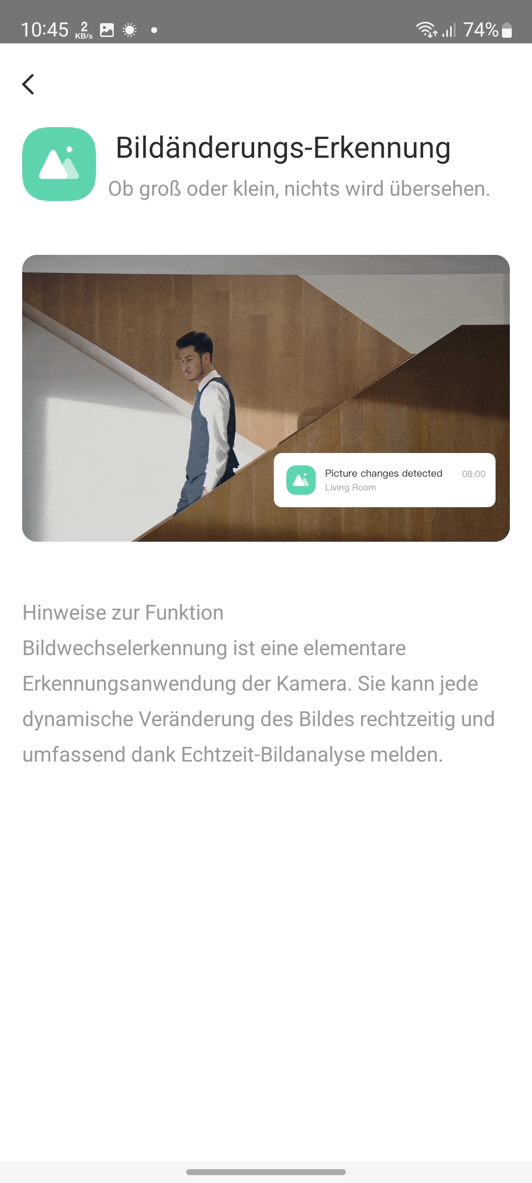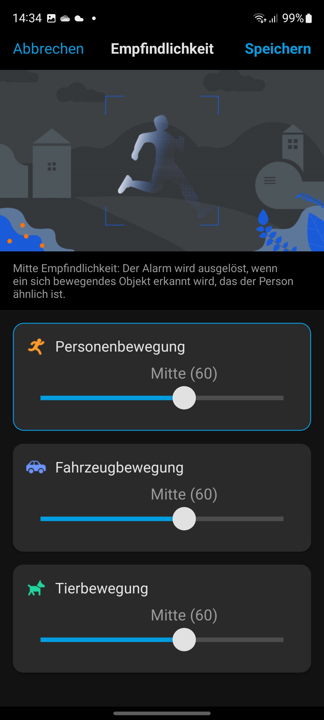 Um Fehlalarme zu vermeiden, können Anwender die Erkennungsart der Bewegungserkennung auf Menschen und/oder Fahrzeuge begrenzen. Im Test hat das die Kamera einwandfrei hinbekommen und bei Menschen alarmiert, bei Haustieren zum Beispiel aber nicht. Apropos Haustiere: Mit der optionalen Anbindung an die Homebase 3 kann die Solocam S340 auch Haustiere und Gesichter identifizieren.