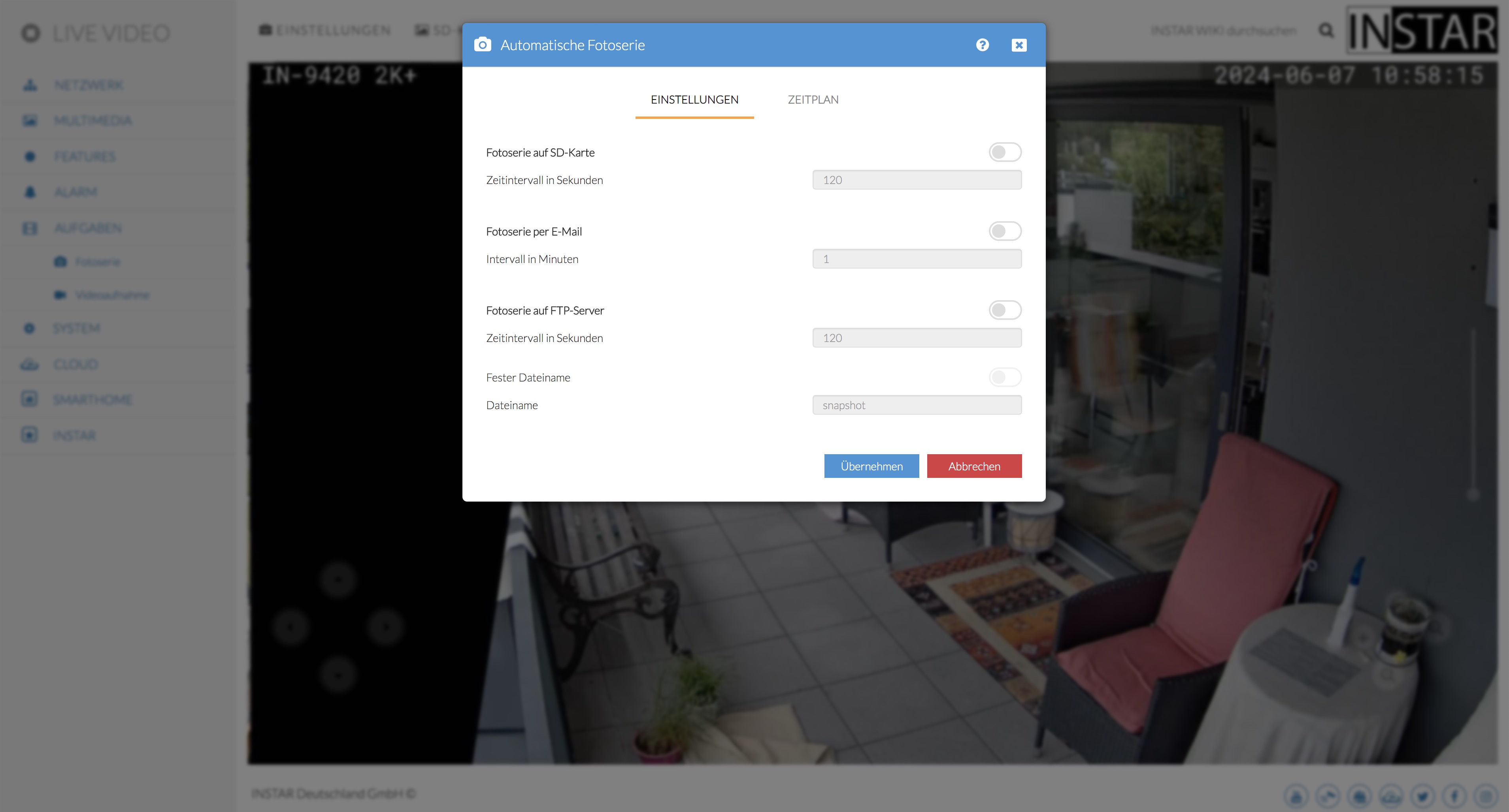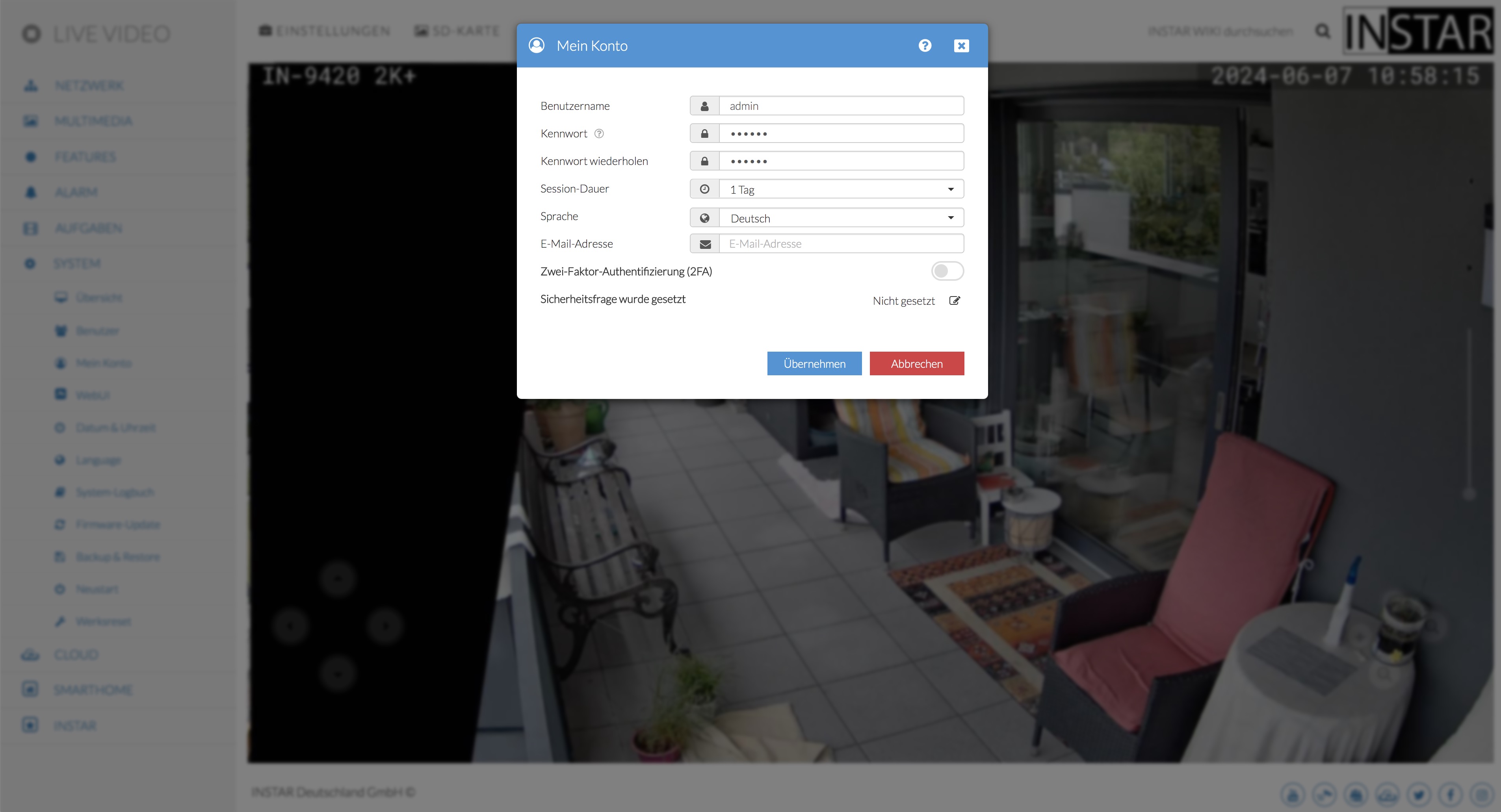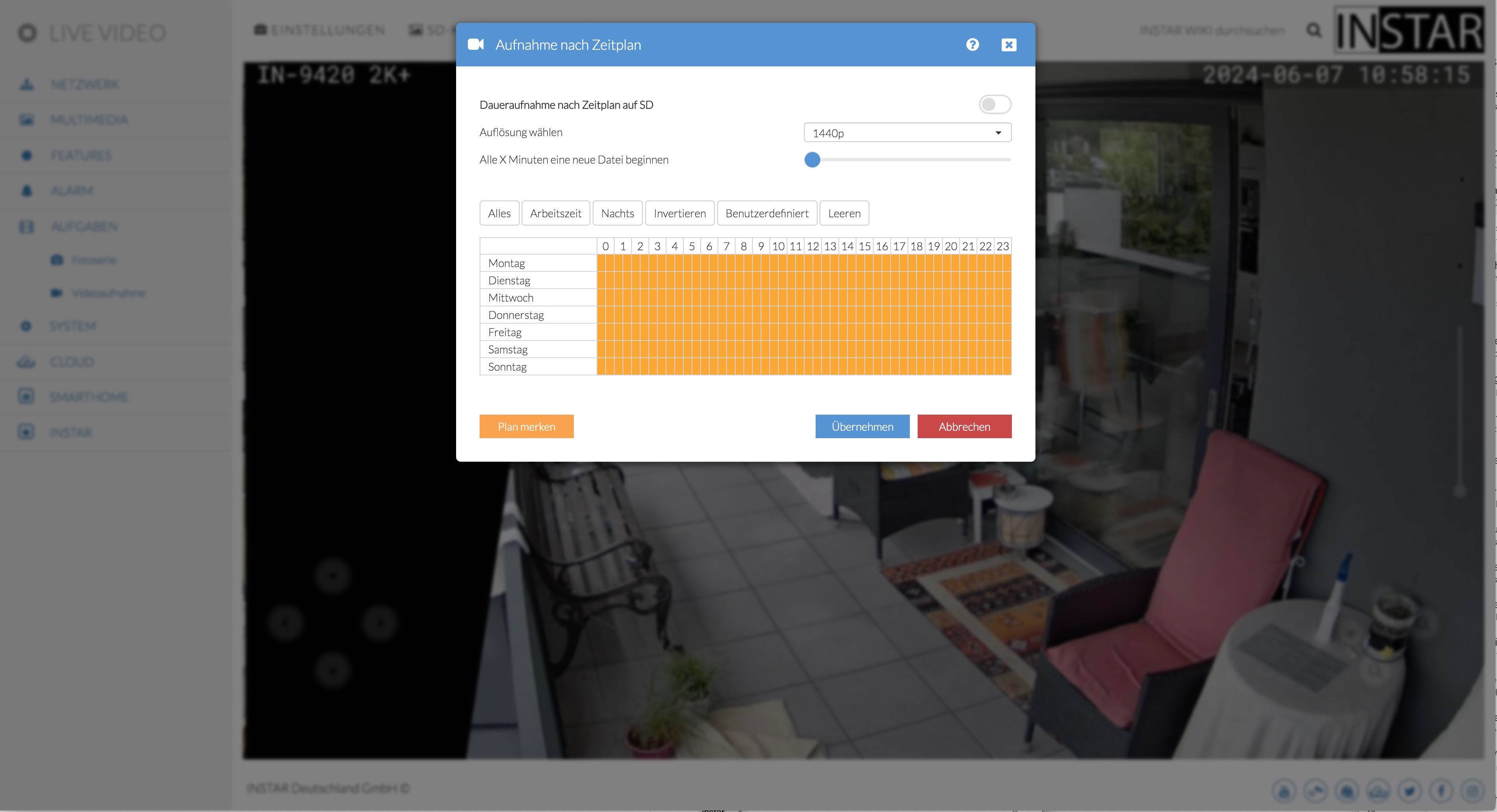 Diesen kann man um ein kostenpflichtiges Abo erweitern, sodass man ab einer Jahresgebühr von 30 Euro auch einen 10 GByte großen Online-Speicher erhält. Doch der ist grundsätzlich nicht nötig, da die IN-9420 2K+ über einen microSD-Card-Slot verfügt, der bereits mit einer 32 GByte großen Speicherkarte standardmäßig ausgestattet ist.