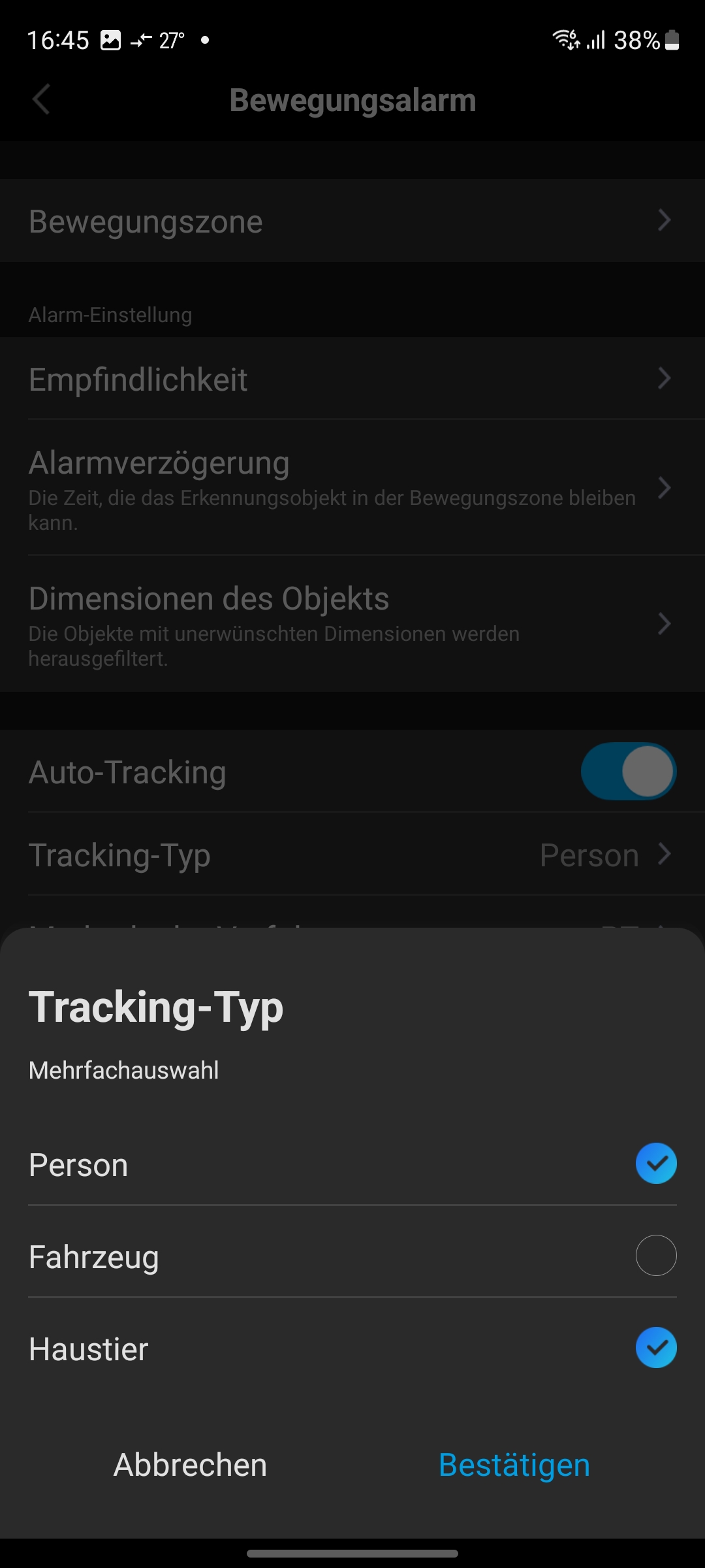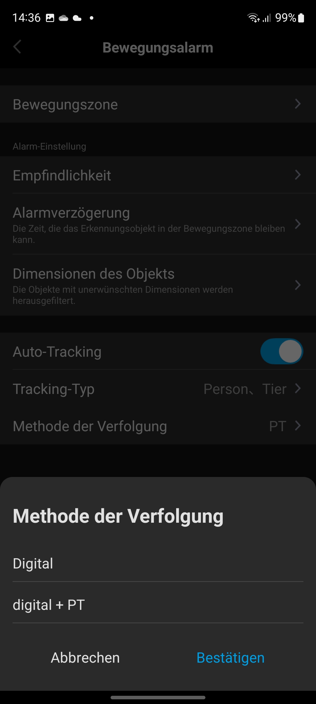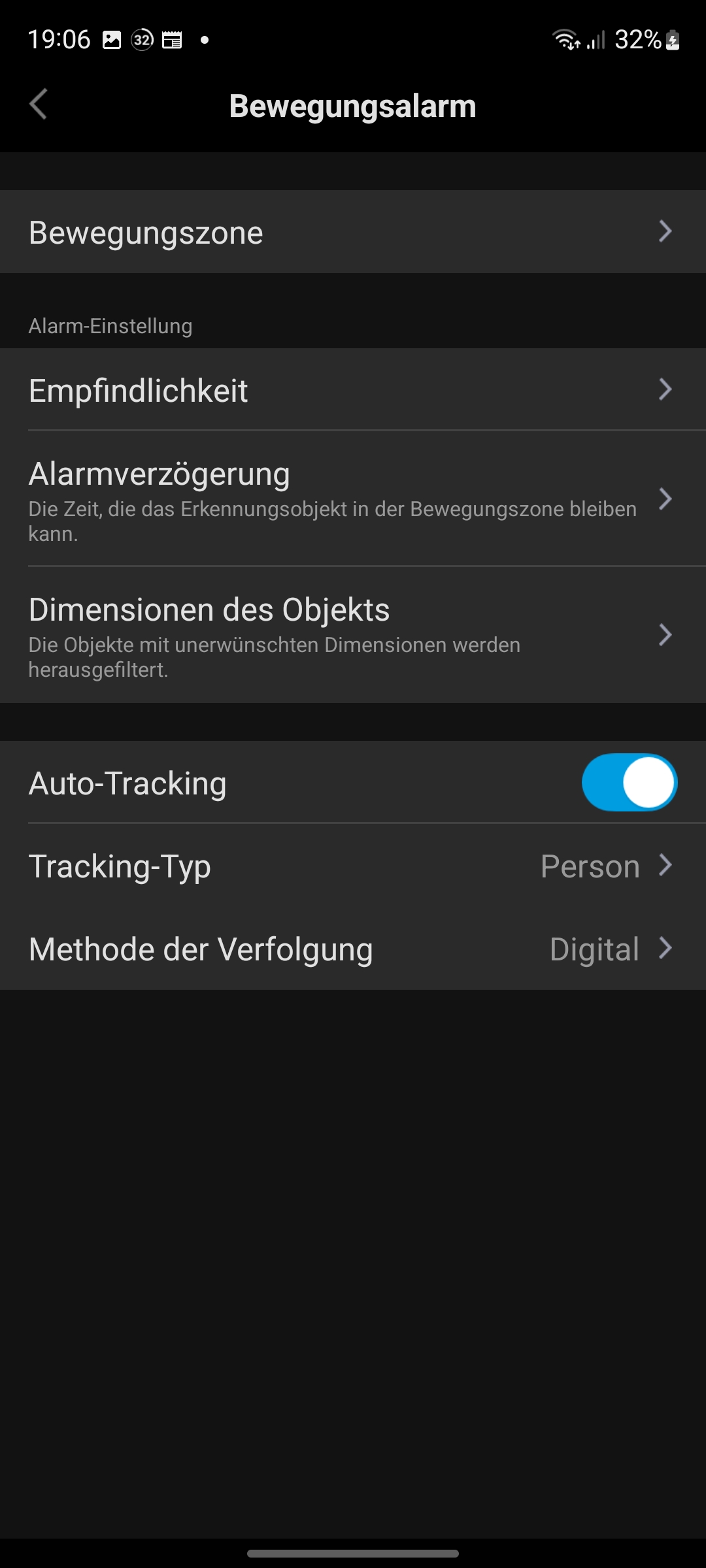 Die Bewegungsverfolgung kann per Schalter neben der Option Auto-Tracking ein- und ausgeschaltet werden. Anschließend legt man fest, welche Objekte automatisch verfolgt werden sollen. Hierfür können Anwender Personen, Fahrzeuge und Haustiere auswählen oder eingrenzen. Außerdem können sie festlegen, wie die Bewegungsverfolgung erfolgen soll. Zur Auswahl stehen Digital, Digital Tracking First und Pan/Tilt Tracking First. Bei der Wahl dieser Optionen muss man aufpassen: Mit der Option Digital erfolgt eine auf Basis der aktuellen Ansicht digitale Verfolgung eines im Sichtfeld erkannten Objekts. Das schont zwar die Mechanik der Schwenk- und Neigetechnik, aber die Bewegungsverfolgung stoppt dann, wenn sich das zu verfolgende Objekt aus dem Sichtbereich bewegt. Bei den beiden anderen Optionen kommen hingegen beide Techniken zum Einsatz, wobei eine davon zunächst priorisiert wird.