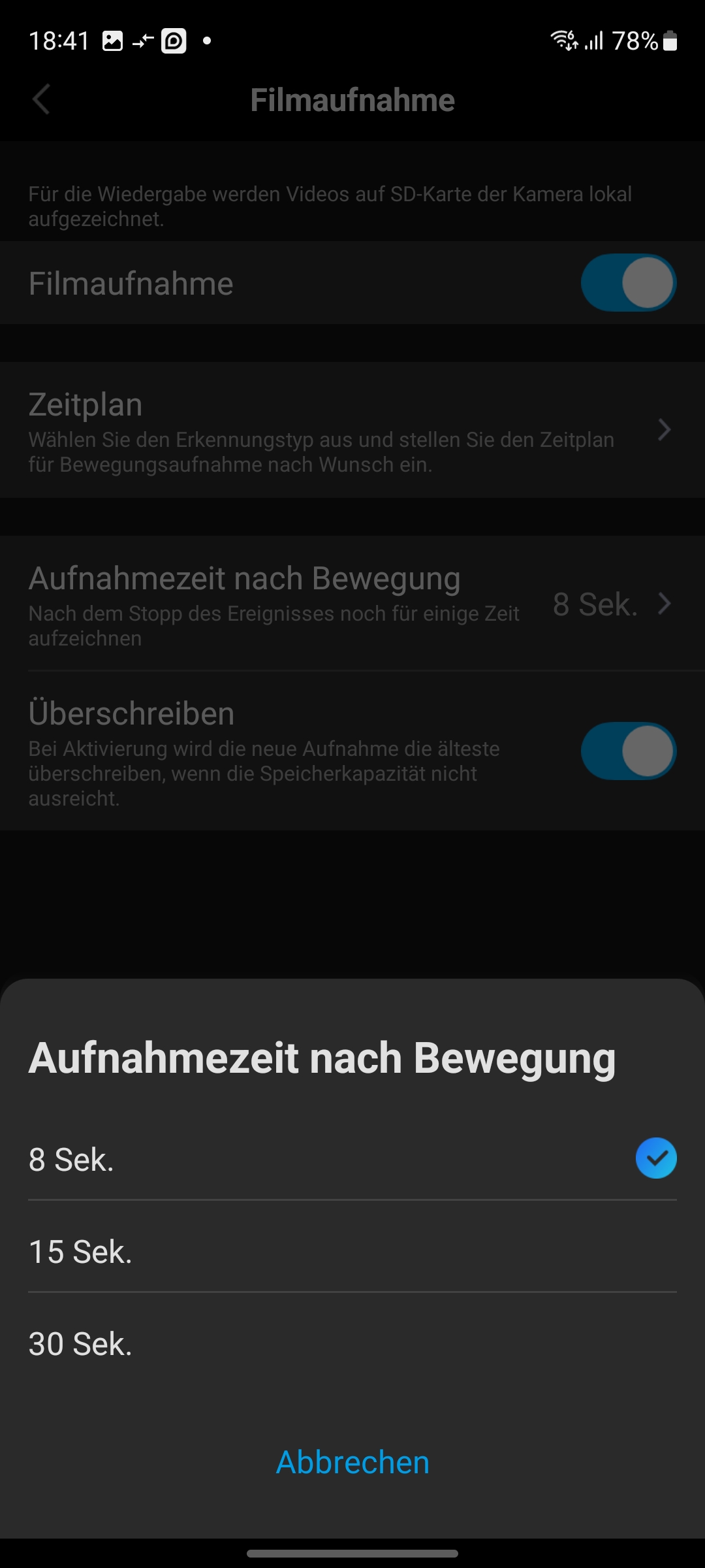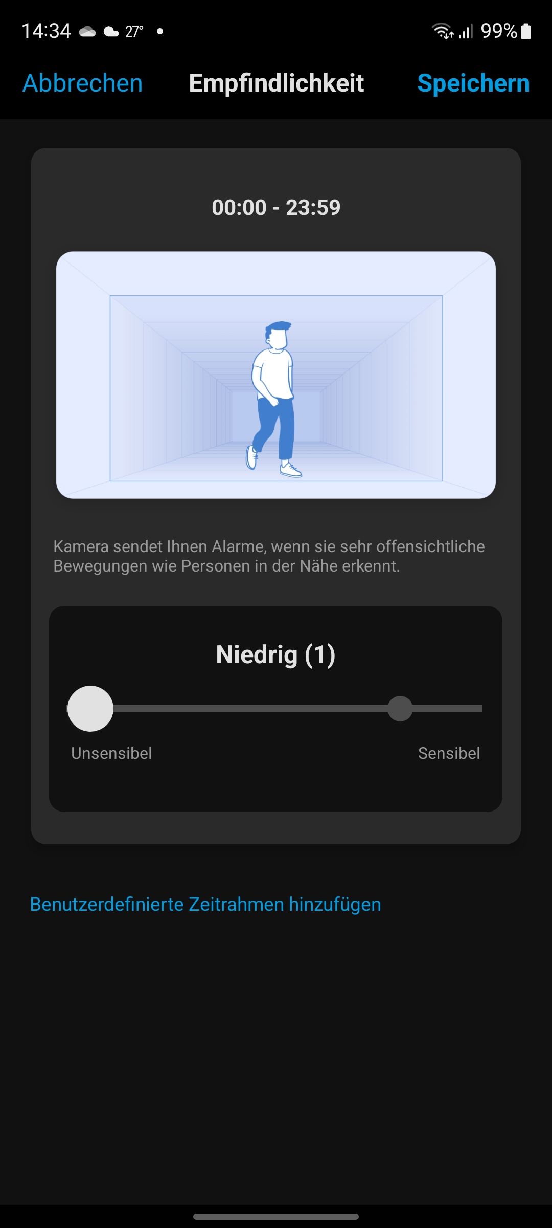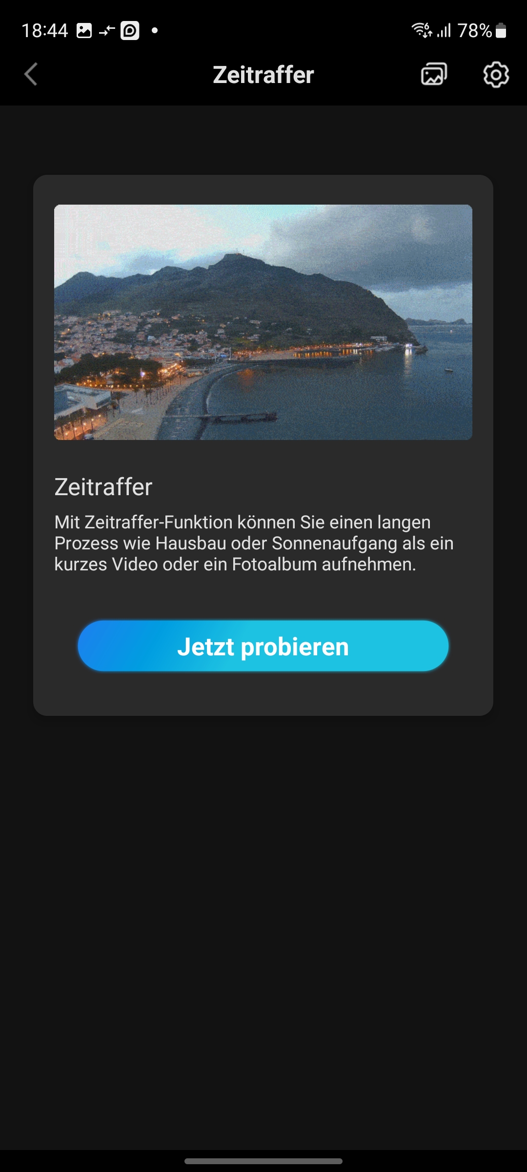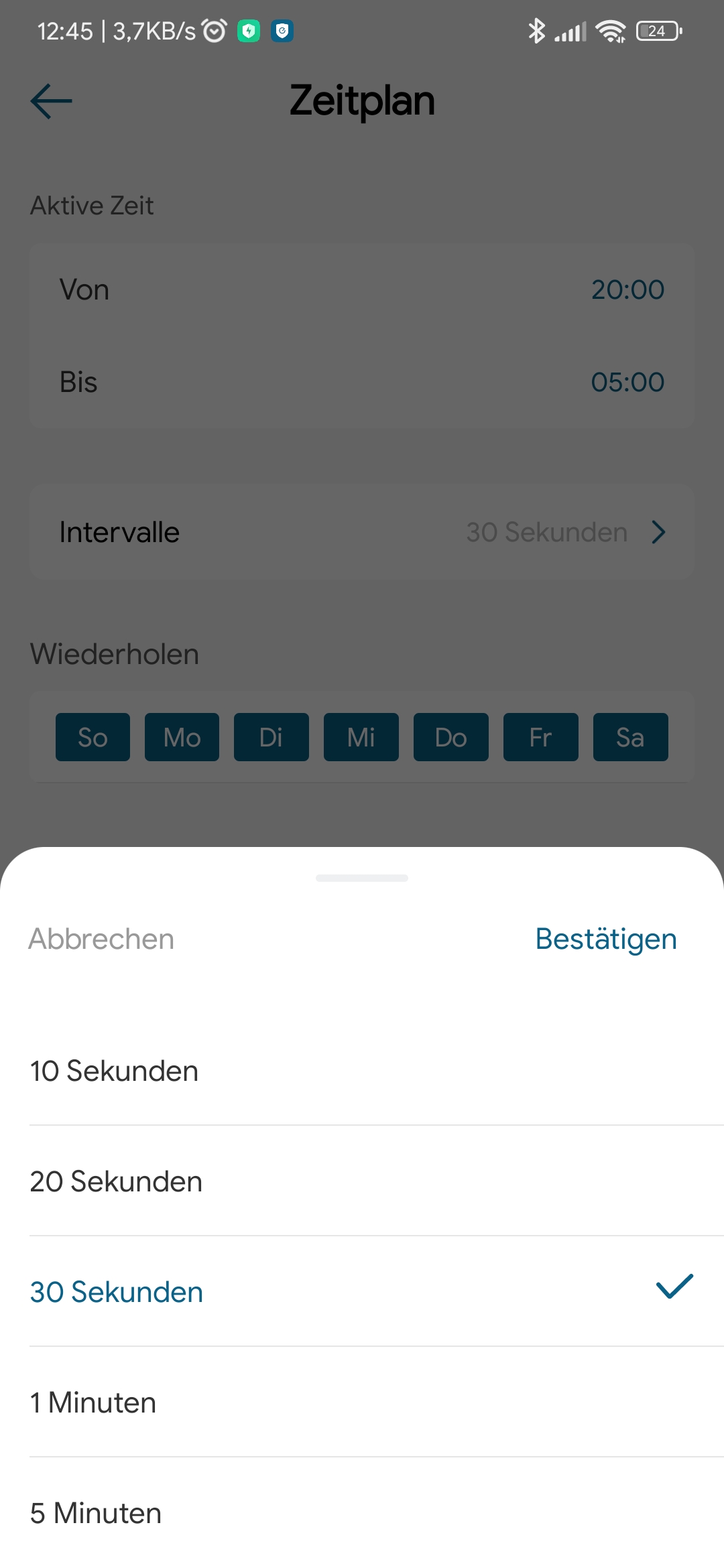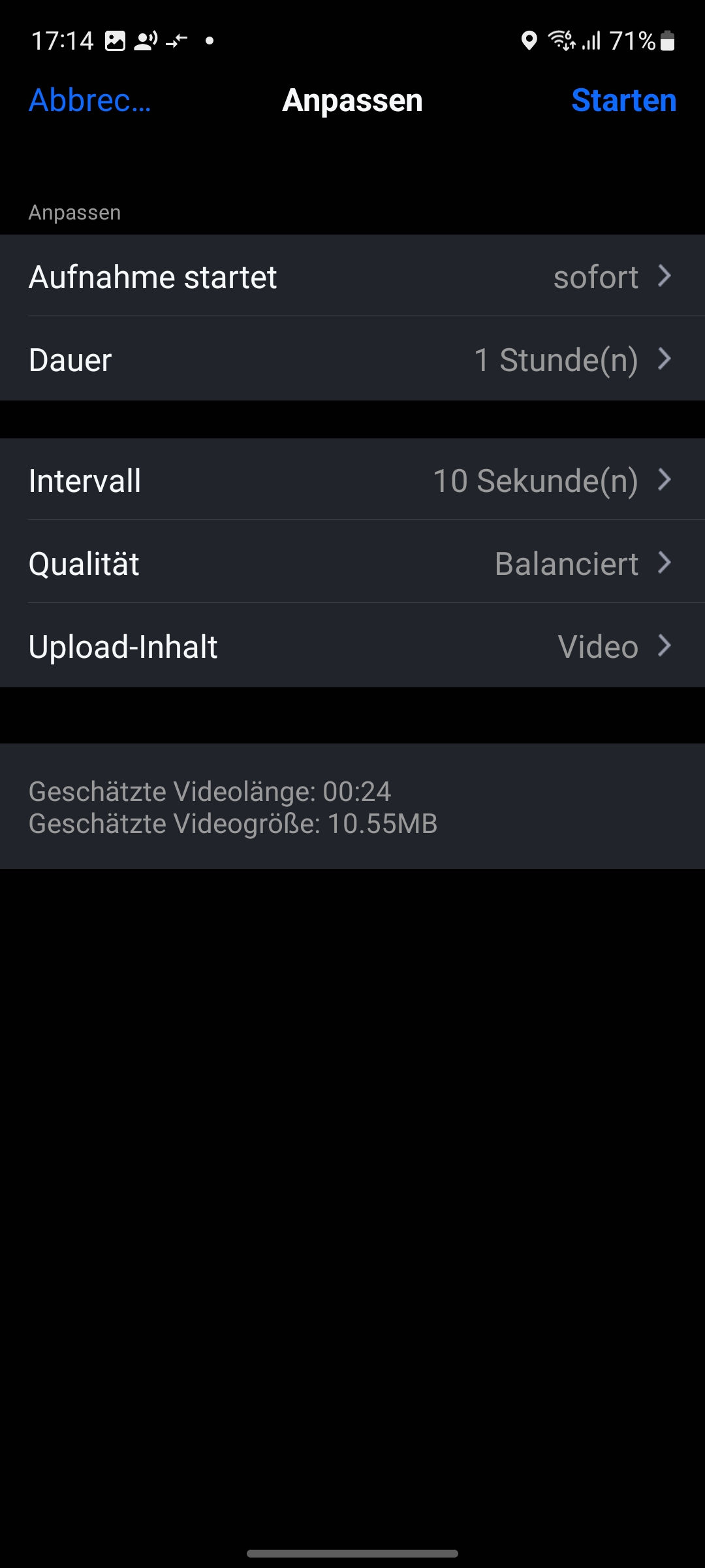 Die Kamera zeichnet Videos nicht nur bei Bewegung auf. Alternativ können Anwender auch eine Zeitraffer-Aufnahme konfigurieren, um so etwa den Fortschritt beim Hausbau oder anderer Ereignisse zu dokumentieren. Für die Konfiguration empfiehlt die App je nach Verwendung unterschiedlich lange Intervalle.