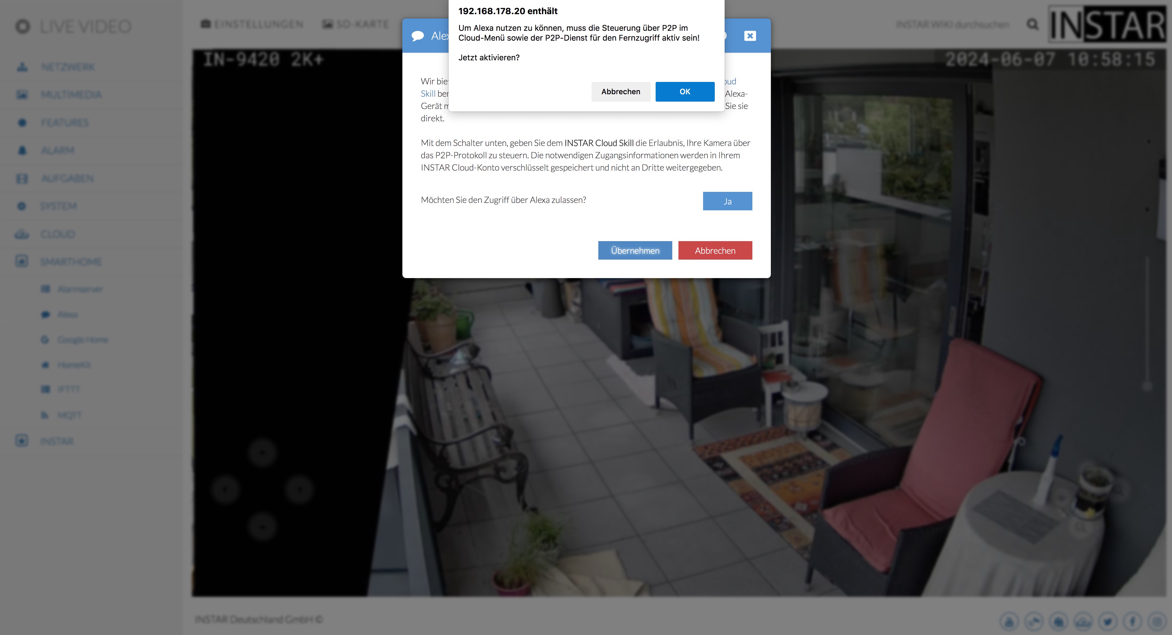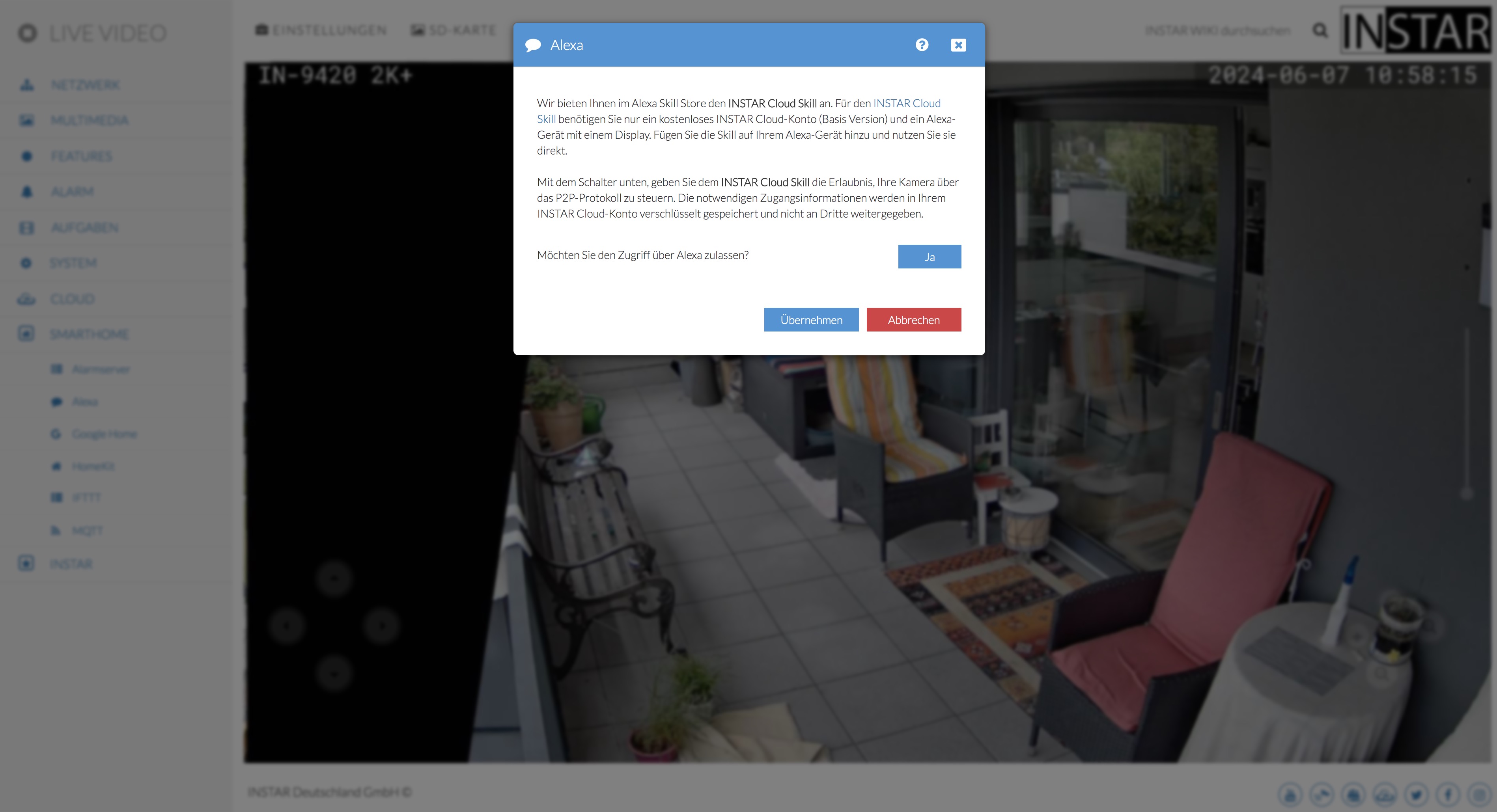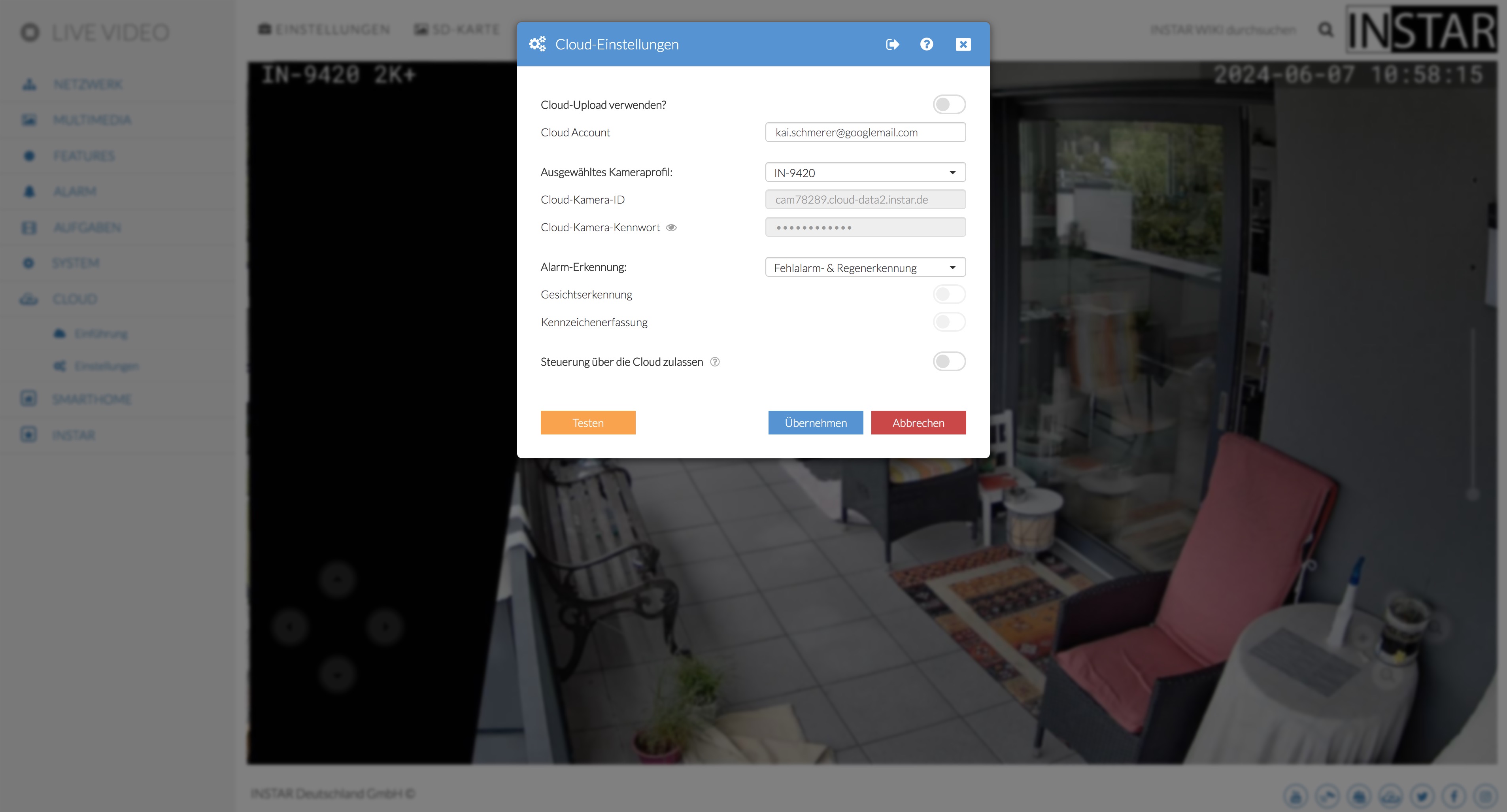 Anwender, denen Datenschutz und Privatsphäre wichtig sind, dürfen sich bei der Inbetriebnahme der Instar-Kamera darüber freuen, dass sie sich weder für die Nutzung der App, noch für ein Cloud-Konto registrieren müssen. Letzteres ist allerdings nötig, wenn man die Überwachungskamera mit den Diensten Amazon Alexa, Google Assistant oder IFTTT koppeln möchte. Dann muss man sich beim kostenlosen Cloud-Dienst des Herstellers anmelden.