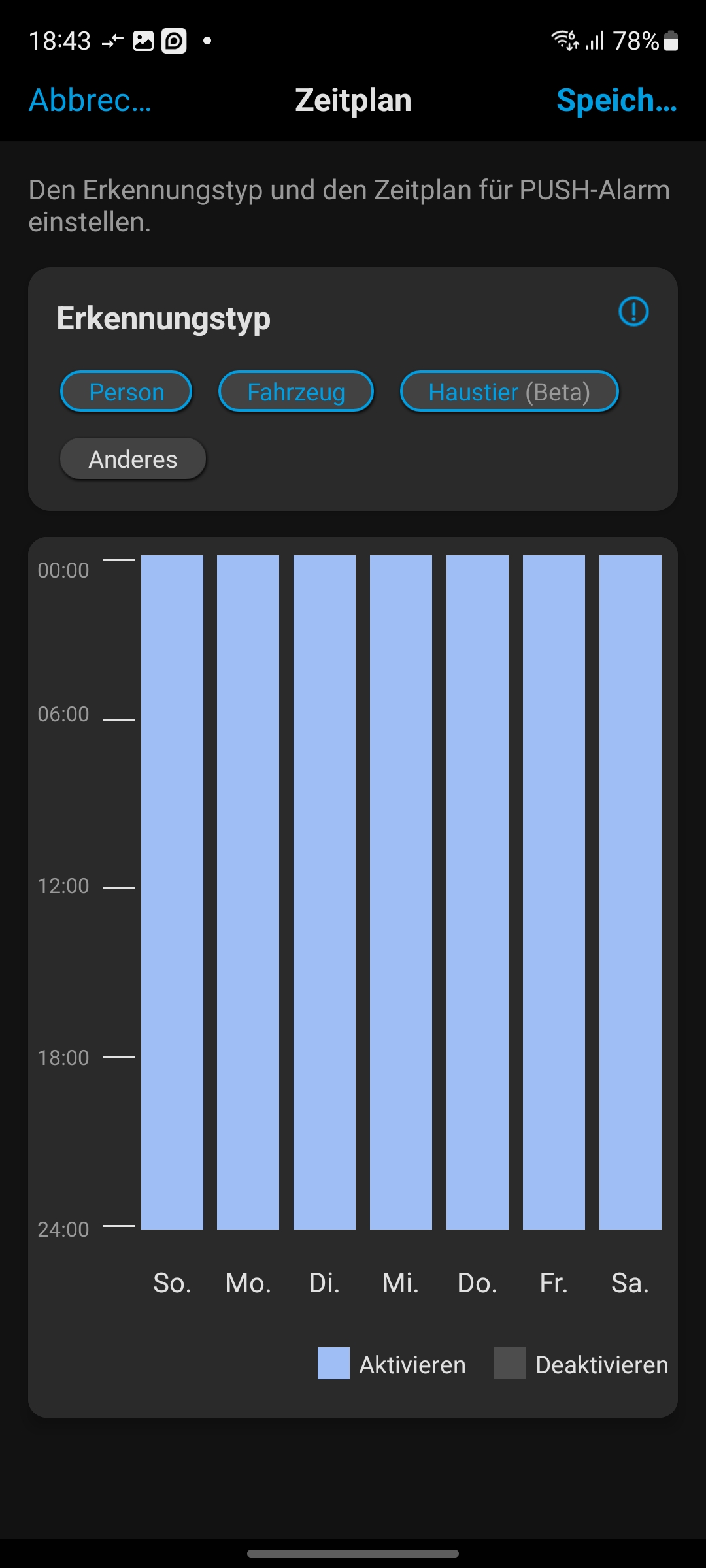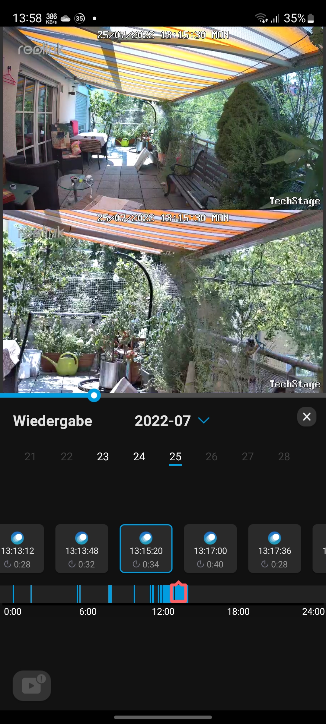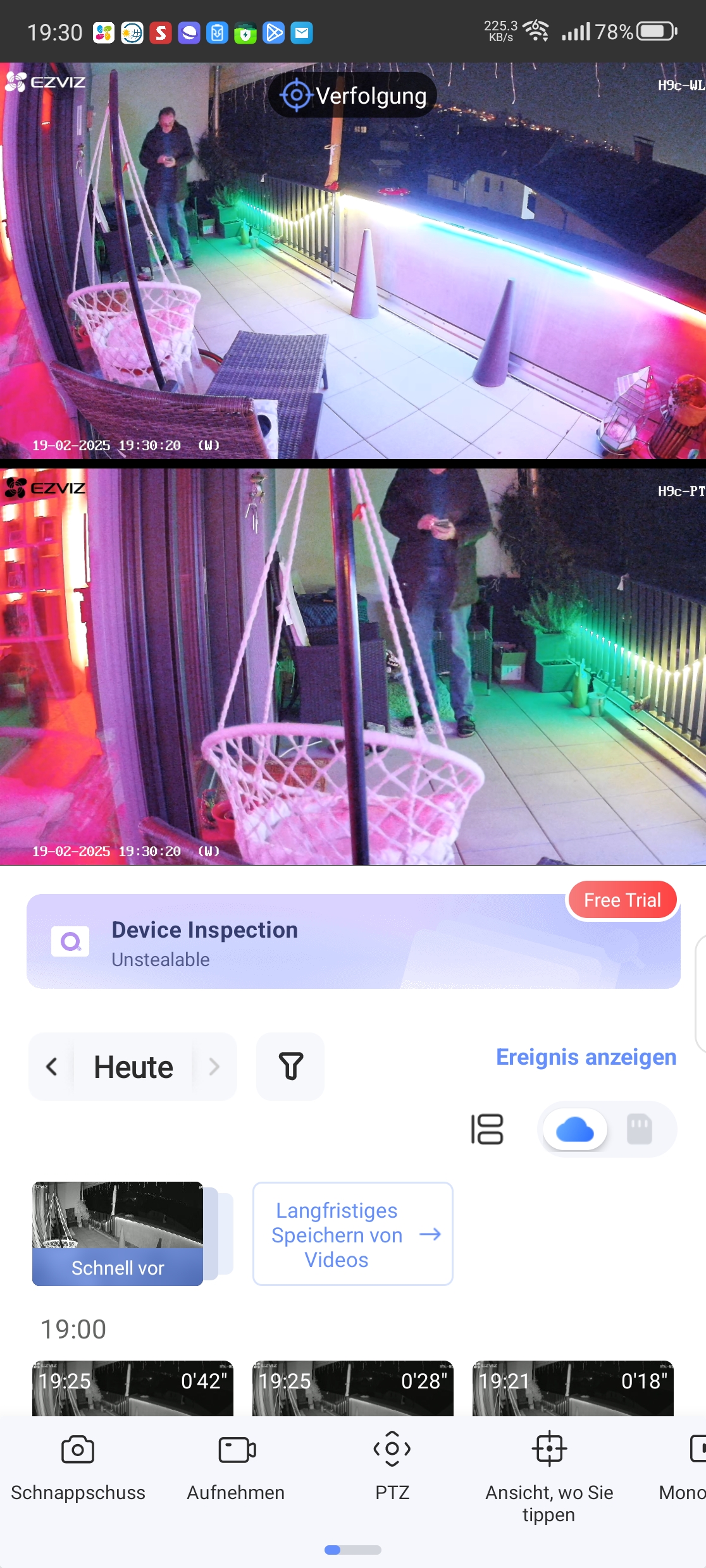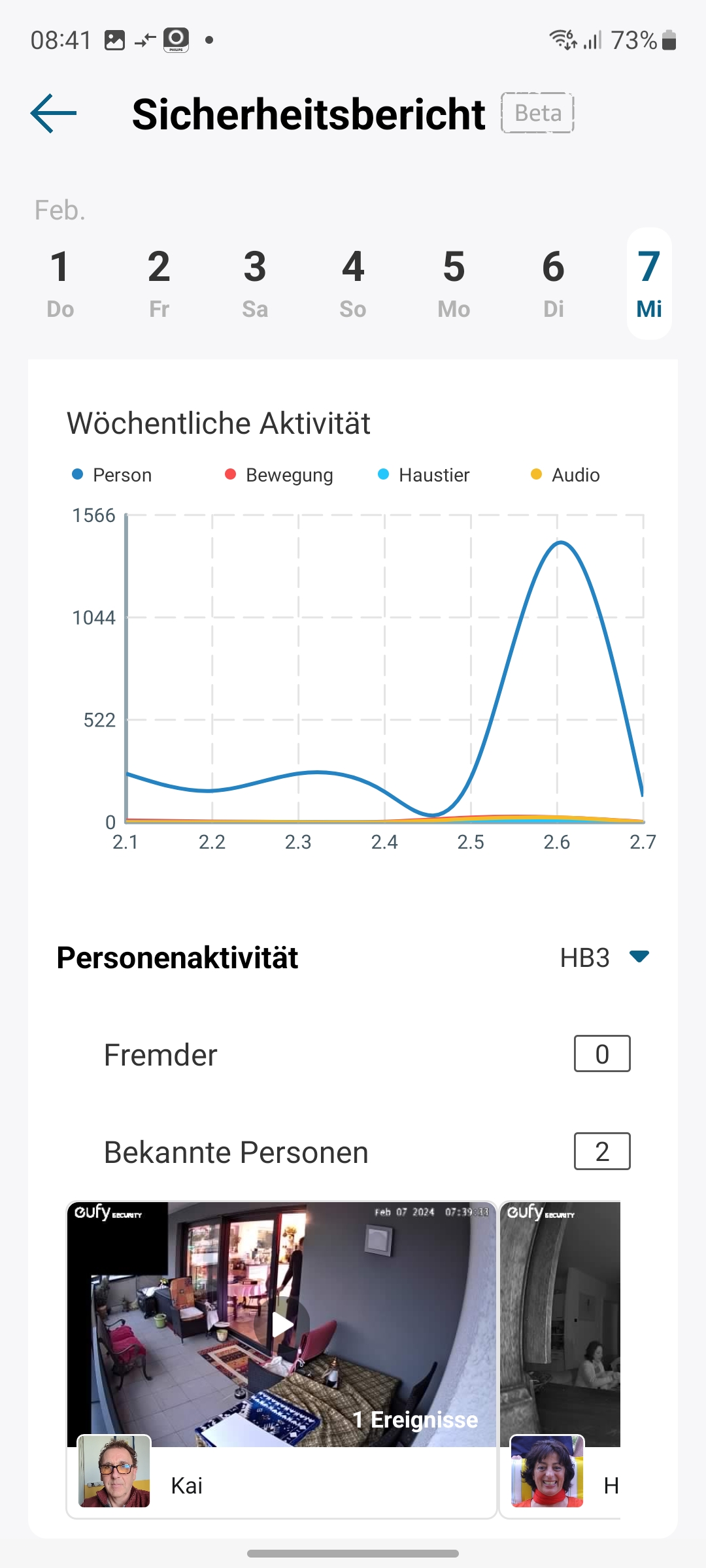 Der Livestream steht in der App oder Browser zügig parat, wenn die Kamera per Ethernet mit dem Router verbunden ist. Über WLAN muss man unter Android einige Sekunden warten, während die iOS-App ihn etwas zügiger anzeigt. Fehlalarme sind dank Personen-, Fahrzeug- und Tiererkennung praktisch ausgeschlossen. Im Test haben wir jedenfalls keine registriert.