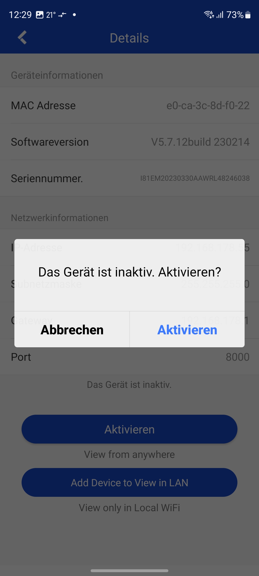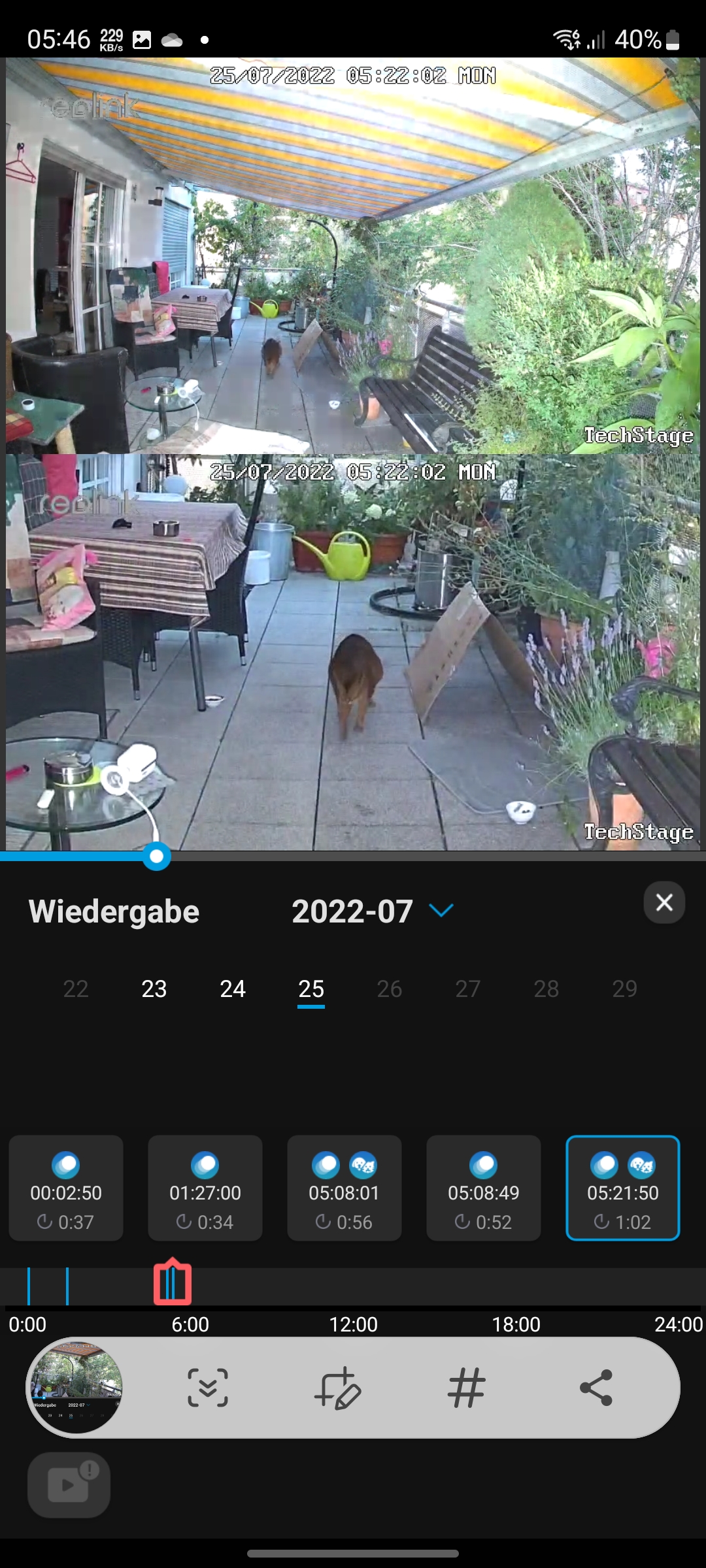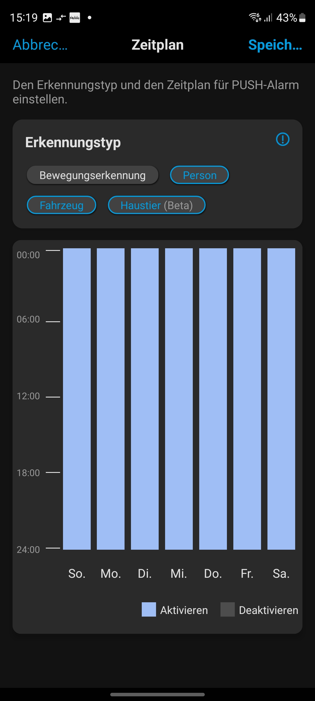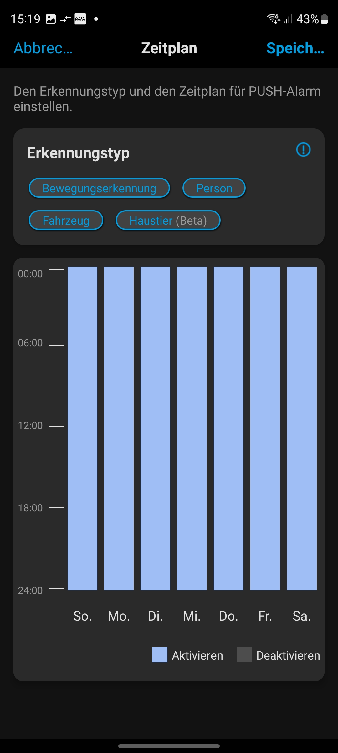 Der Livestream steht in der App oder Browser zügig parat, wenn die Kamera per Ethernet mit dem Router verbunden ist. Über WLAN muss man unter Android einige Sekunden warten, während die iOS-App ihn etwas zügiger anzeigt. Fehlalarme sind dank Personen-, Fahrzeug- und Tiererkennung praktisch ausgeschlossen. Im Test haben wir jedenfalls keine registriert.