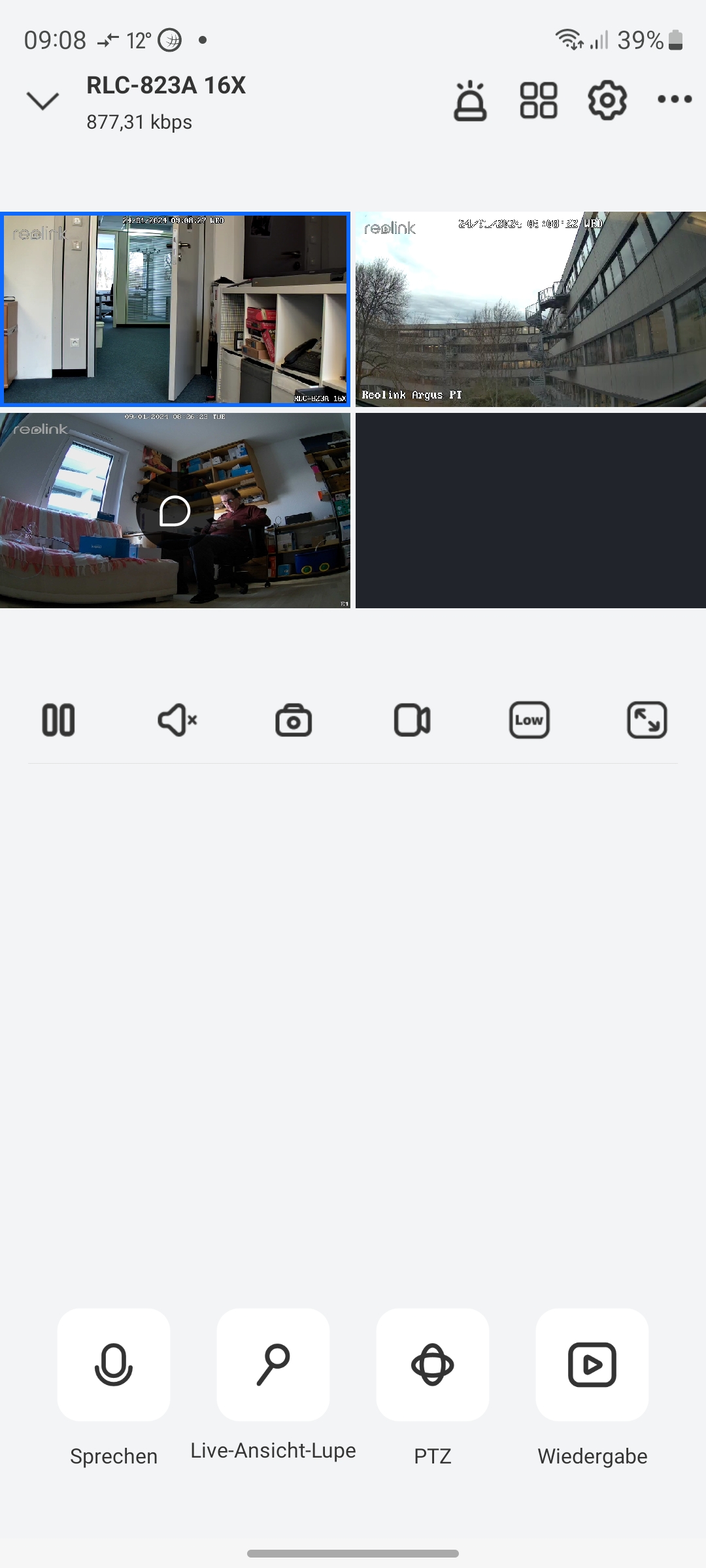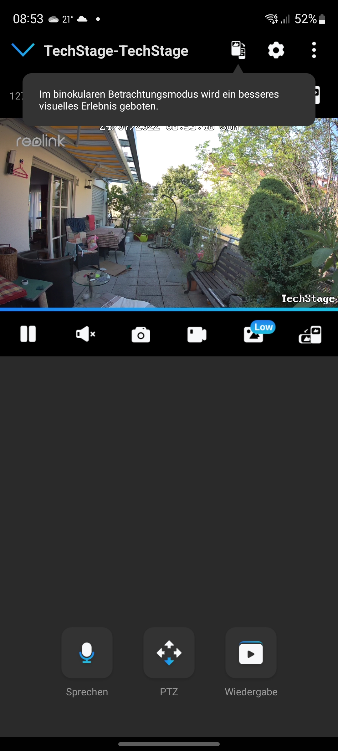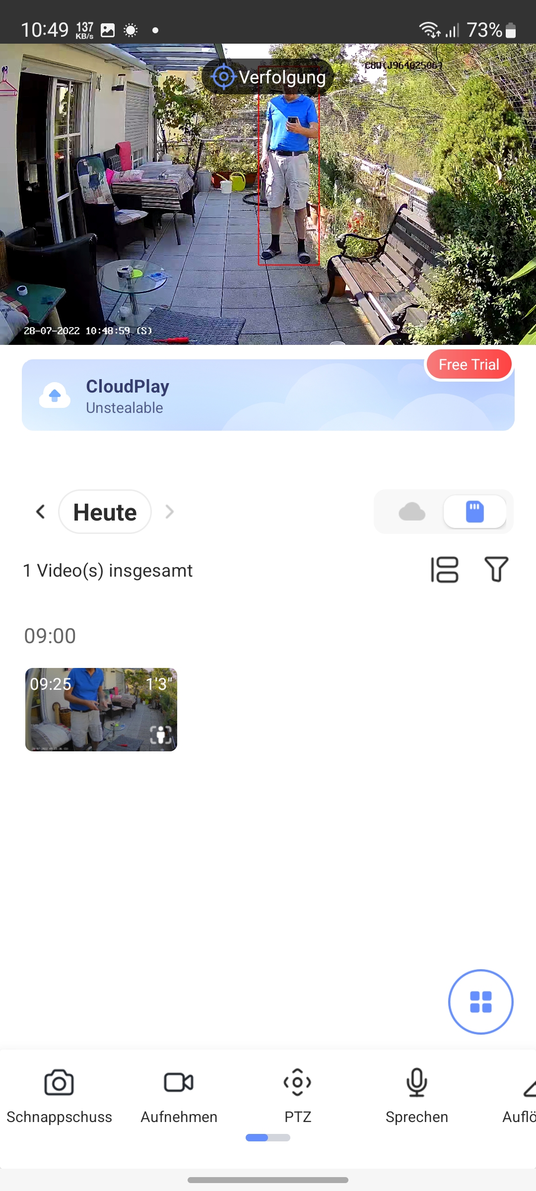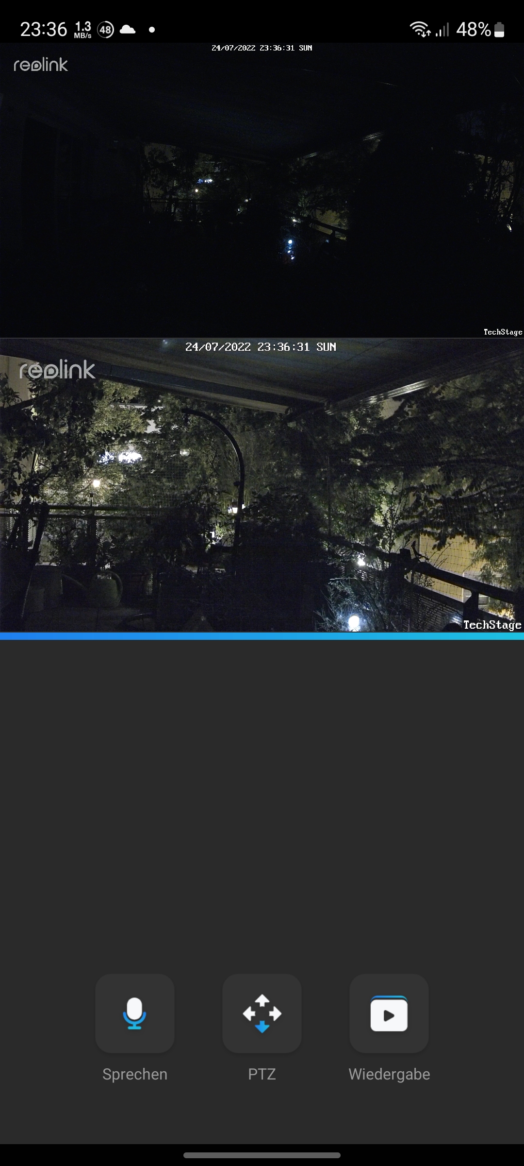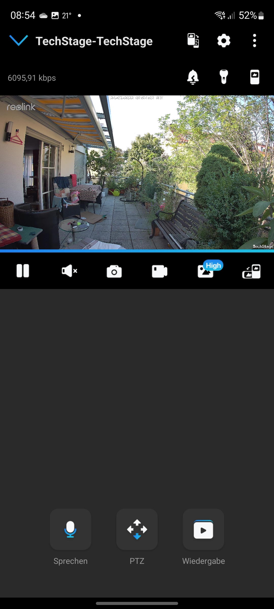 Im Test reagiert die Kamera auf Nutzereingaben nicht immer sofort. Vor allem bei der PTZ-Steuerung muss man etwas Geduld mitbringen. Das Livebild hat die App in den meisten Fällen verzögerungsfrei angezeigt. Sollte es einmal zu Verzögerungen kommen, hilft ein Neustart der App.