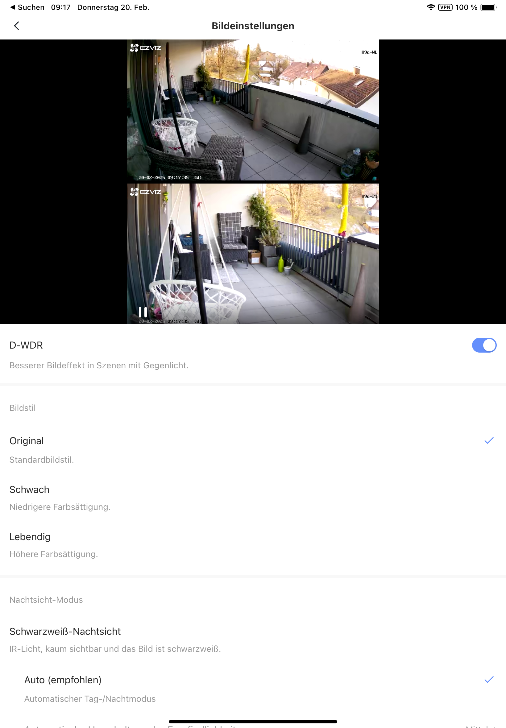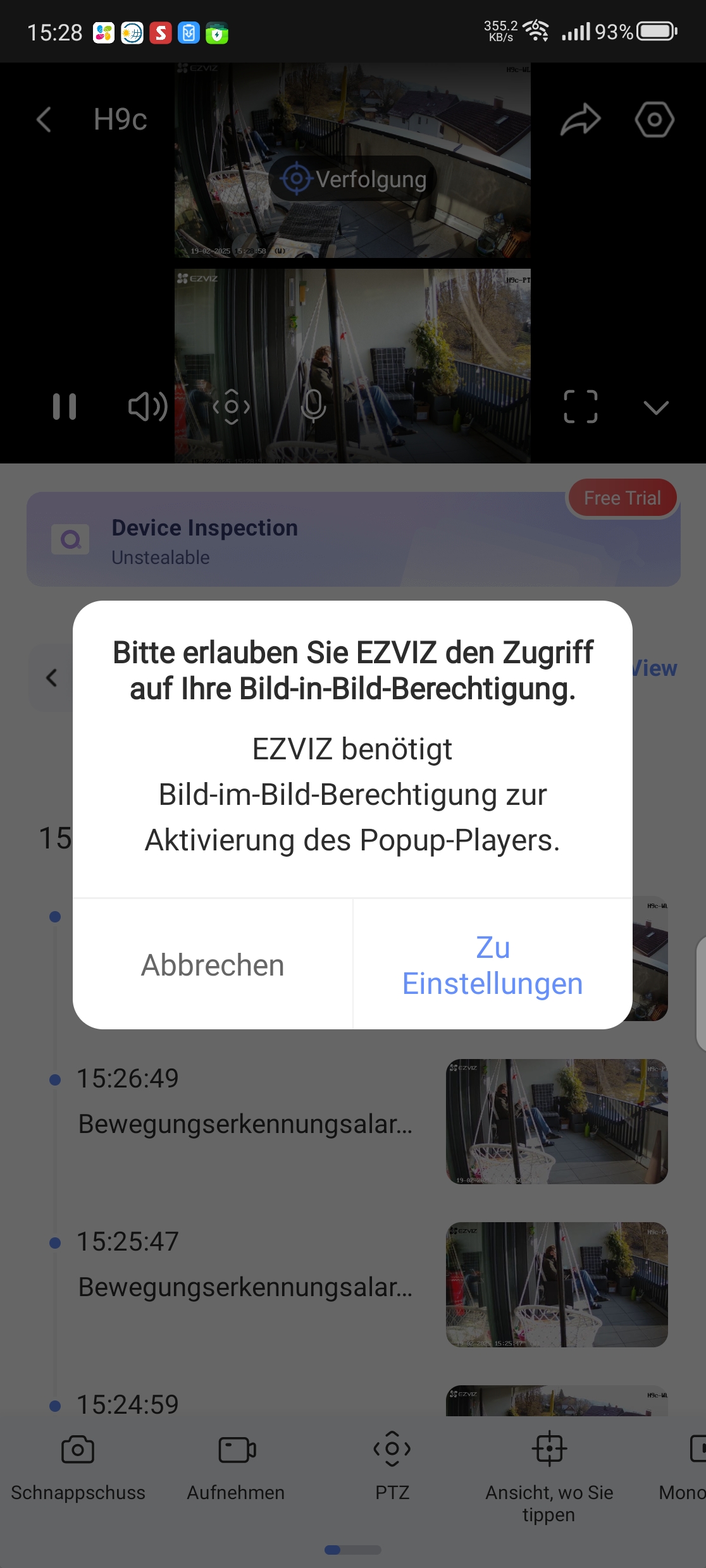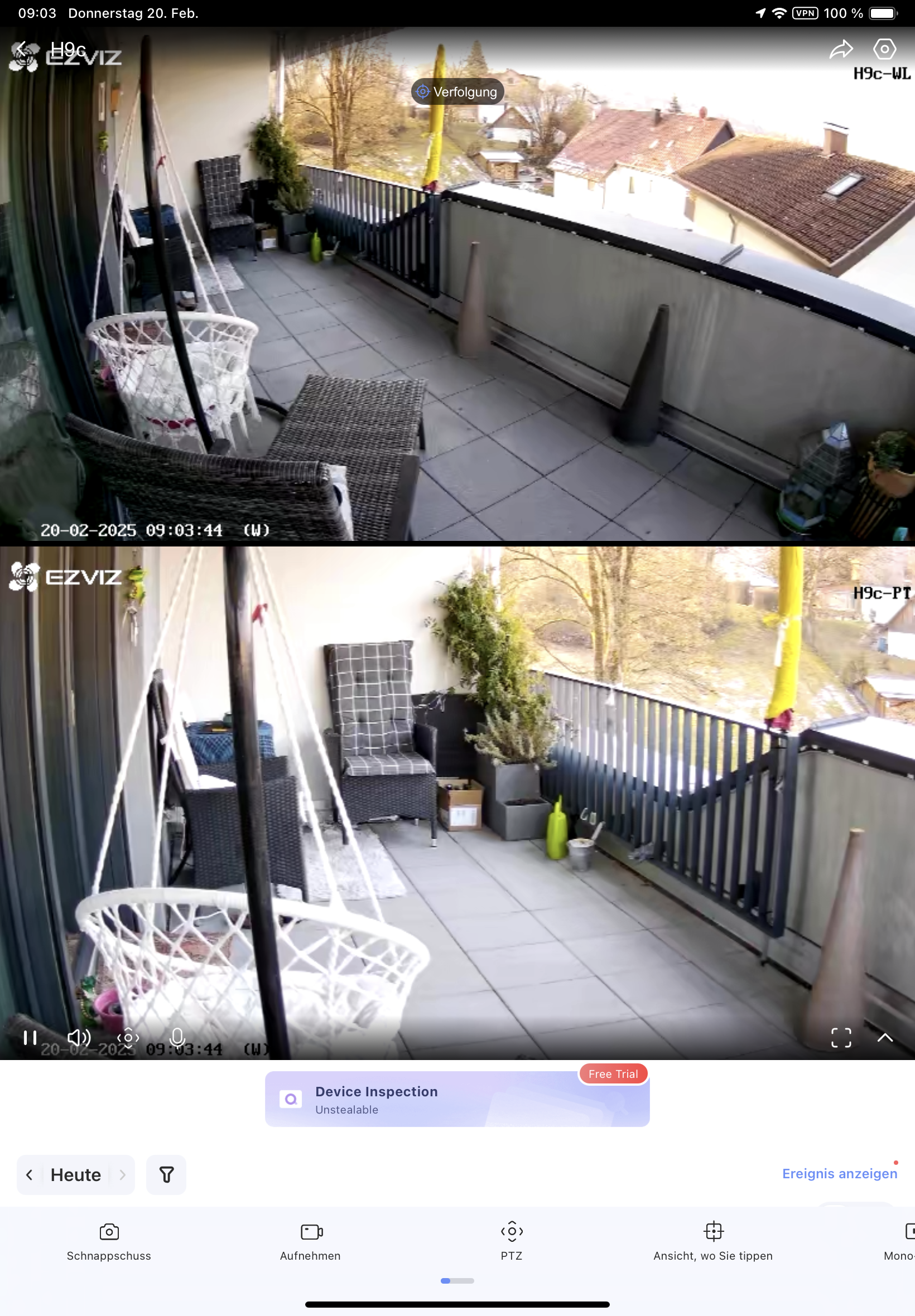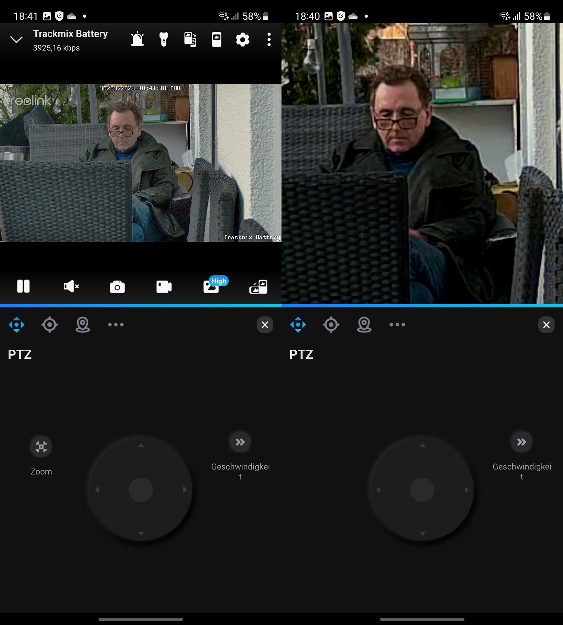 Im Test reagiert die Kamera auf Nutzereingaben nicht immer sofort. Vor allem bei der PTZ-Steuerung muss man etwas Geduld mitbringen. Das Livebild hat die App in den meisten Fällen verzögerungsfrei angezeigt. Sollte es einmal zu Verzögerungen kommen, hilft ein Neustart der App.