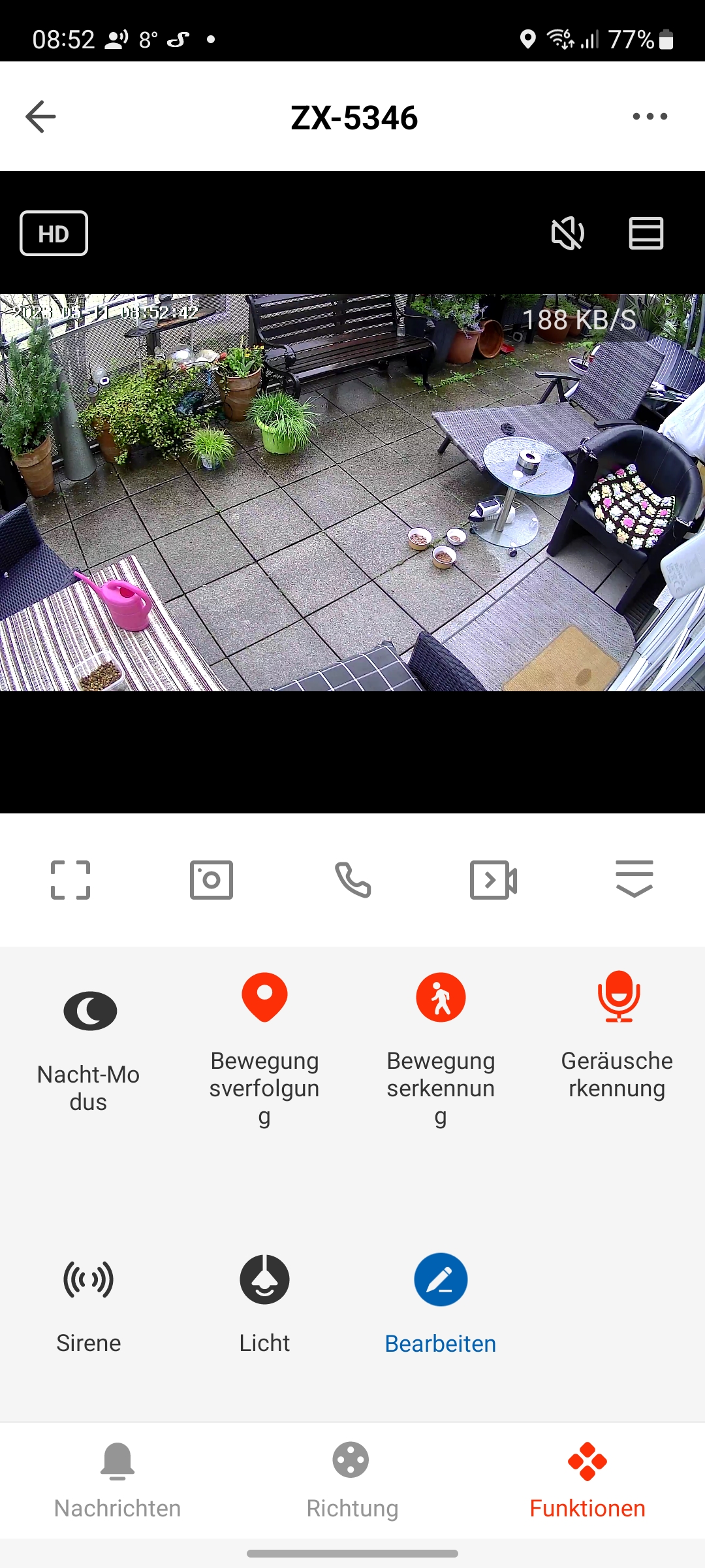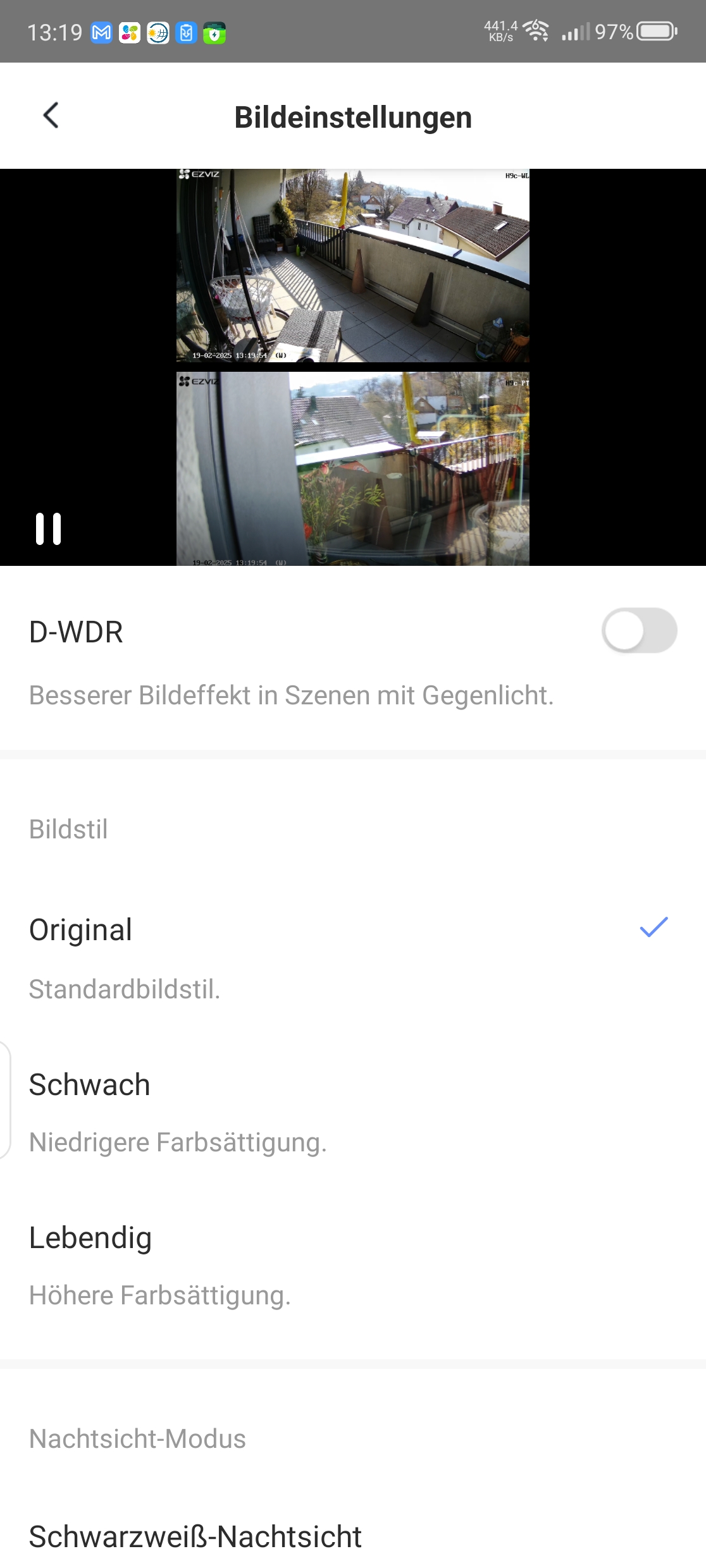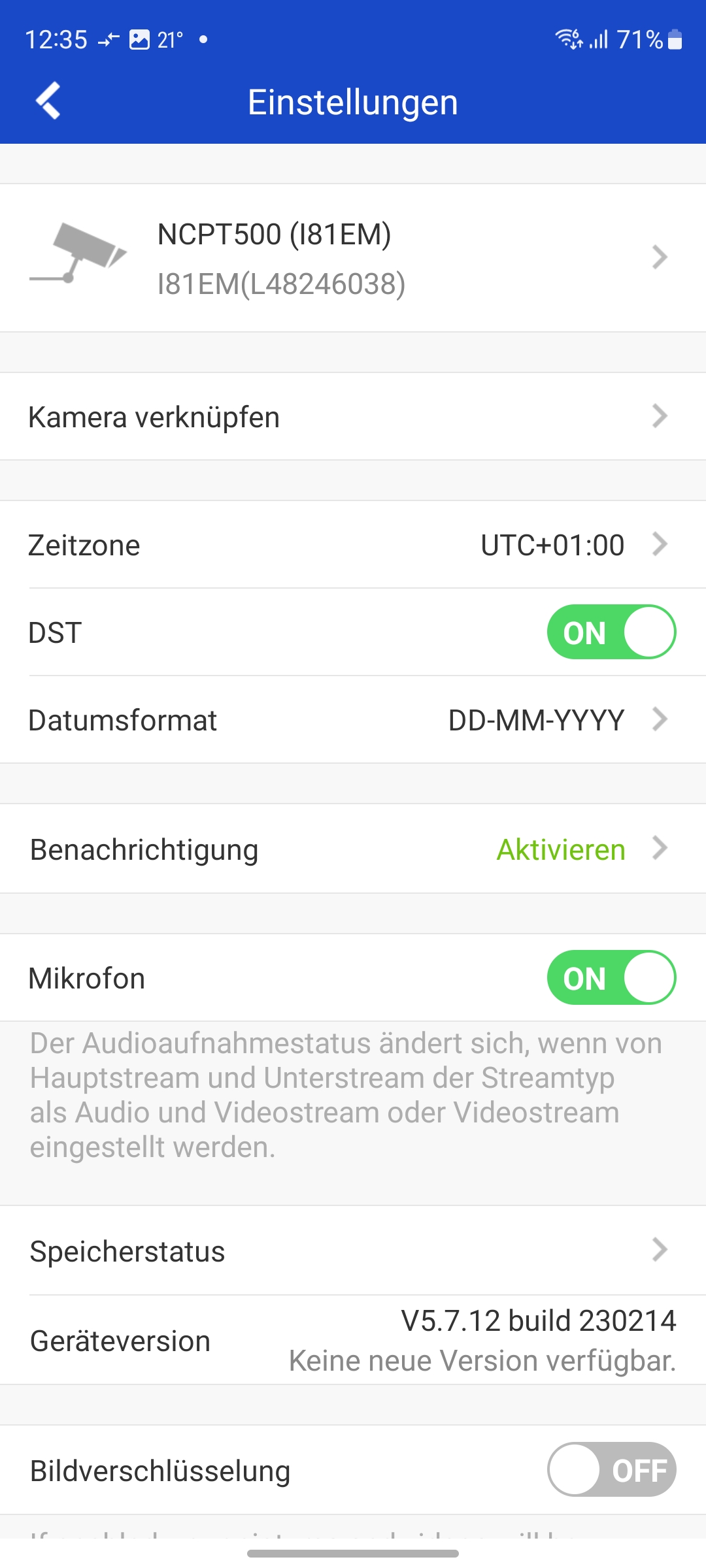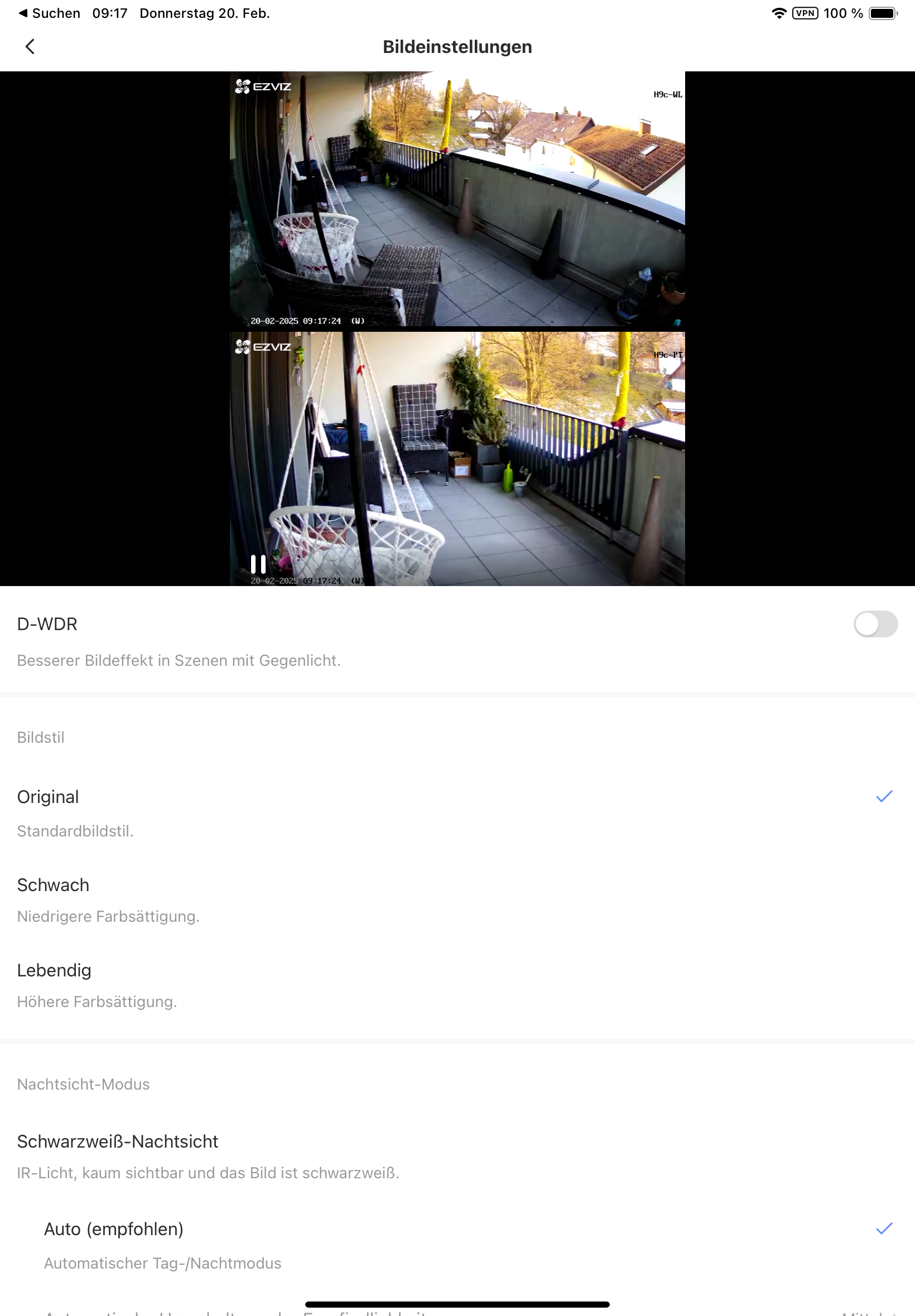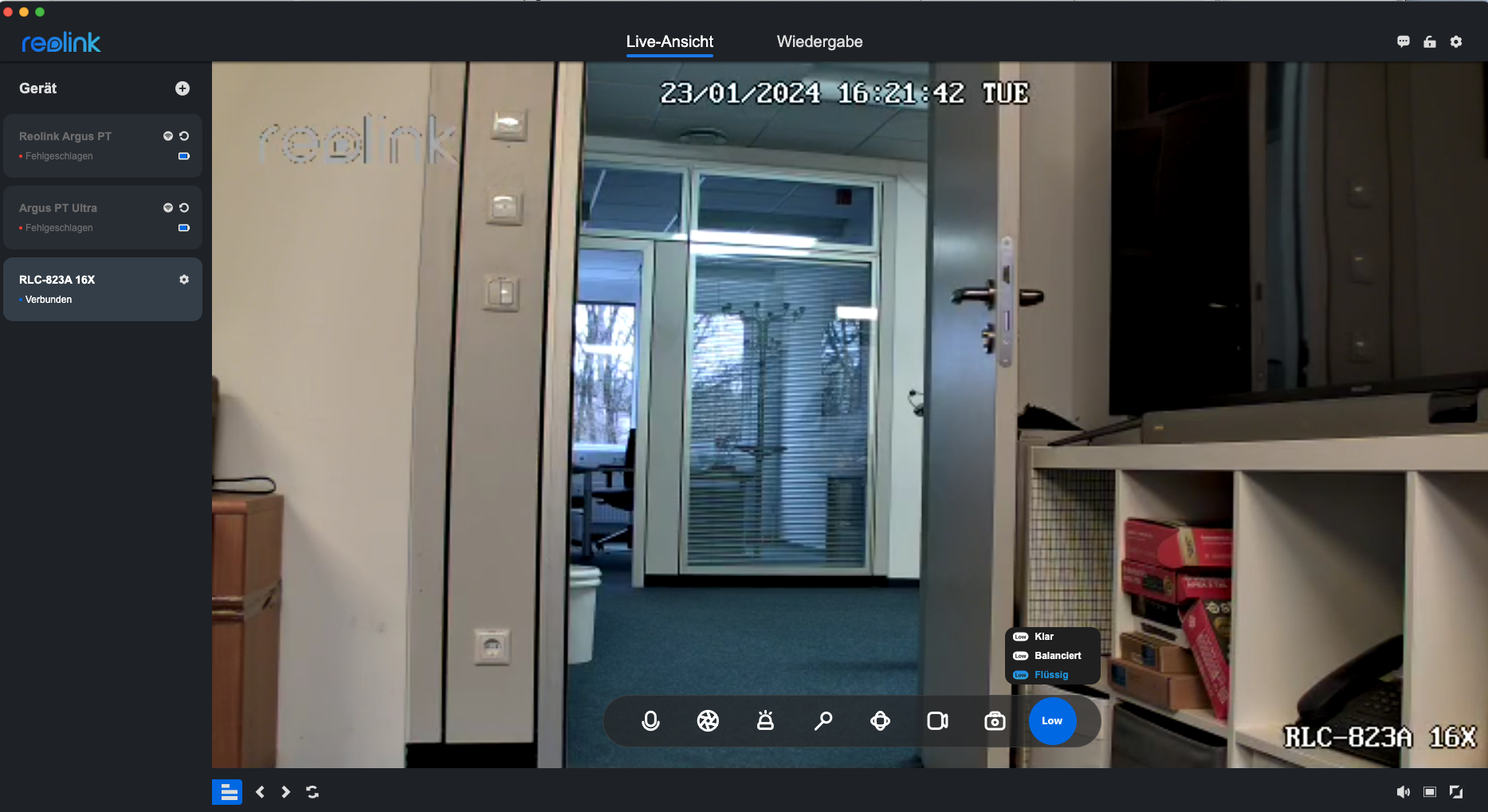 Im Test reagiert die Kamera auf Nutzereingaben nicht immer sofort. Vor allem bei der PTZ-Steuerung muss man etwas Geduld mitbringen. Das Livebild hat die App in den meisten Fällen verzögerungsfrei angezeigt. Sollte es einmal zu Verzögerungen kommen, hilft ein Neustart der App.