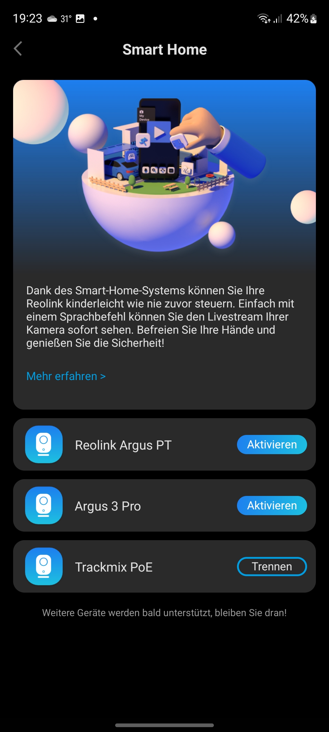 Dank Onvif-Support kann man die 7Links IPC-740 (ZX-5346) auch in entsprechend kompatible Smart-Home-Zentralen wie Homey Pro (Testbericht) oder Home Assistant einbinden. Eine Steuerung per Sprache über Amazon Alexa oder Google Assistant ist hingegen nicht möglich. Auch zu Homekit ist die PTZ-Überwachungskamera inkompatibel.