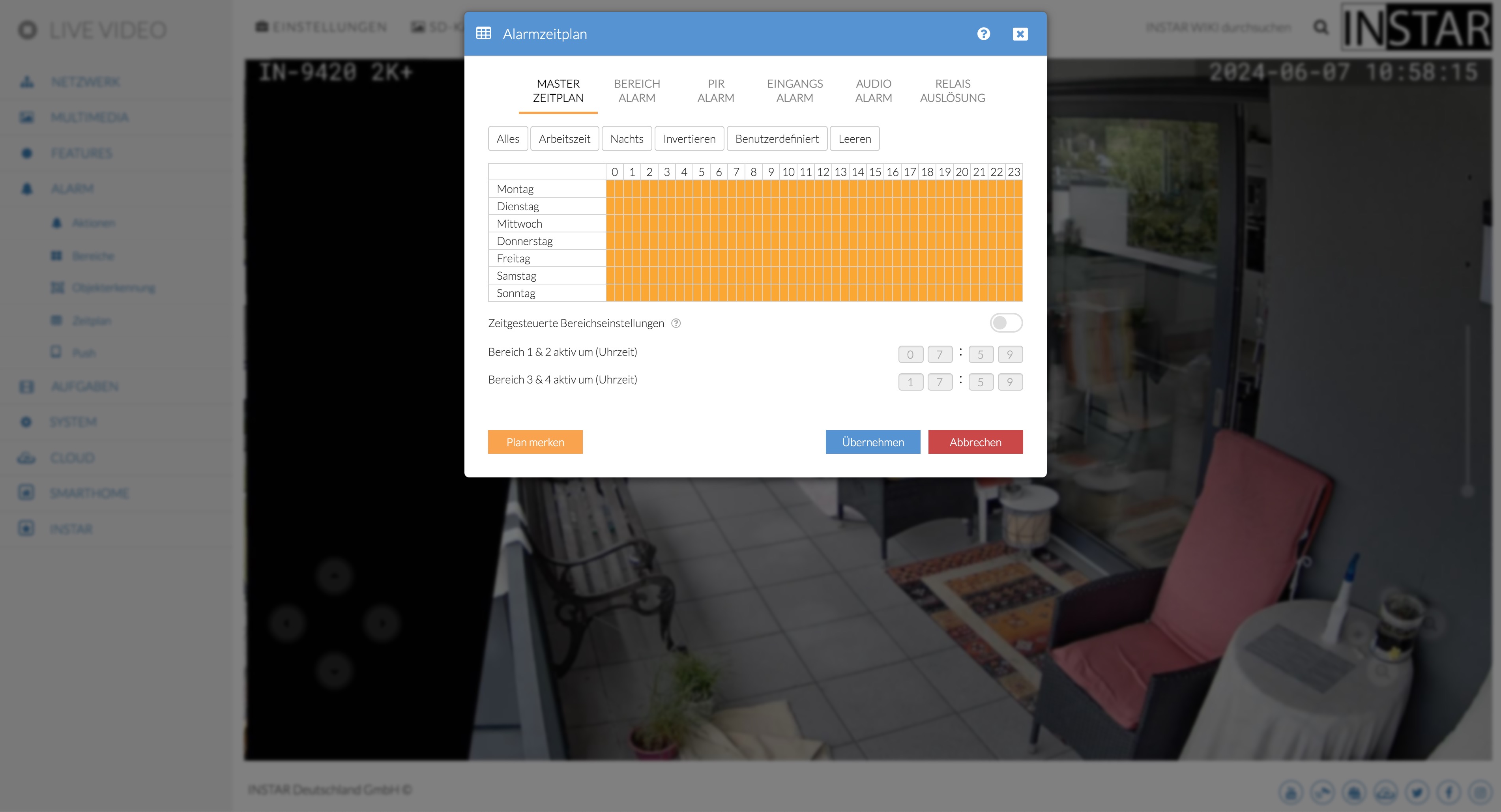 Unter Dimension des Objekts lässt sich obendrein noch ein minimaler und maximaler Größenbereich für ein Objekt festlegen, außerhalb dessen kein Alarm erfolgt. Zur Feinjustierung von Alarmen können Anwender diese auf bestimmte Wochentage und Stunden eingrenzen. Eine jährliche Planung ist nicht möglich.