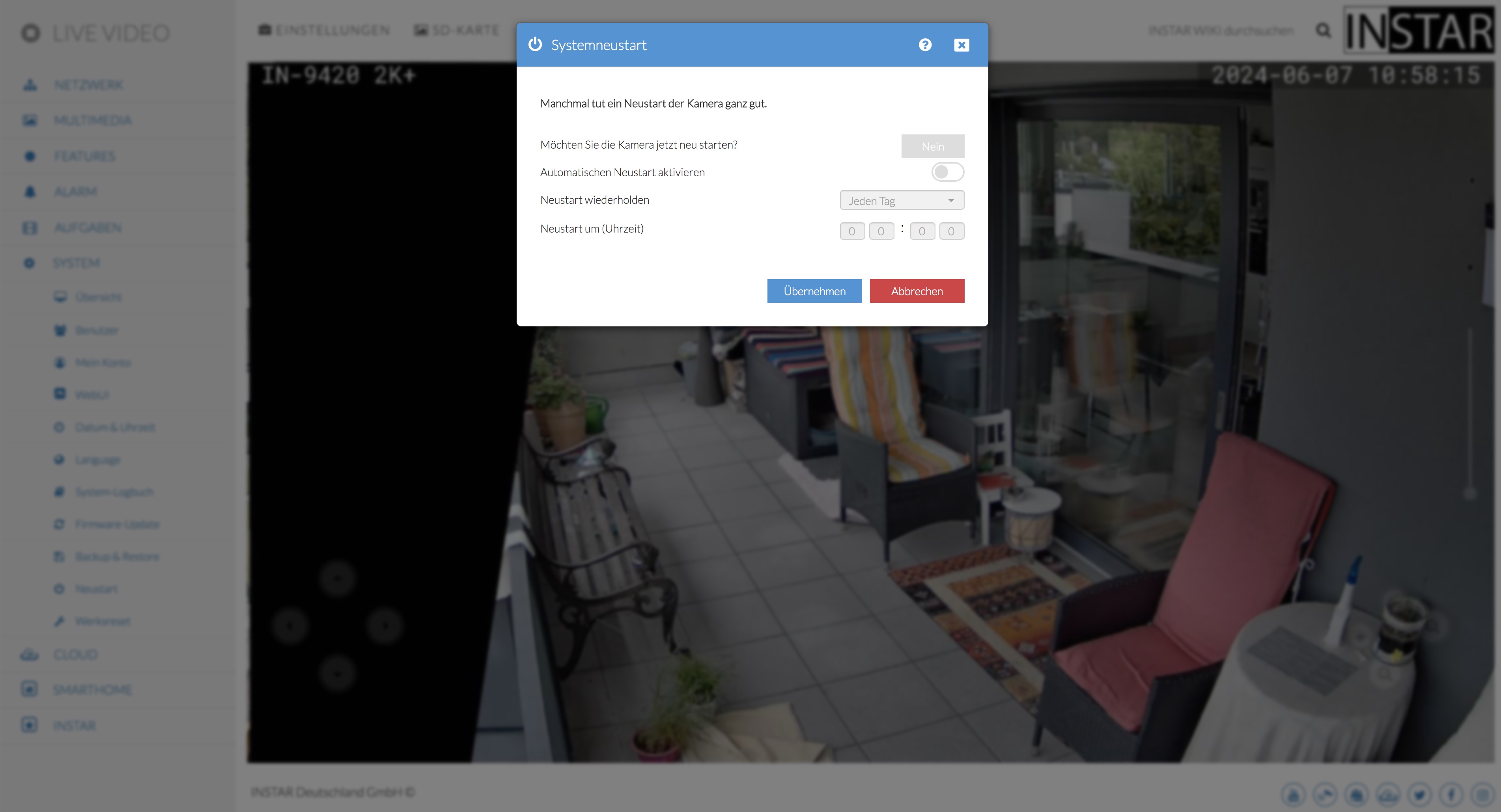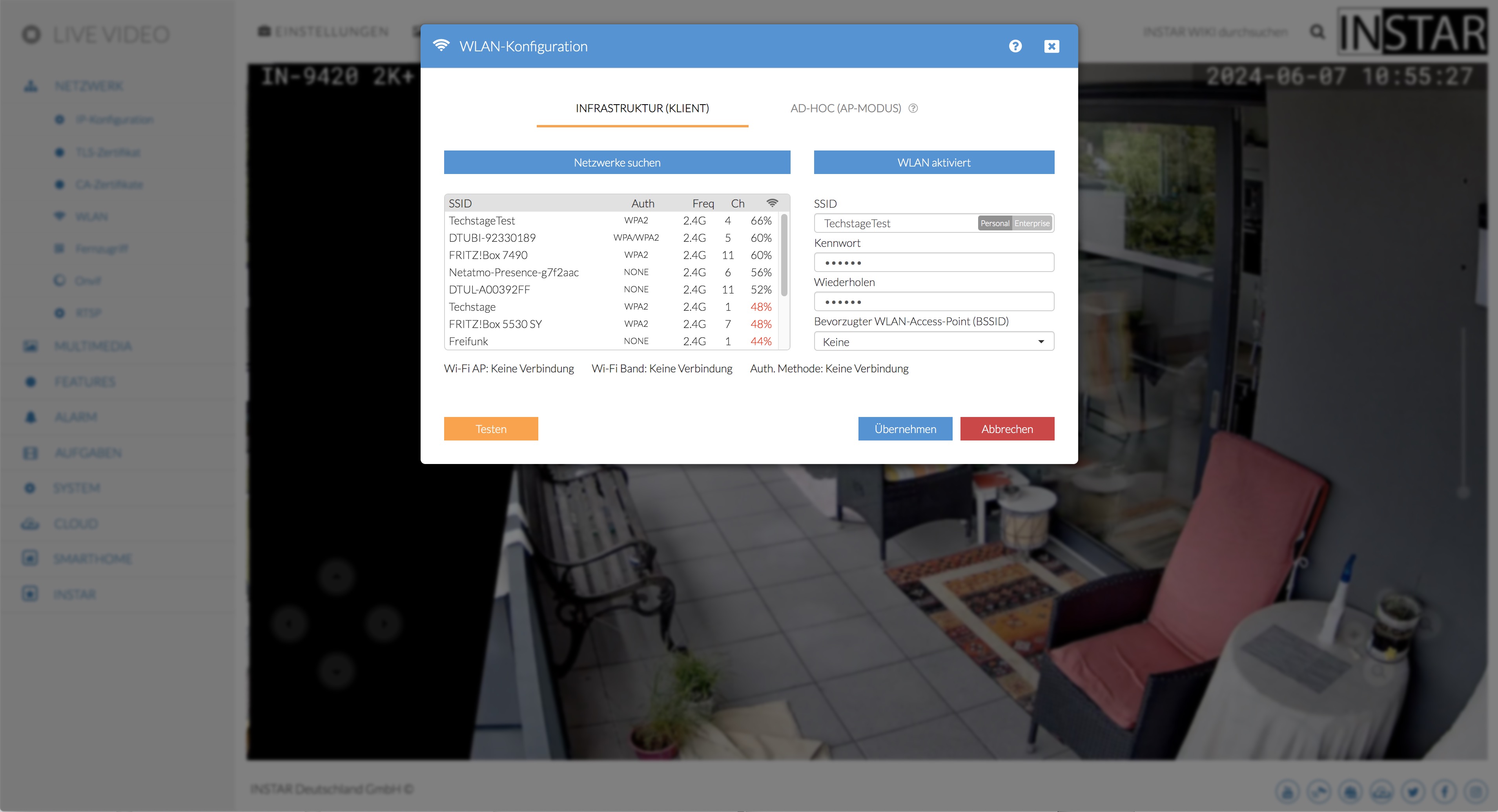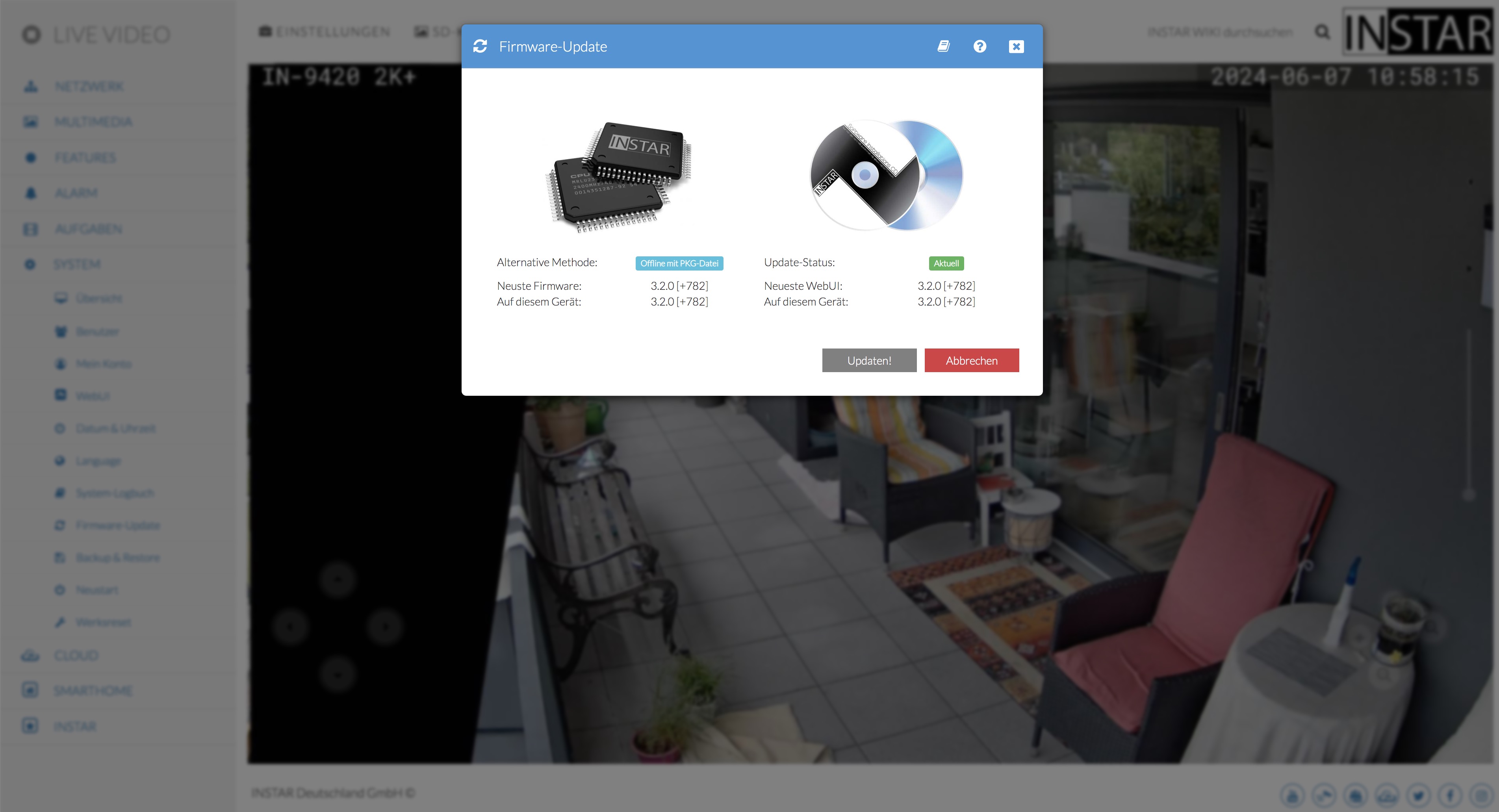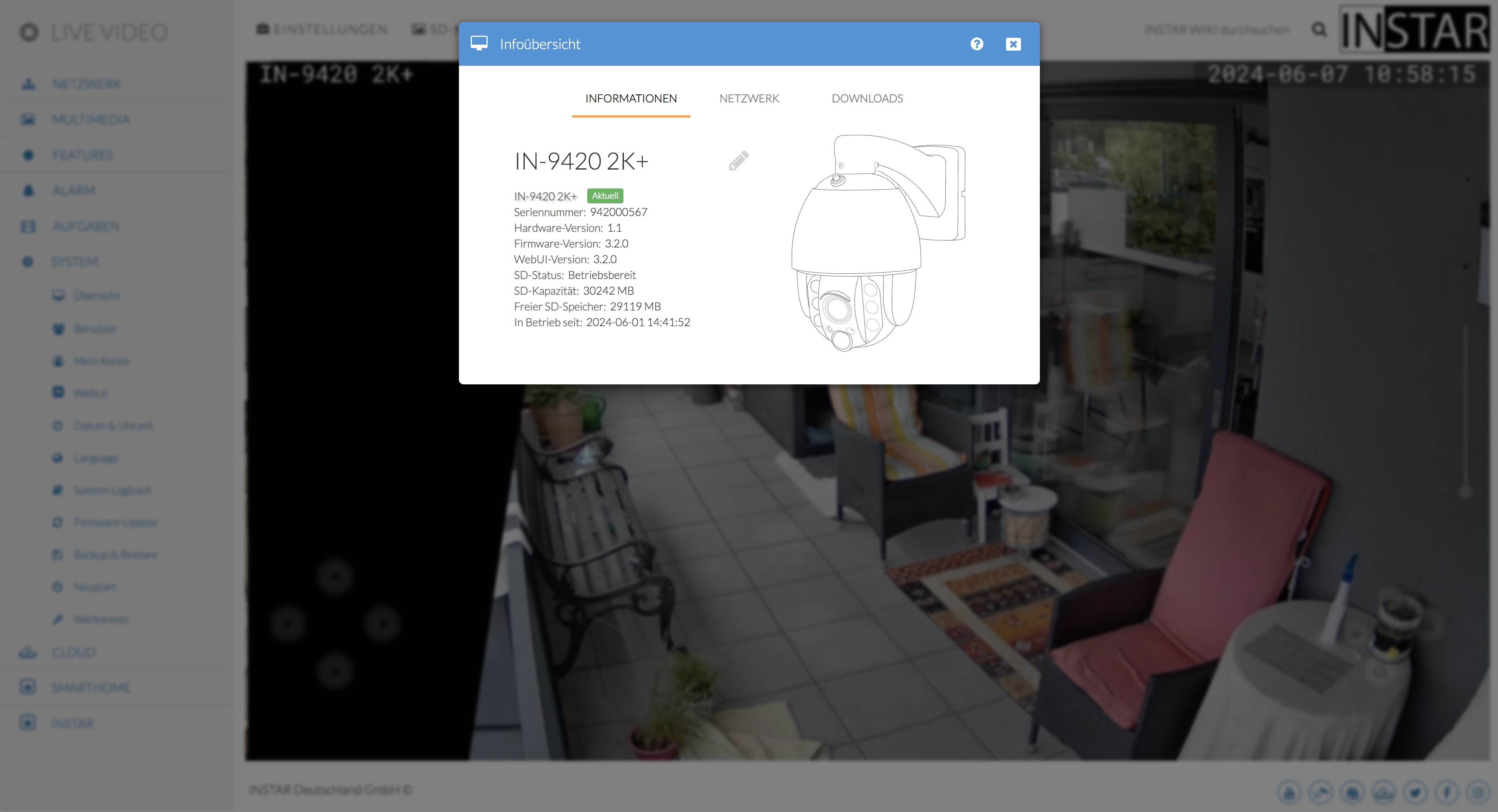 Ansonsten ist die Bedienung der Instar IN-9420 2K+ mit der App und der Web-UI dank übersichtlicher Menüs einfach. Verbesserungspotenzial bietet allerdings die Alarmierung in Kombination mit der Wiedergabefunktion. Erhält man etwa eine Push-Nachricht, öffnet sich nach einem Klick darauf die Live-Ansicht der Kamera. Sinnvoller wäre es aber, wenn man direkt zum aufgenommenen Video im Wiedergabemenü gelangen würde. Zudem wäre es wünschenswert, wenn man aufgenommene Videos nach Alarmart (Person, Fahrzeug, Tier, Geräusch) filtern könnte. An einer entsprechenden Funktionserweiterung arbeitet Instar bereits. Sie soll noch in diesem Sommer ausgerollt werden.
