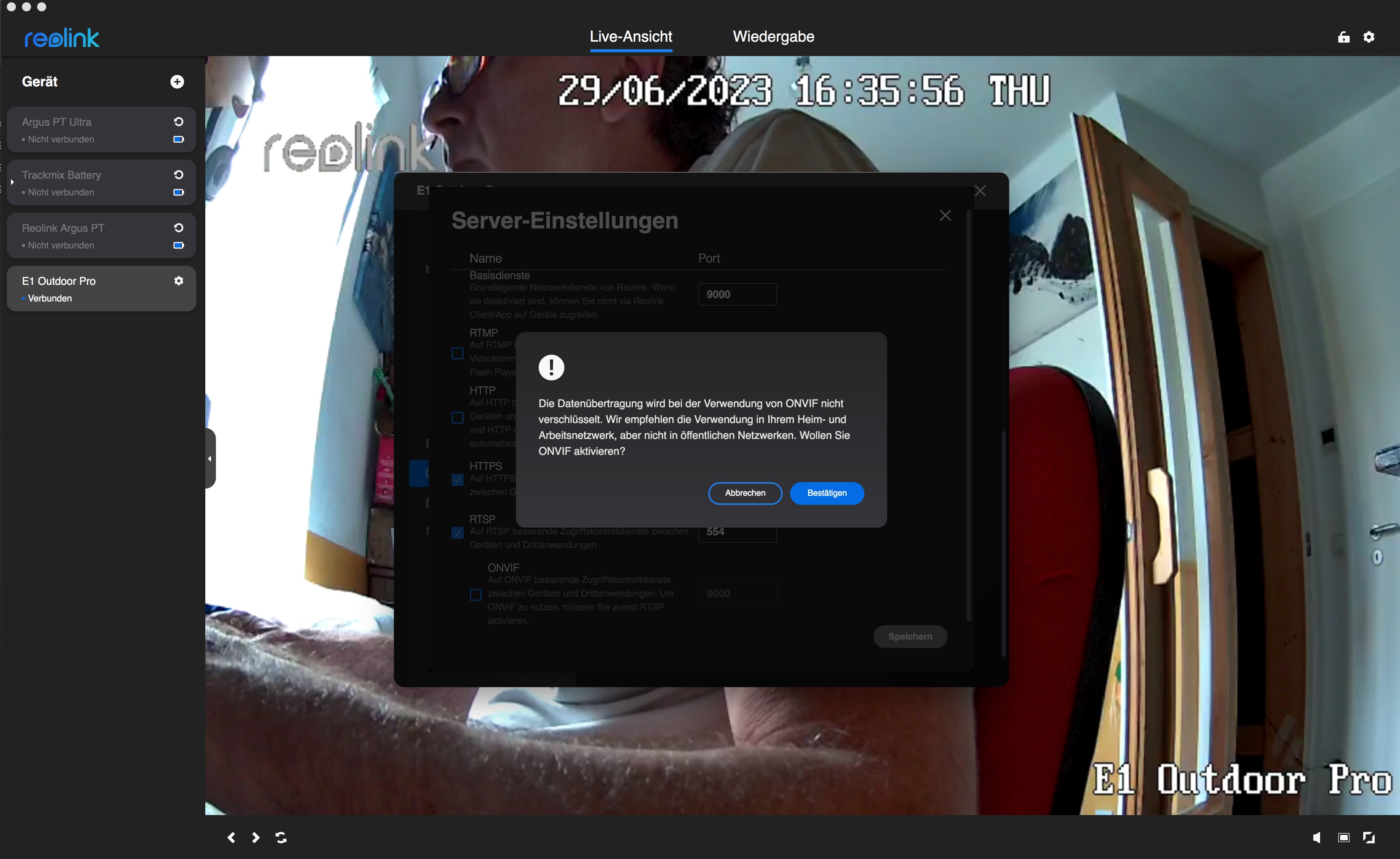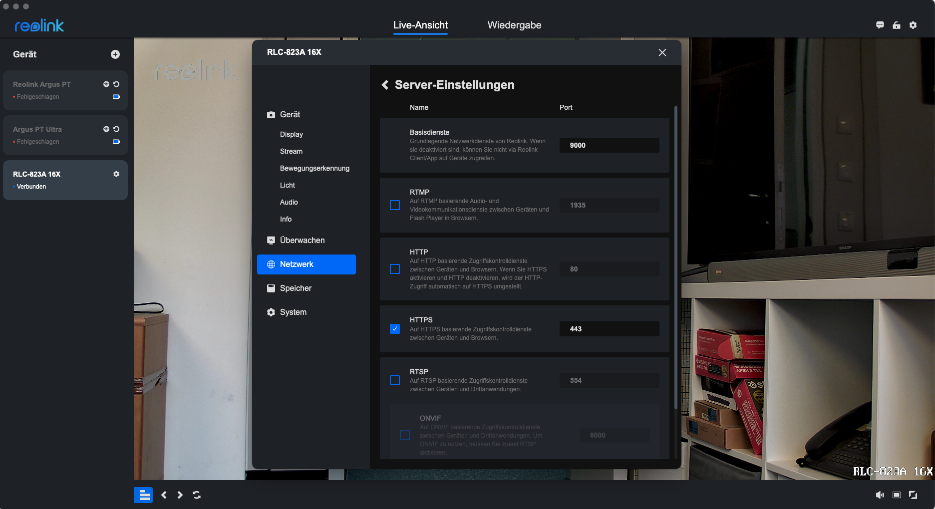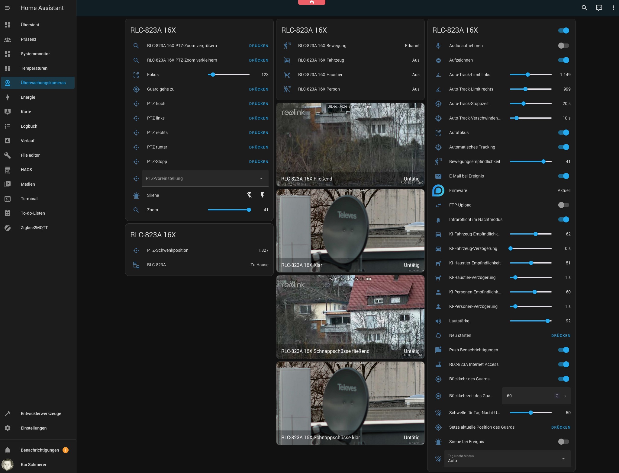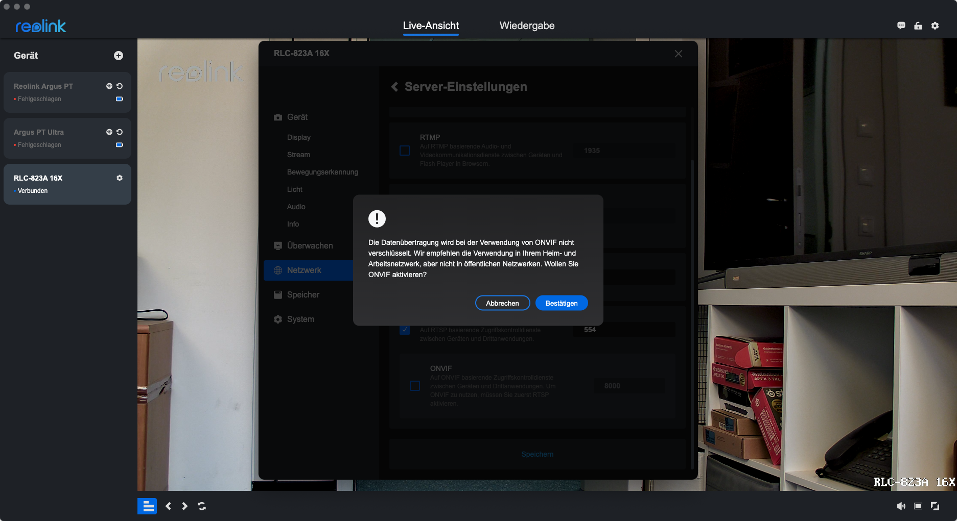 Wie andere Reolink-Kameras mit festem Stromanschluss unterstützt auch die Reolink RLC-823A 16x den Onvif-Standard. Damit können Anwender sie in leistungsfähige Smart-Home-Zentralen wie Home Assistant (Testbericht) und Homey Pro (Testbericht) einbinden und für Automatisierungen verwenden und so in Kombination mit smarten Sensoren ein leistungsfähiges Alarmsystem aufbauen. Außerdem sorgt die Unterstützung des Onvif-Standards auch dafür, dass man die Kamera mit Dritthersteller-Lösungen wie Synology Surveillance Station (Testbericht) steuern kann.