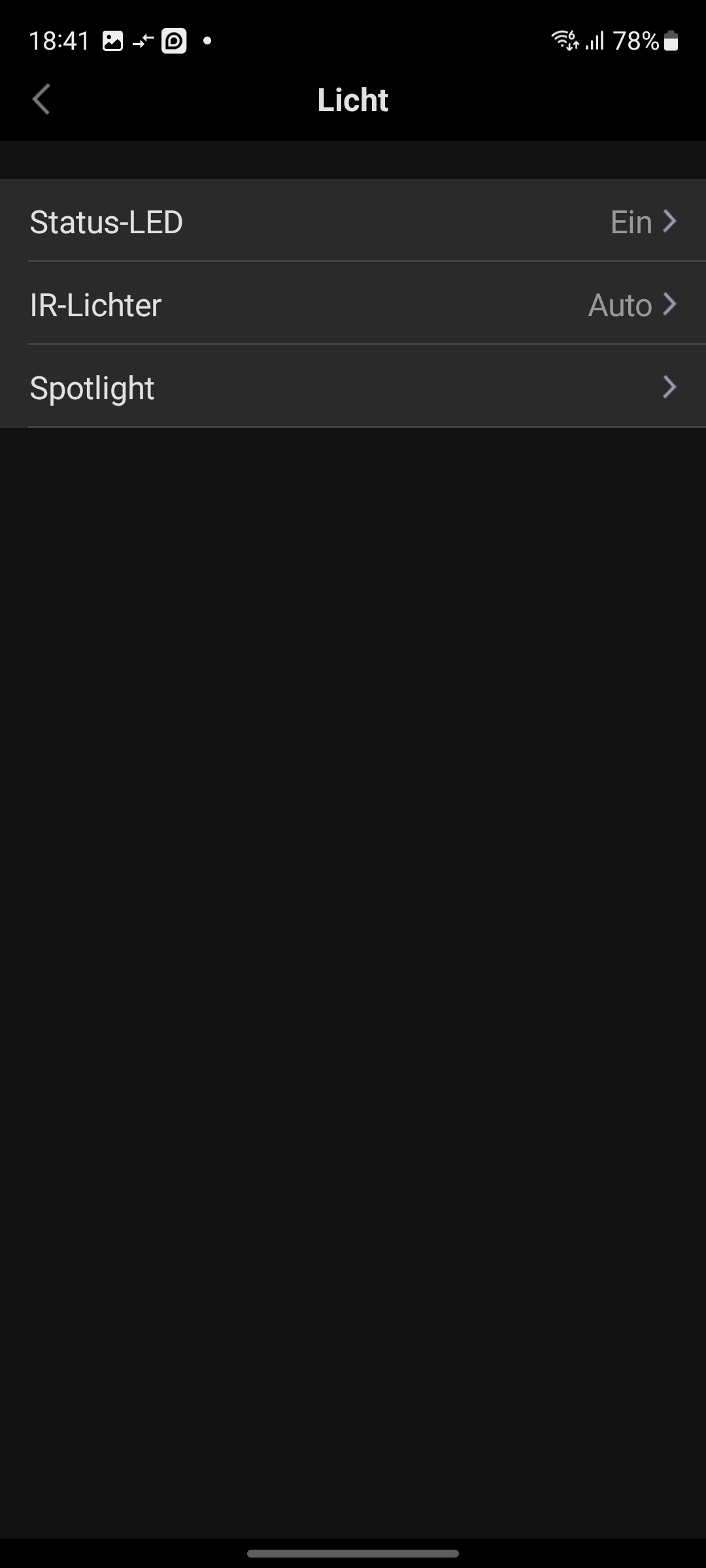 Unter „Erweiterten Einstellungen“ in der mobilen App bieten sich noch Konfigurationsmöglichkeiten für Benutzermanagement, Tonaufnahmen sowie IR-Lichter und Spotlight. Letztere finden sich in der Desktop-Anwendung unter Audio und Licht.