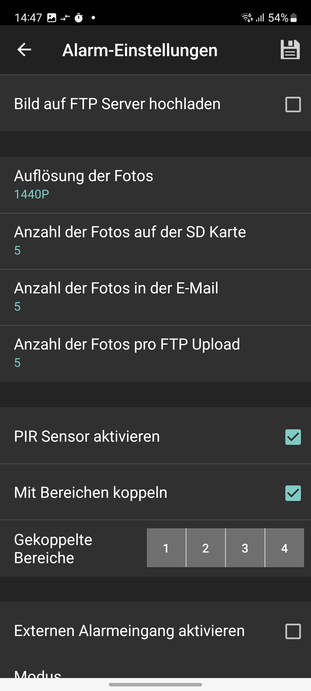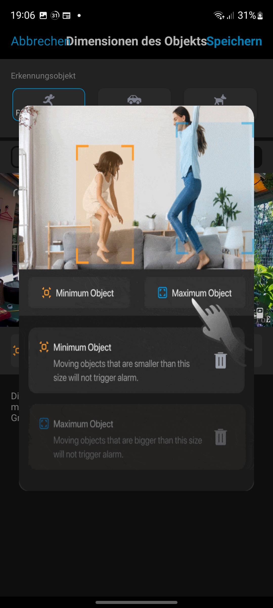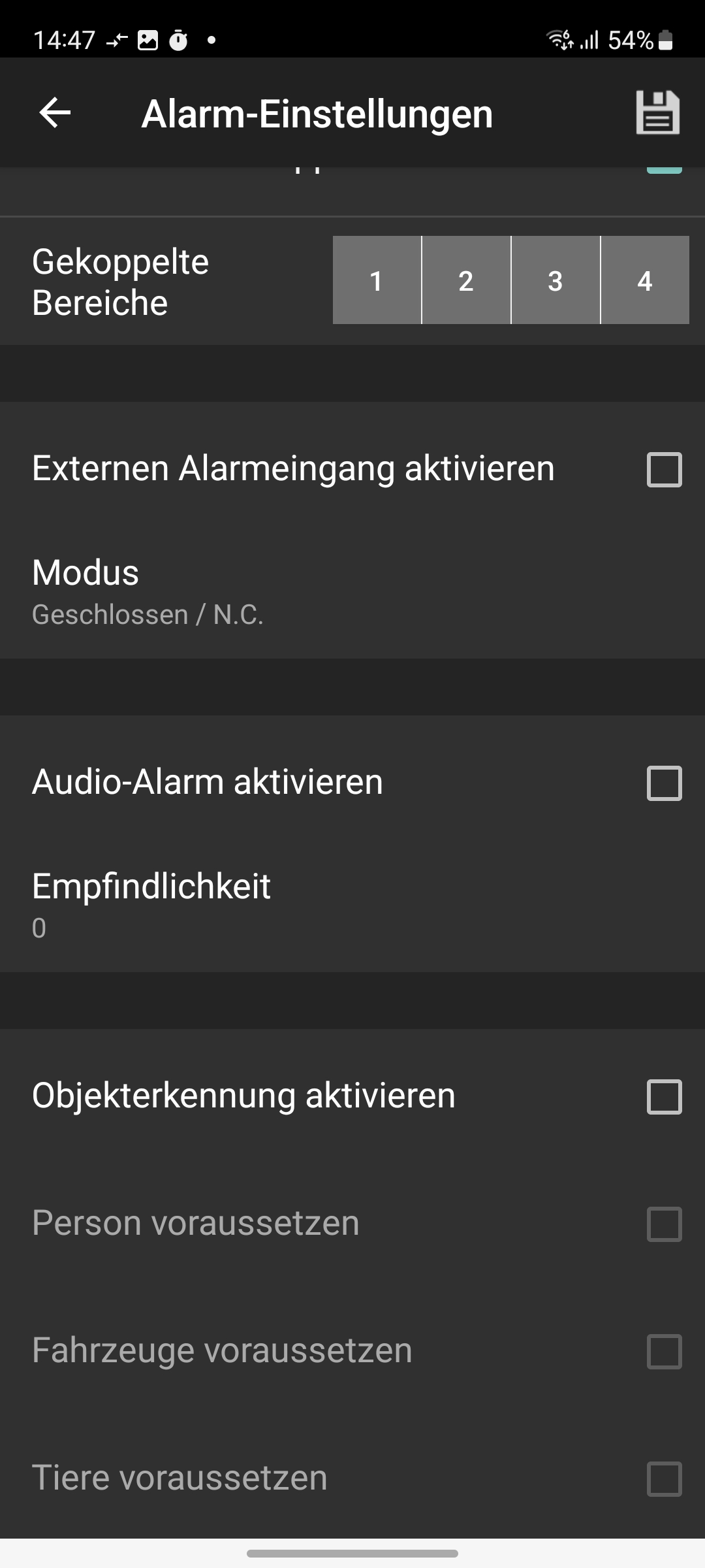 Die Bewegungserkennung kann zwischen Personen, Tieren und Fahrzeugen differenzieren. Dementsprechend lassen sich auch Alarme einstellen. Damit werden Fehlalarme durch andere, sich bewegende Objekte reduziert. Sollte es trotz aktivierter Personenerkennung zu Fehlalarmen kommen, können Anwender unter Alarmbereiche die Empfindlichkeit der Bewegungserkennung für vier Zonen justieren.