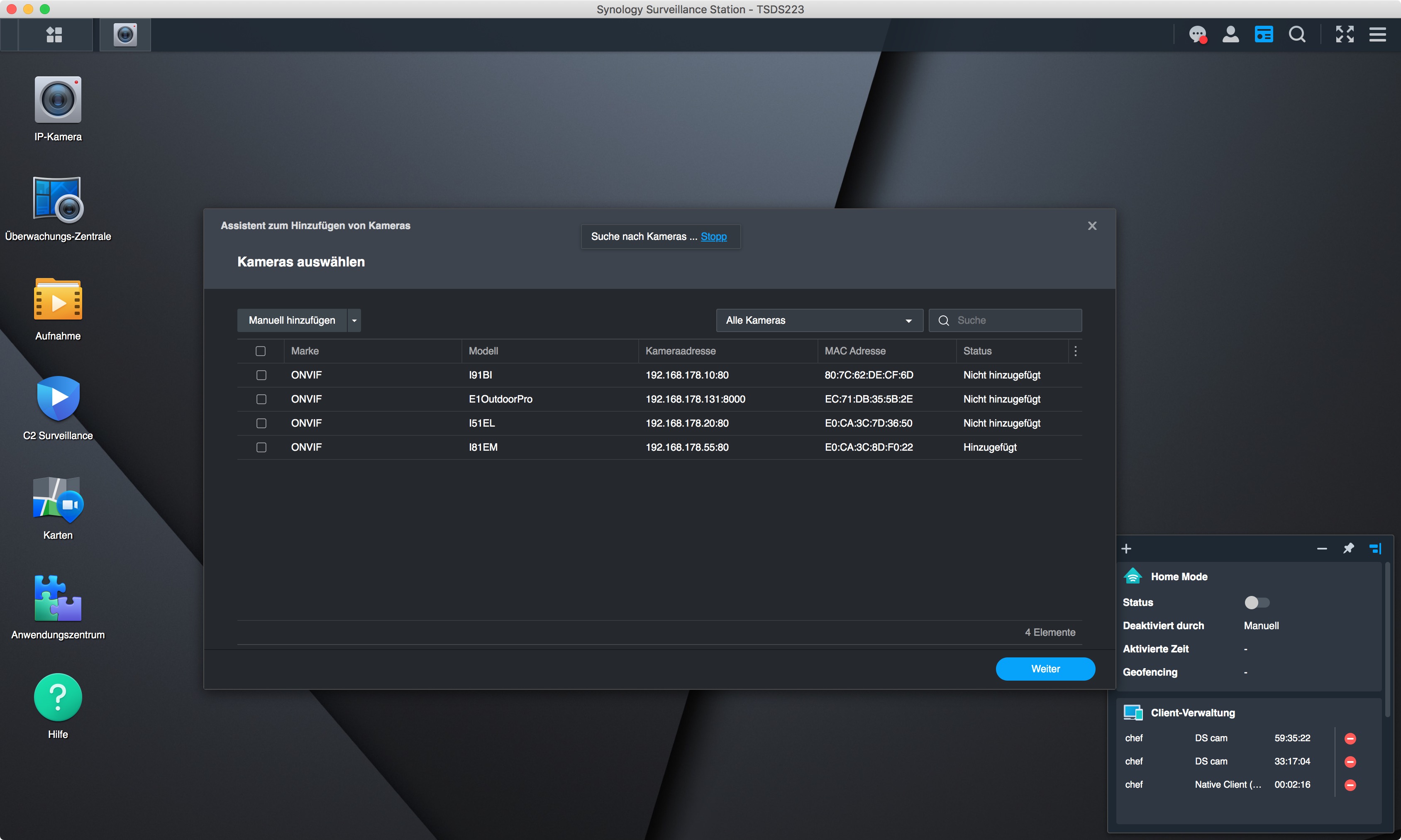 Die IP der Überwachungskamera verrät das Instar Kamera Tool, das für Linux, macOS und Windows vorliegt. Achtung: Wer ein VPN aktiviert hat, muss dieses deaktivieren, sonst findet das Tool die Kamera nicht. IP-Scanner wie Angry IP (Heise-Download) findet die Kamera ebenfalls.