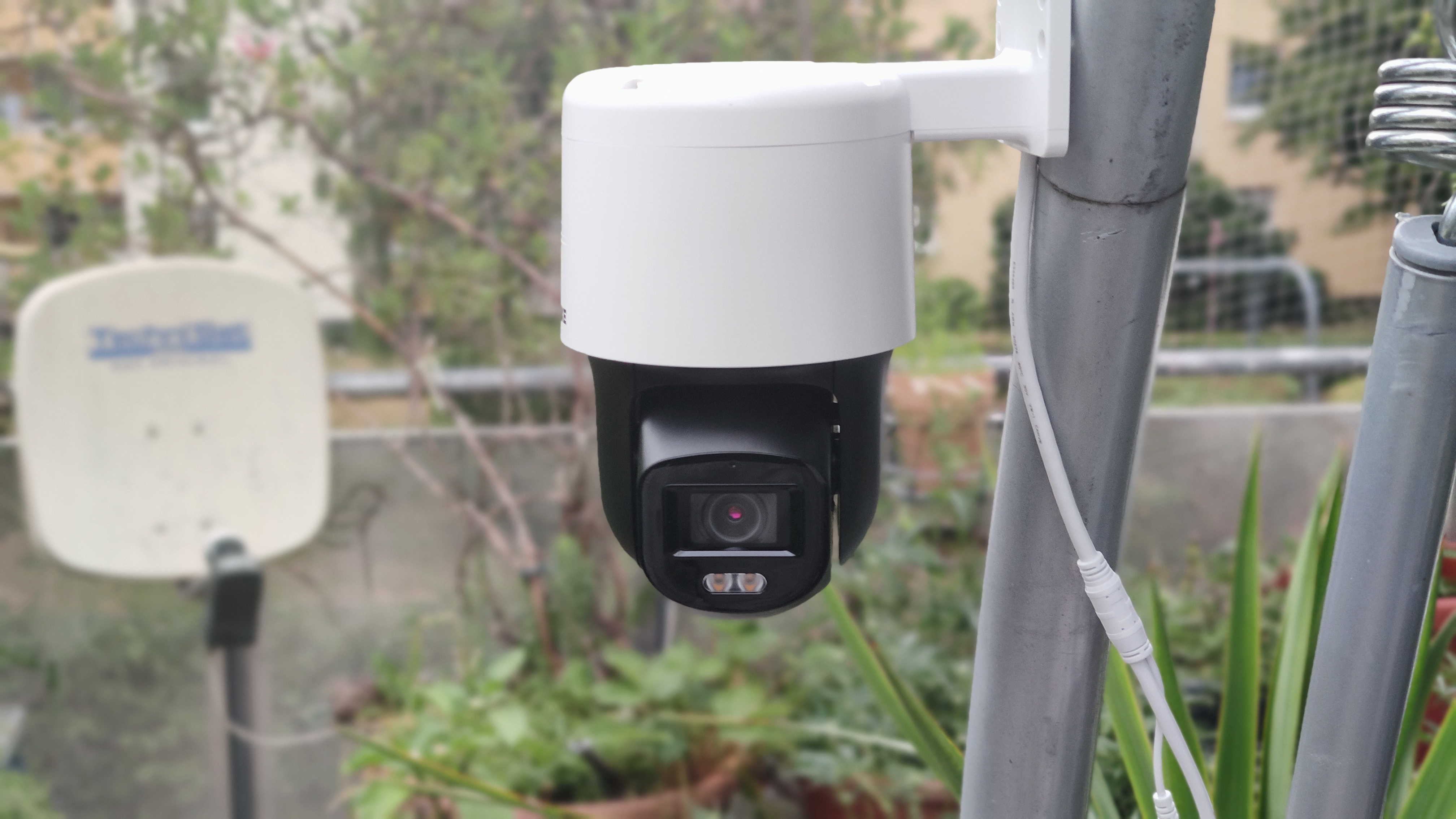 Die Schnelligkeit der PTZ-Mechanik können Anwender regulieren. Insgesamt reagiert sie auf Eingaben sehr zügig. Allerdings wird die Neupositionierung der Kamera durch ein surrendes Geräusch begleitet, das an die Positionierung eines 3D-Druckers erinnert. In Innenräumen nimmt man dieses deutlich wahr, im Außenbereich wird es von den Umgebungsgeräuschen in der Regel überlagert.