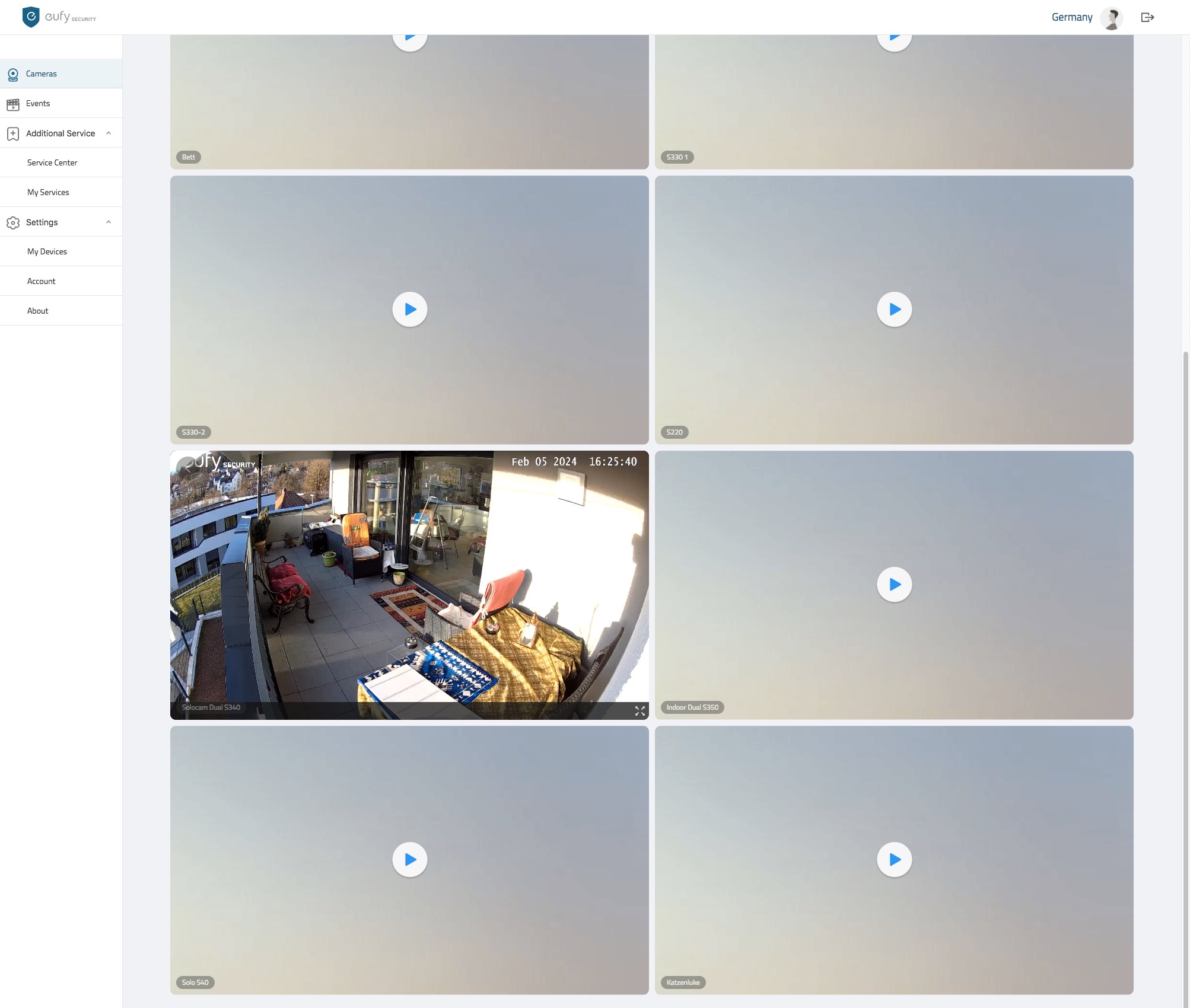 Anschließend wählen Anwender über das Plus-Zeichen in der App unter Battery Camera als Modell Solocam S340 aus (siehe auch Bildergalerie weiter unten). Die Ersteinrichtung erfolgt über das Einscannen des QR-Codes auf der Kamera. Anschließend ist sie einsatzbereit und per Smartphone-App steuerbar. Zusätzlich zur App können Anwender Livestream und Gerätedaten auch über eine Web-Anwendung auf dem Desktop abrufen. Allerdings ist damit keine Konfiguration der Geräte möglich. Eine leistungsfähige Desktop-Anwendung, wie sie etwa Reolink (Testbericht) bietet, hat Eufy bislang nicht im Angebot. Nach dem Start zeigt die Eufy-App alle bislang registrierten Kameras mit dem zuletzt aufgenommenen Live-Bild inklusive eines Sicherheitsberichts über aufgelaufene Alarme.