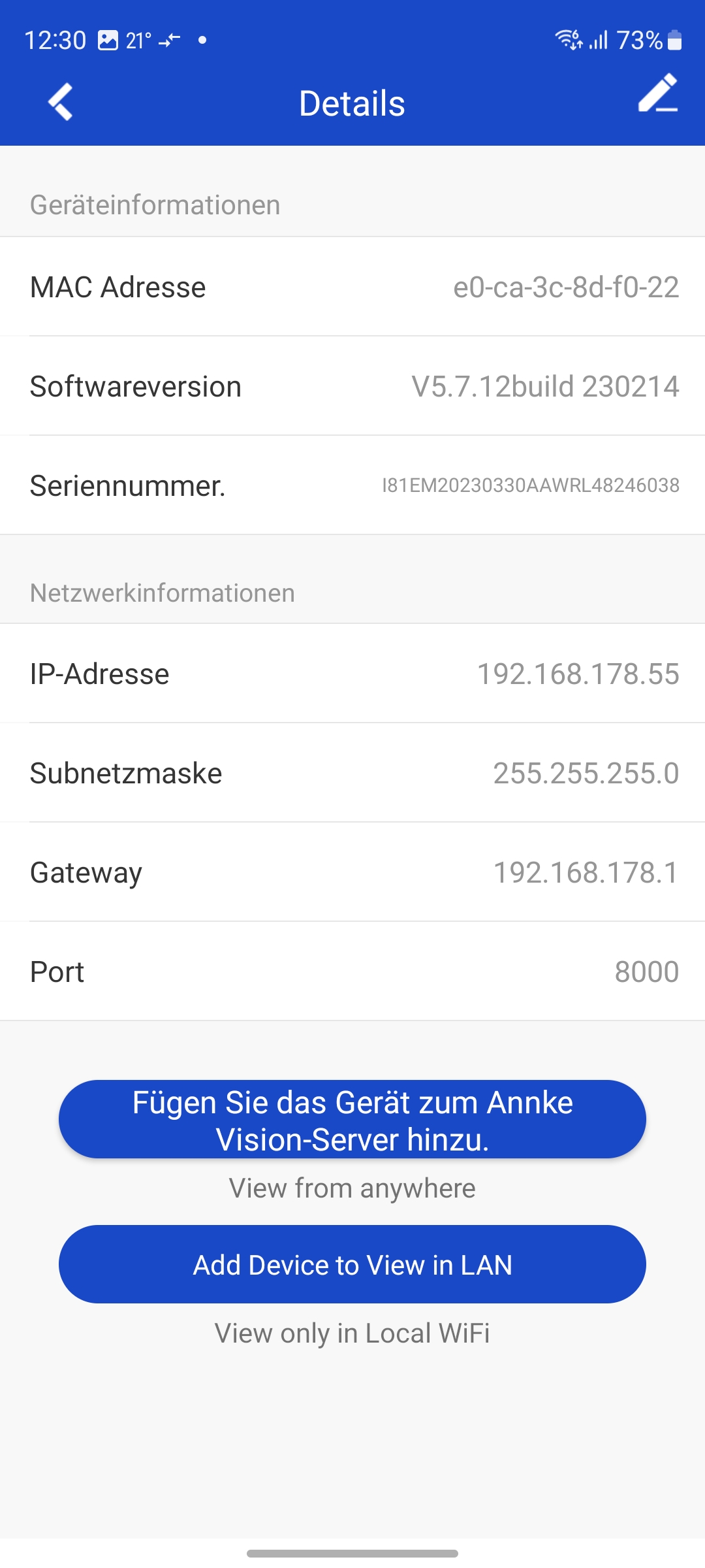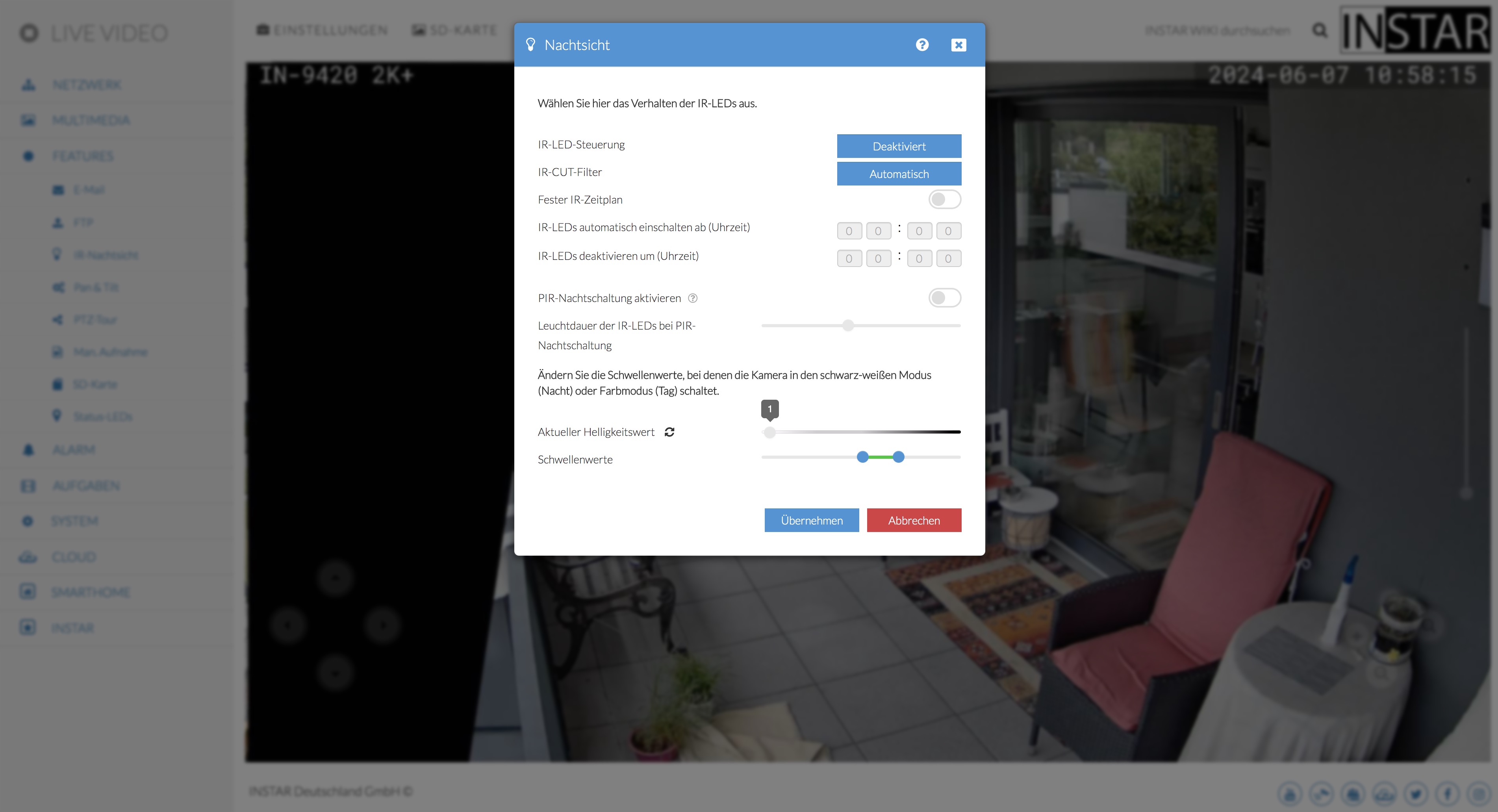 Anwender können die mobile Anwendung Instar Vision, die für Mobiltelefone und Tablets für Android und iOS vorliegt, zur Konfiguration der grundlegenden Funktionen der Kamera verwenden. Weitergehende Konfigurationsoptionen wie Onvif und MQTT stehen aber nur über die moderne Web-UI parat. Generell bieten sowohl die App als auch die Web-UI für die zahlreichen Konfigurationsoptionen detaillierte Erklärungen, sodass das Set-up der Kamera auch für wenig erfahrene Anwender kein Problem sein sollte.