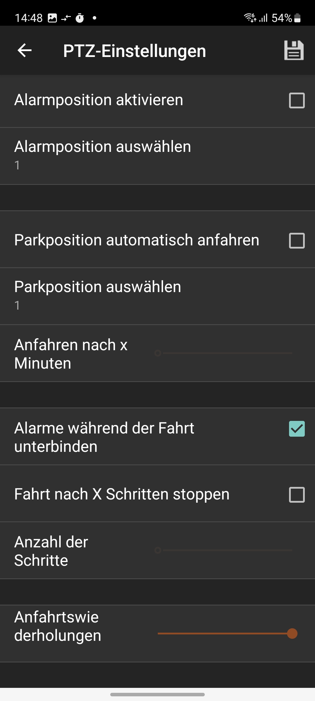 Ansonsten gelingt das Schwenken und Neigen der Kamera in der App sehr intuitiv. Einfache Touch-Gesten reichen hierfür aus. Zudem gibt es noch die klassische PTZ-Steuerung mit Pfeil-Tasten und P für das Anfahren respektive Speichern von Positionen (siehe auch Bildergalerie).
