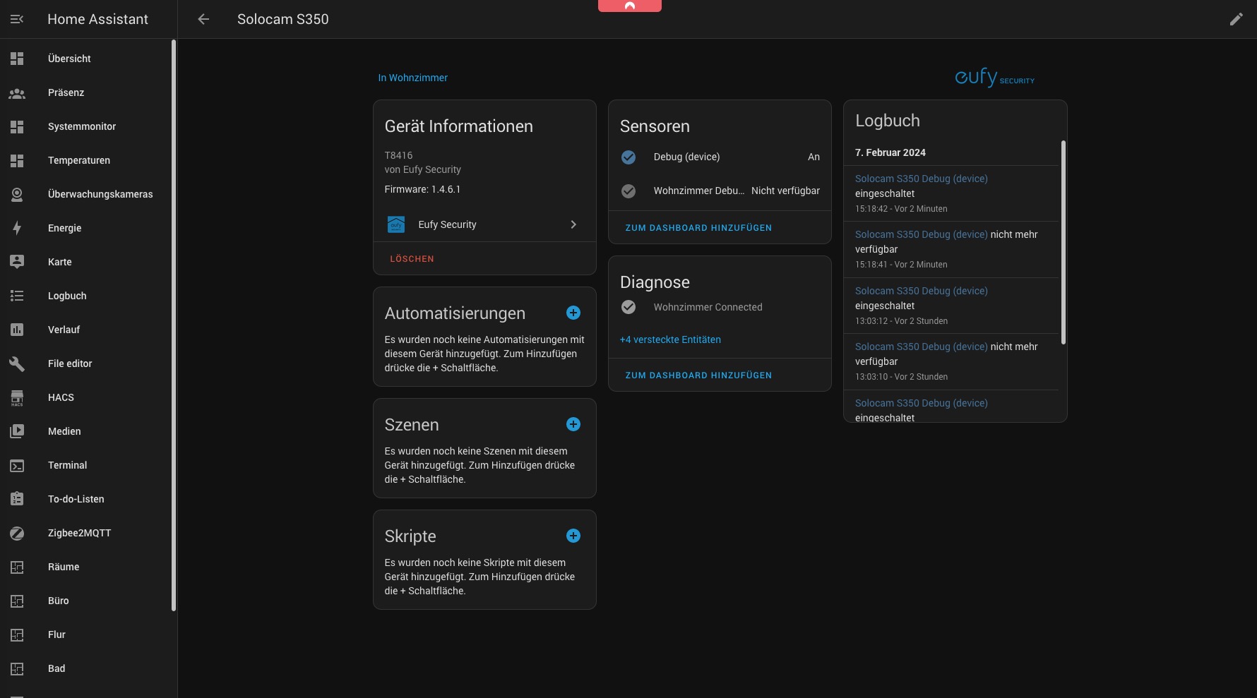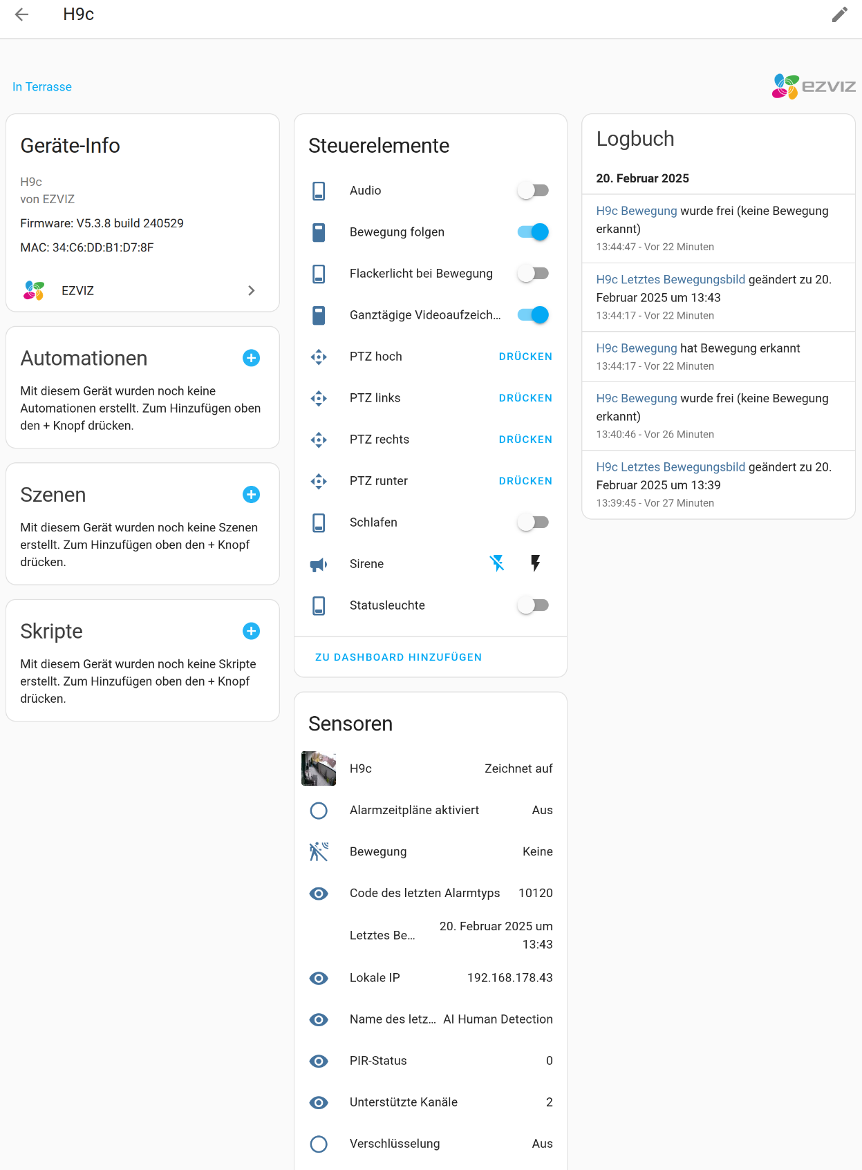 Mithilfe von MQTT können Anwender auf nahezu sämtliche Funktionen der Kamera zugreifen. Allerdings erfordert die Umsetzung einigen Aufwand. Begrüßenswert wäre eine Integration, wie sie etwa für Reolink-Kameras vorliegt und die sämtliche Funktionen integriert, ohne dass man dafür mühevoll Yaml-Dateien editieren muss.