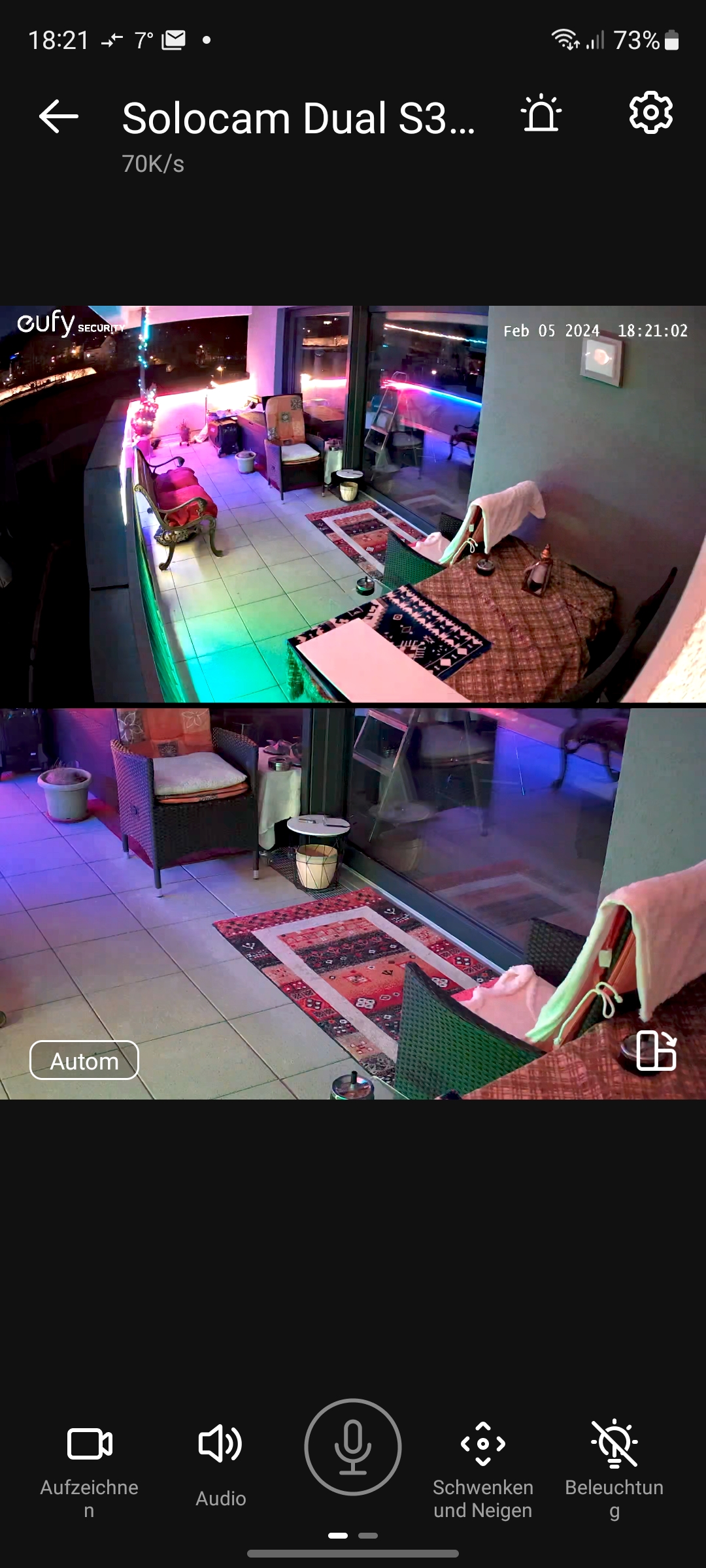 Die gleichzeitige Darstellung der beiden Streams von Weitwinkel- und Teleobjektiv hat während des Tests problemlos funktioniert. Der Livestream steht zügig parat und hat nur einen Versatz von maximal einer Sekunde. So hat man die Totale sowie eine optisch dreifach vergrößerte Zoom-Ansicht im Blick. In Kombination mit dem digitalen Zoom ermöglicht die Eufy Solocam S340 auch eine bis zu achtfache Vergrößerung. Die Ergebnisse können sich in jedem Fall sehen lassen (siehe auch Bildergalerie).