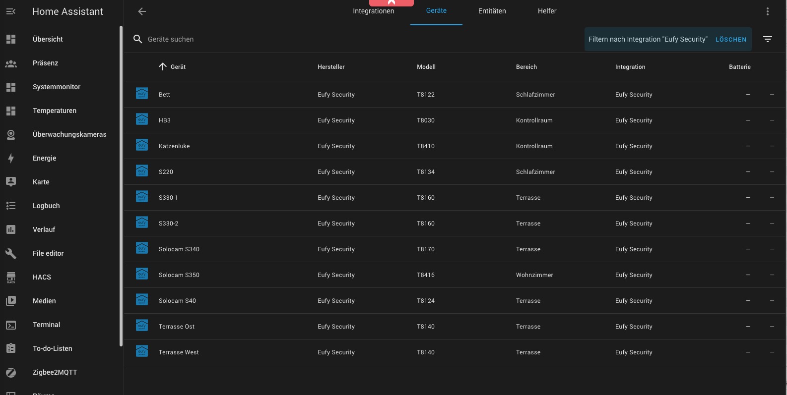 Bedauerlicherweise bietet Eufy für die Solocam S340 keine Integrationsmöglichkeiten für andere Smart-Home-Systeme (Bestenliste) wie Aqara, Bosch, Home Assistant, Homekit, Homey Pro, Smartthings oder Tuya. Immerhin ist sie dank einer Community-App kompatibel zu Homey Pro. Auch unter Home Assistant gibt es für die Eufy-Kameras eine Community-Integration, die aber für die Solocam S340 noch keine relevanten Funktionen unterstützt.