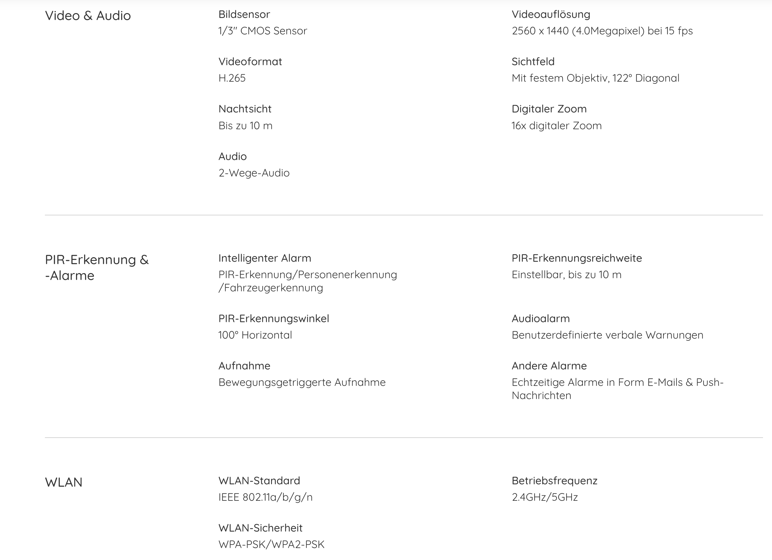 | Ezviz HB8 | 340° | 2560 | 1440 | 3.686.400 | 15 fps | nein |
