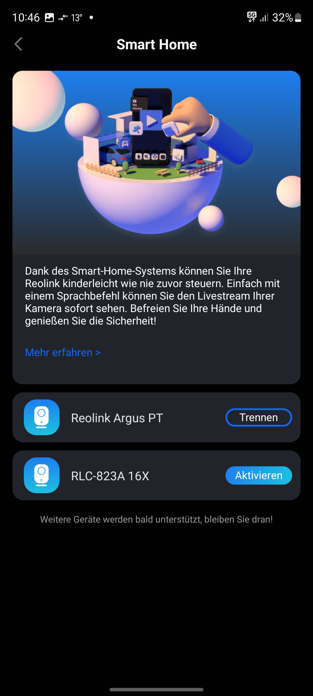 Die Reolink RLC-823A 16x lässt sich auch mit den Sprachassistenten Google Assistant und Amazon Alexa bedienen. In Verbindung mit einem smarten Display (Ratgeber) können Anwender den Kamera-Livestream auf ein kompatibles Gerät wie Nest Hub oder Echo Show ausgeben (siehe auch Bildergalerie). Letzteres ist aber wie bei fast allen Überwachungskameras mit einer Latenz verbunden. Im Fall der Reolink liegt diese bei etwa fünf Sekunden.