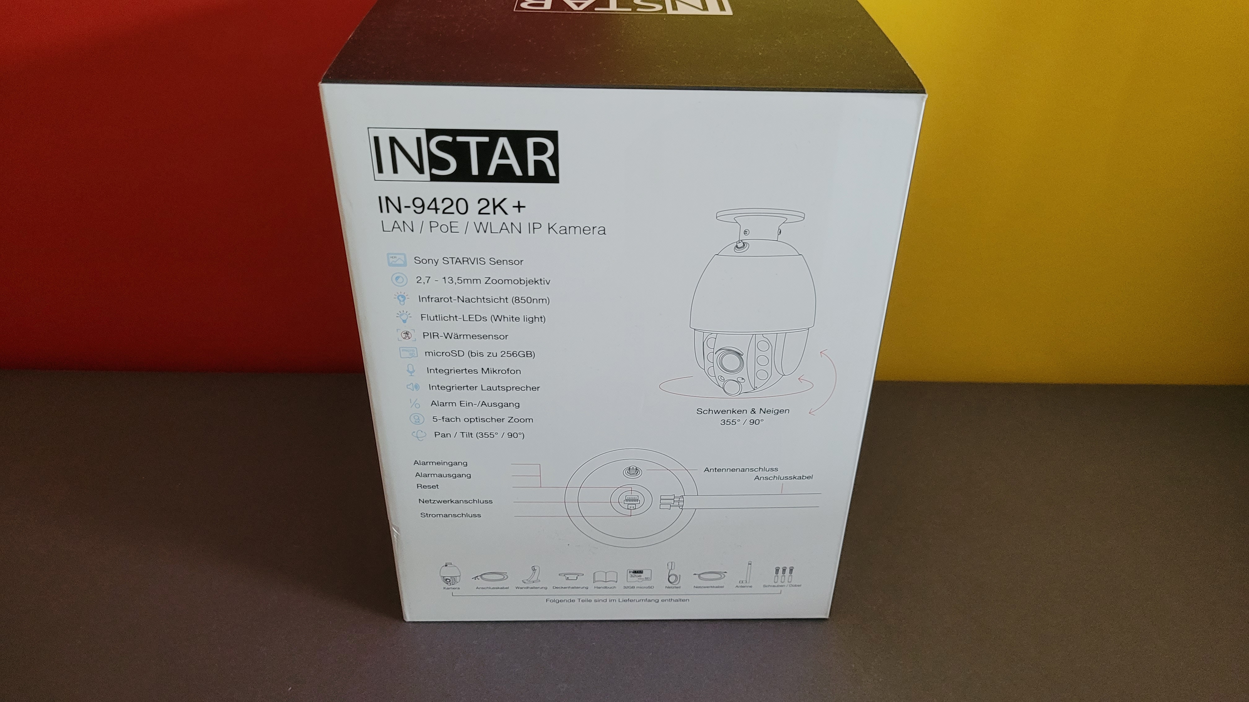 Instar bietet mit der aktuell für 260 Euro erhältlichen IN-9420 2K+ eine PTZ-Überwachungskamera für den Außenbereich, die über einen 1/2.8 Zoll großen Sony-Starlight-Sensor verfügt und Videos mit bis zu 2560 × 1440 Pixel sowie einer Bildrate von maximal 30 FPS aufzeichnet. Das Objektiv bietet einen fünffachen optischen Zoom mit Brennweiten zwischen 2,8 und 12 mm und ein diagonales Sichtfeld von 30° bis 120°.