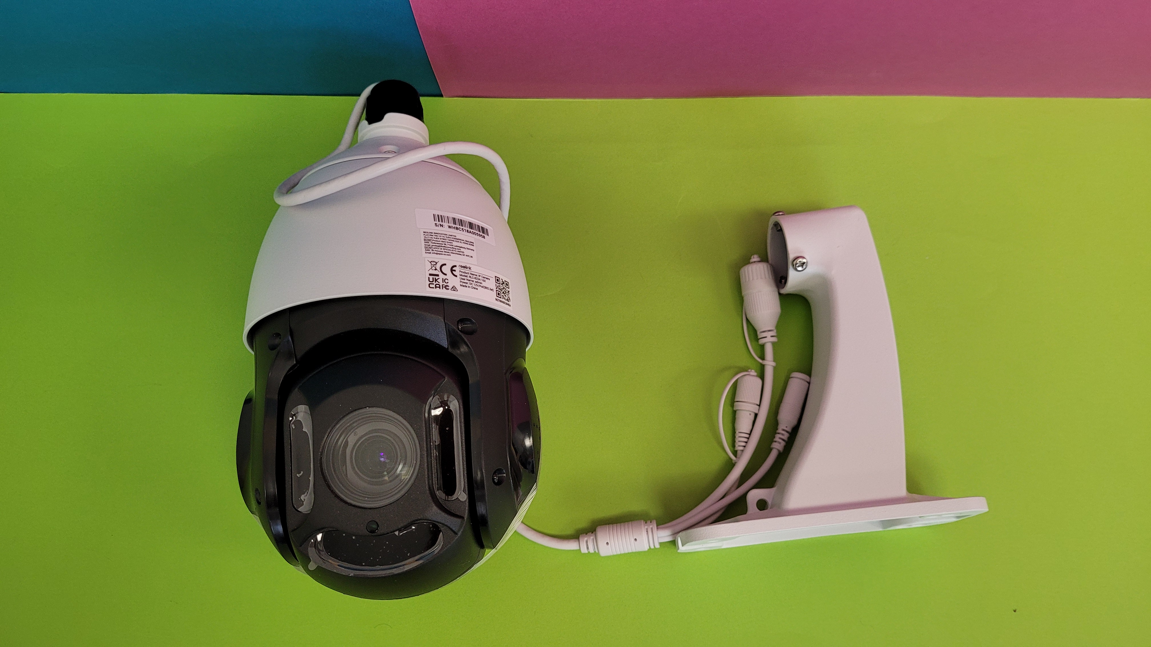 Dank einer innovativen Kabelführung lässt sich die PTZ-Kamera so montieren, dass die von den für die Montage infrage kommenden Kabeln (Strom, Ethernet, Alarm) unsichtbar hinter einer Wand verschwinden. Dafür muss man die hintere Abdeckung der Kamera abschrauben und die nötigen Kabel durch die Halterung verlegen. Je nachdem, wie viele Kabel zum Einsatz kommen, verwendet man dafür eine der mitgelieferten Dichtungen mit passenden Durchführungen für die unterschiedlichen Kabel. Das hört sich erst einmal kompliziert an, ist aber in der Praxis dank der hervorragenden Dokumentation relativ einfach und nach wenigen Minuten erledigt. Mehr Informationen zur Montage zeigen wir in der Bildergalerie.