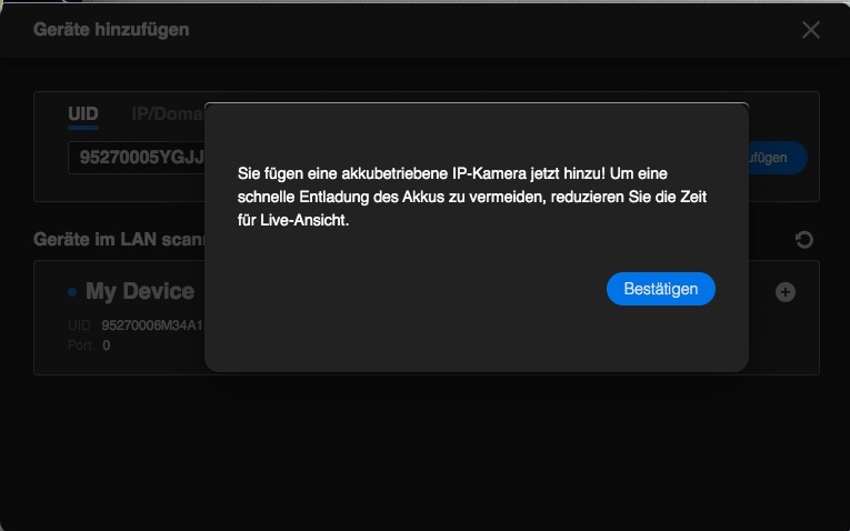 Zusätzlich zur App können Anwender die Kamera mit der für macOS und Windows vorliegenden Reolink-Desktop-Anwendung steuern. Hierfür muss man lediglich die UID der Kamera (abrufbar in der App unter Geräteinfos) sowie das Gerätepasswort eingeben. Sollten dabei Probleme auftreten, hilft das ausgezeichnete und deutschsprachige Handbuch.