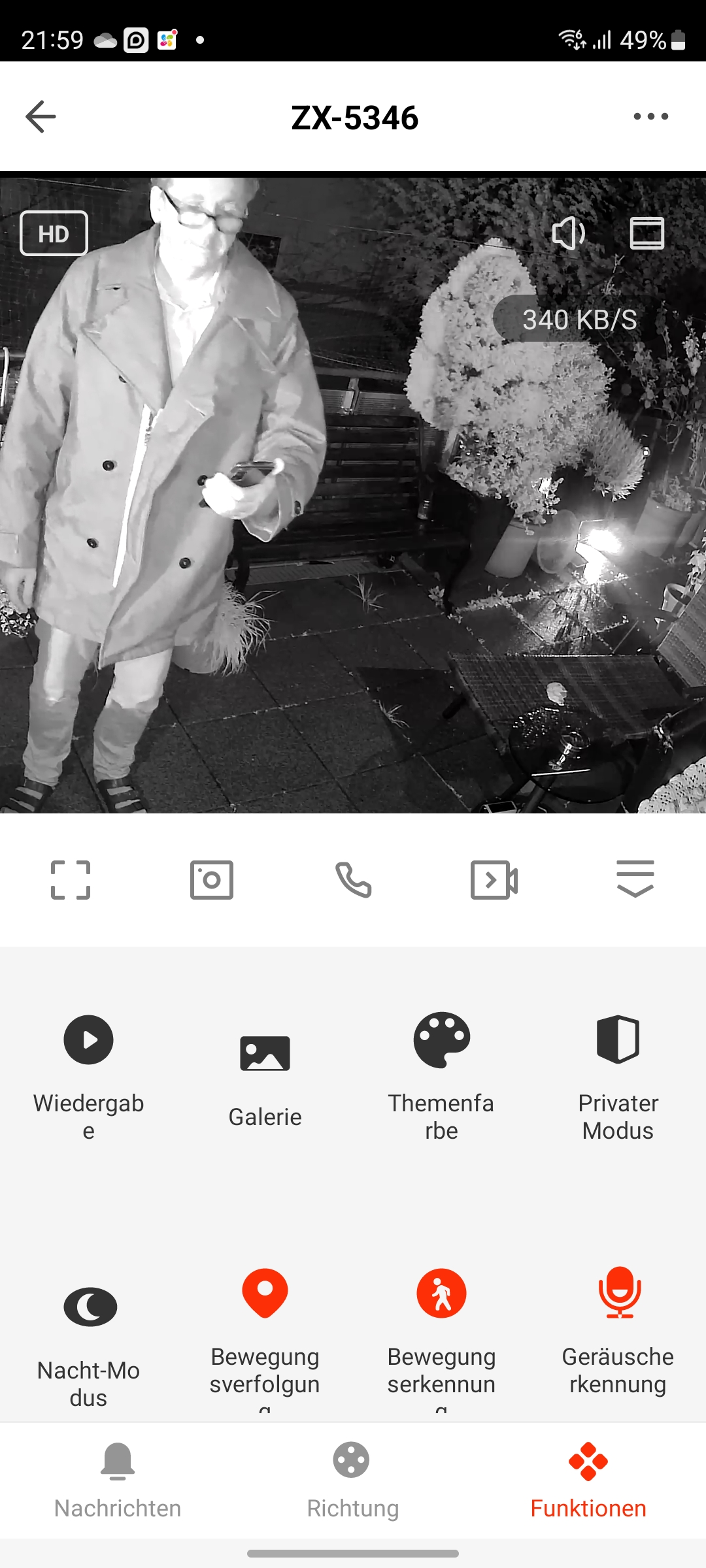 Es gibt aber auch weniger gutes zu berichten. So ist der Audio-Alarm in der Praxis unbrauchbar, da selbst bei niedrigster Empfindlichkeit schon das kleinste Geräusch, etwa das Gezwitscher eines Vogels, einen Alarm auslöst. Und die Bildqualität bei Dunkelheit ist bei Schwarz-Weiß-Aufnahmen allenfalls befriedigend. Gesichter erscheinen stark aufgehellt und sind teilweise unscharf.