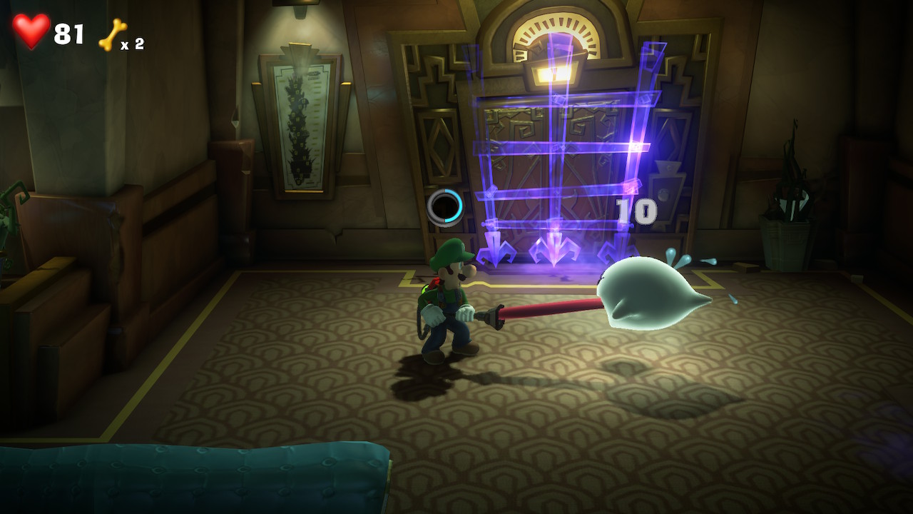 Wer seinen Joycon an einen Freund weitergibt, der kann sich die Rollen von Luigi und Fluigi untereinander aufteilen und die Rätsel des Hotels gemeinsam lösen. Manchmal müssen die Spieler zusammen anpacken, an anderer Stelle muss Fluigi durch das Gitter schlüpfen, um einen Schalter zu betätigen. Die Rätsel sind charmant und nie zu schwer gestaltet, wodurch sich Luigis Mansion 3 als abwechslungsreiche, leicht verdauliche Spielerfahrung gestaltet. Ein echtes Teamspiel, bei dem so ziemlich jeder auf seine Kosten kommt.
