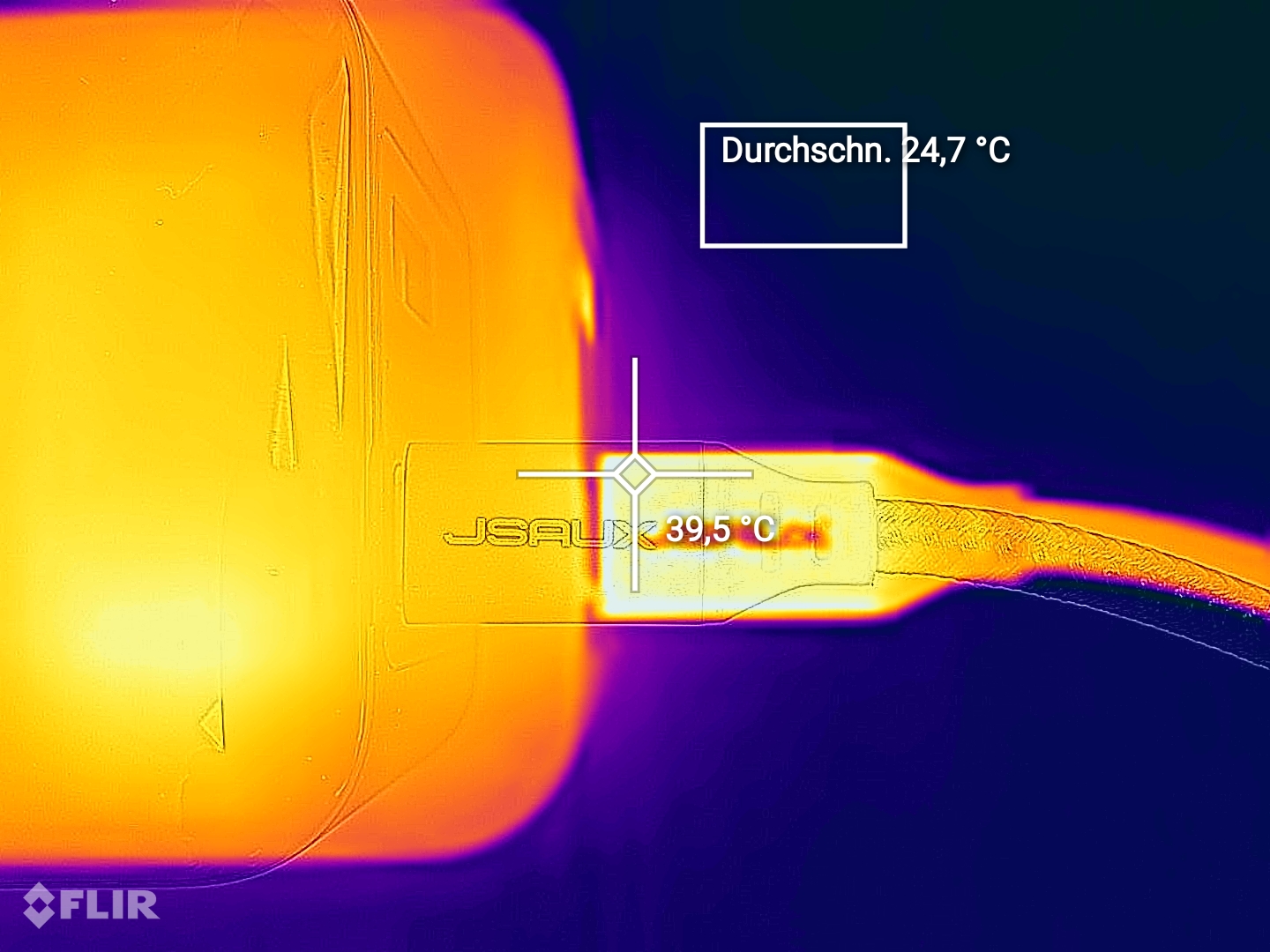 Zwar werden alle getesteten Kabel mit mindestens 100 Watt beworben, ob das in der Praxis aber tatsächlich stimmt, haben wir überprüft. Dazu machen wir Leistungstests mit einem starken Netzteil und einer Powerbank, welche mit mehr als 90 Watt lädt. Zusätzlich prüfen wir mit einer Wärmebildkamera, ob sich Kabel oder Stecker ungewöhnlich aufheizen.
