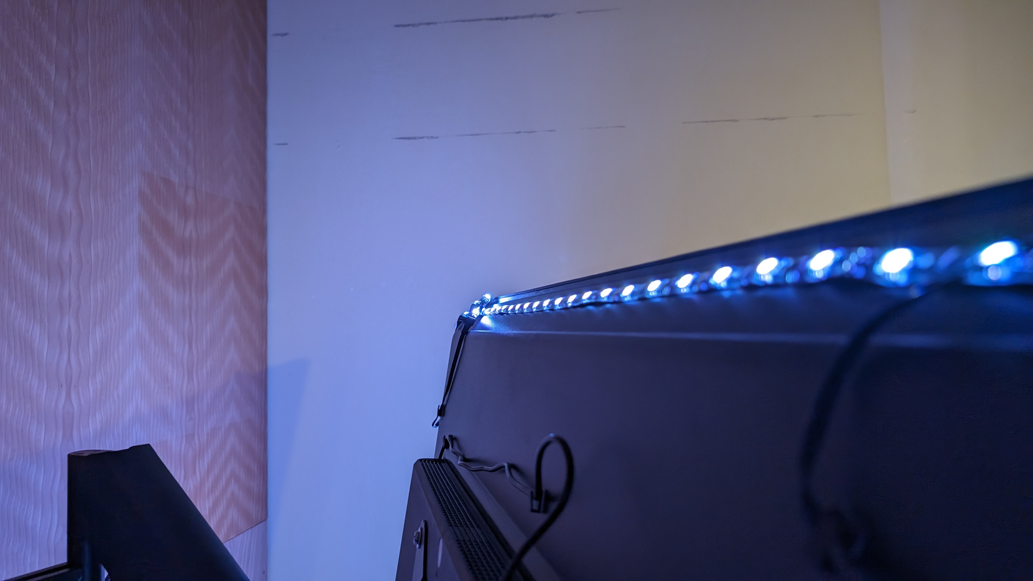 Doch es gibt auch gute und günstige Möglichkeiten, dieses effektvolle Feature nachzurüsten. Ein Lösungsansatz greift das HDMI-Signal über eine Sync-Box ab und überträgt die passenden Bildinformationen auf den LED-Strip, der am Rand der Rückseite des Fernsehers klebt. Ein zweiter Ansatz liest die Farbinformationen des Fernsehers über eine Kamera aus.