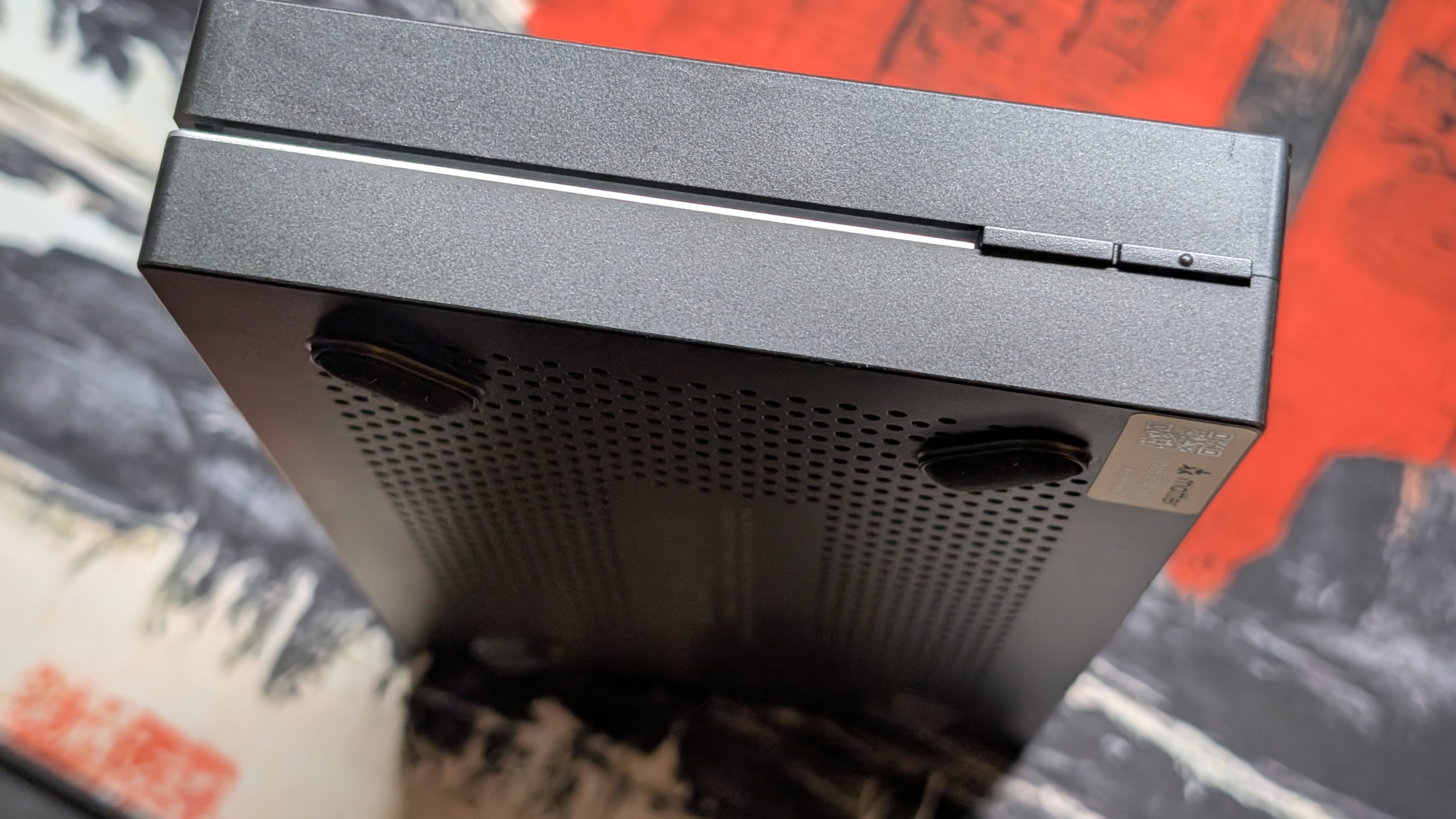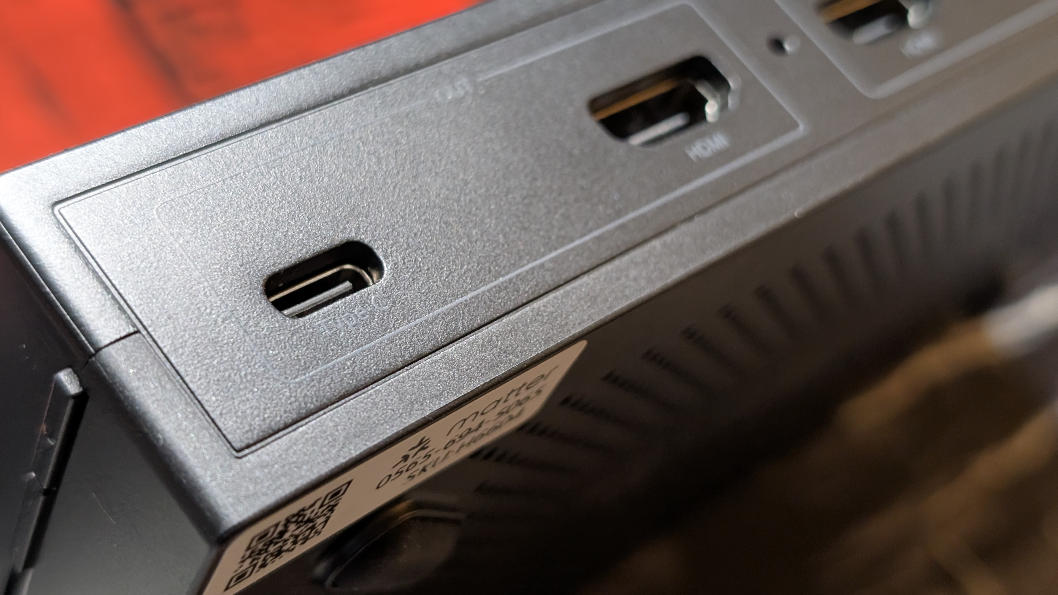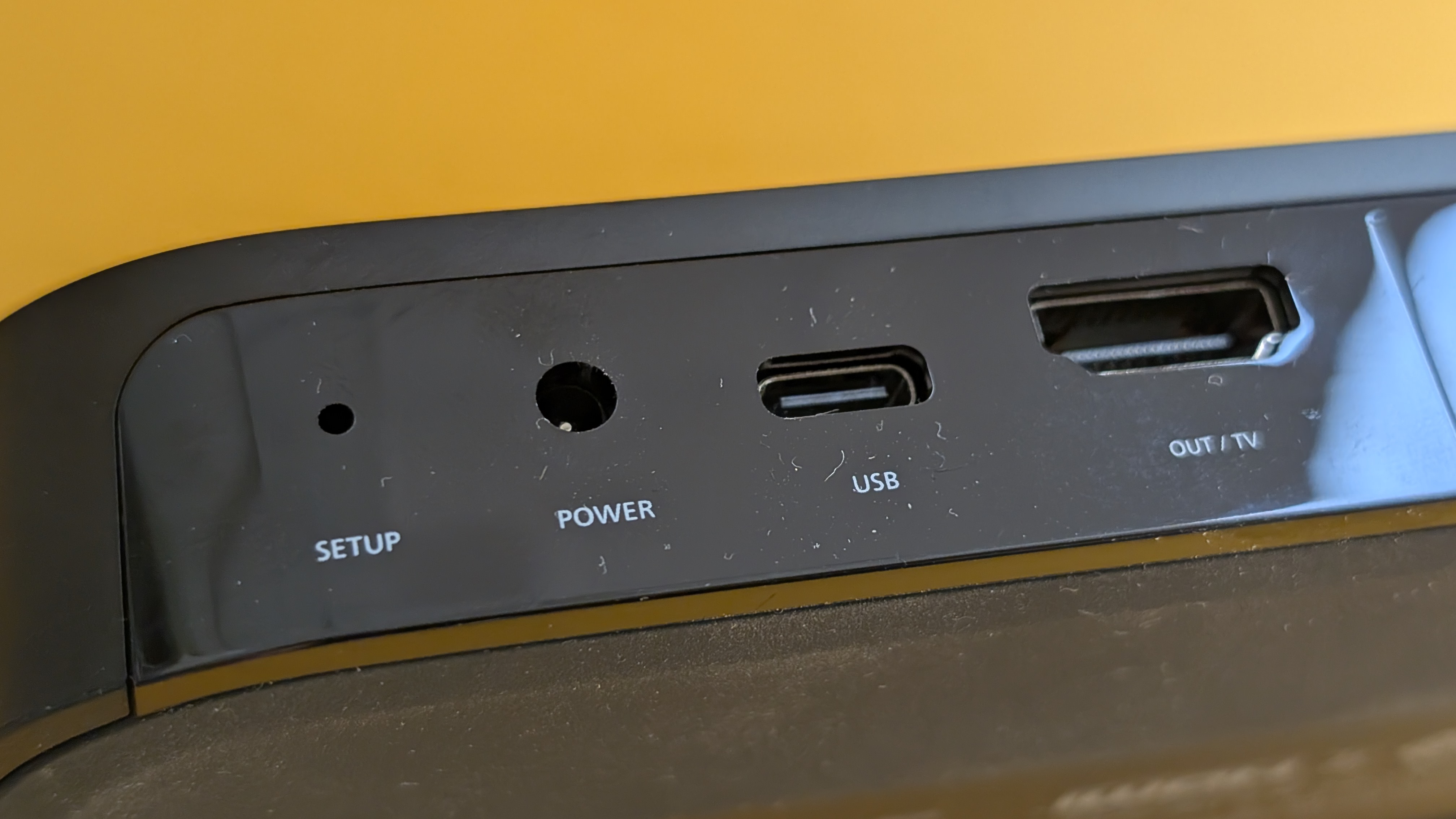 Die Sync Box 8K ähnelt optisch dem Vorgängermodell, hat aber einen dezenten glänzenden Ring am Rand der Oberseite. Mit Abmessungen von 200 × 108 × 25 mm passt sie locker unter oder hinter die meisten Fernseher. An der Rückseite befinden sich vier HDMI 2.1 Eingänge zum Anschluss von Konsolen und Mediaplayern sowie ein HDMI-Ausgang für die Verbindung zum TV. Zusätzlich gibt es einen USB-C-Anschluss, einen Stromanschluss und eine Reset-Taste.