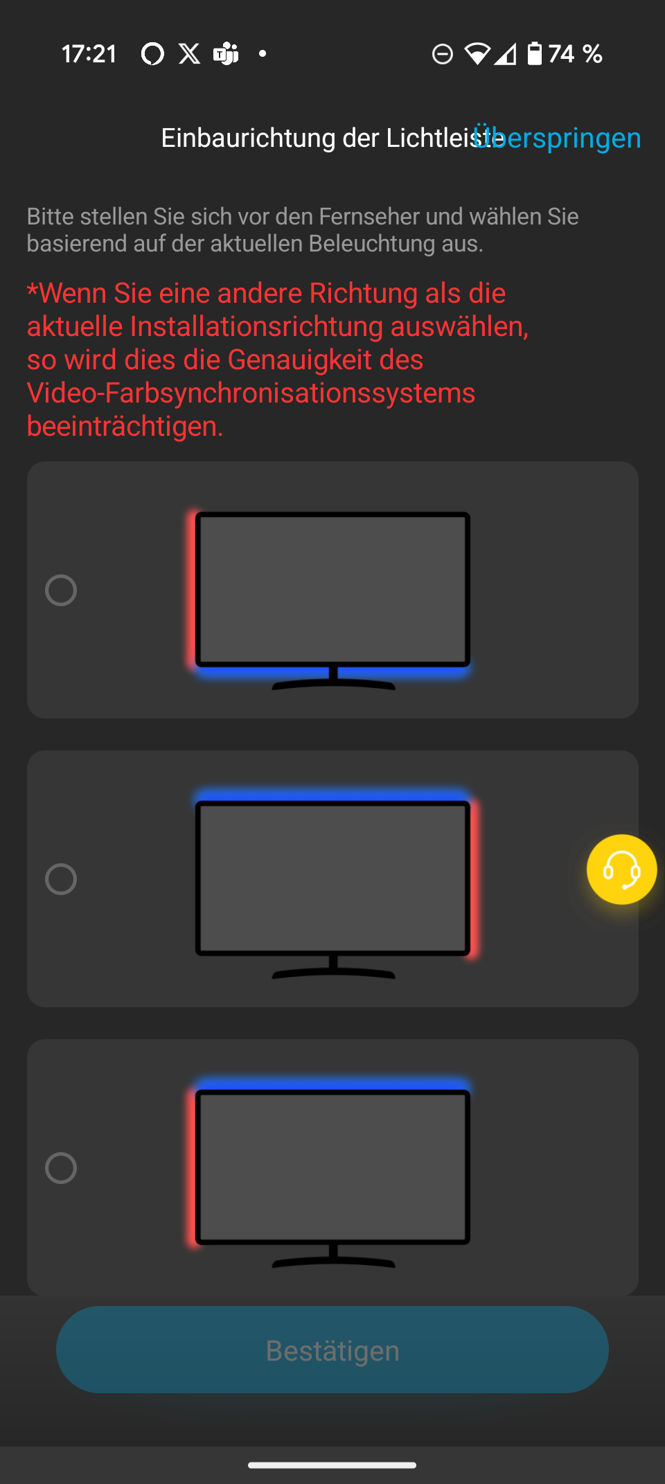 Die Installation gestaltete sich in unserem Test zunächst etwas schwierig. Zwar ließ sich alles korrekt verkabeln und der LED-Streifen gut an der Rückseite unseres 65-Zoll-Fernsehers anbringen, allerdings wollte die App die Sync-Box partout nicht finden. Hier mussten wir im Internet nach der Anleitung suchen, da keine im Lieferumfang enthalten war. Der Tipp: Die Box dreimal langsam aus- und einschalten, um sie in den Kopplungsmodus zu setzen. Dann klappte die Verbindung.