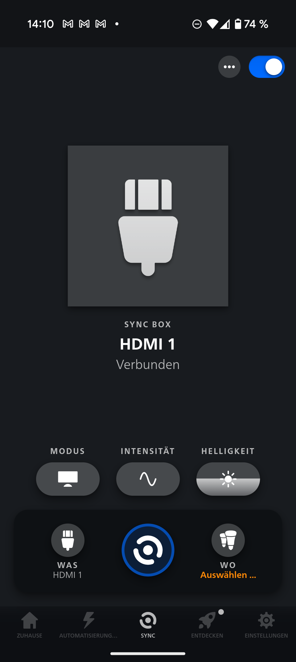 Die Einrichtung erfolgt über die Hue-App. Zunächst wird die Box per Bluetooth mit dem Smartphone verbunden, dann folgt die WLAN-Einrichtung per QR-Code. In der App lassen sich die HDMI-Eingänge benennen und ein virtueller Entertainment-Bereich zur Positionierung aller kompatibler Lampen einrichten. Diverse Sync-Modi und Einstellungen für Intensität und Helligkeit sind ebenfalls verfügbar, mehr dazu in der Bildergalerie. Die Steuerung kann wahlweise über die App, Sprachassistenten oder die TV-Fernbedienung erfolgen. Ein Firmware-Update steht bei Bedarf bereit.