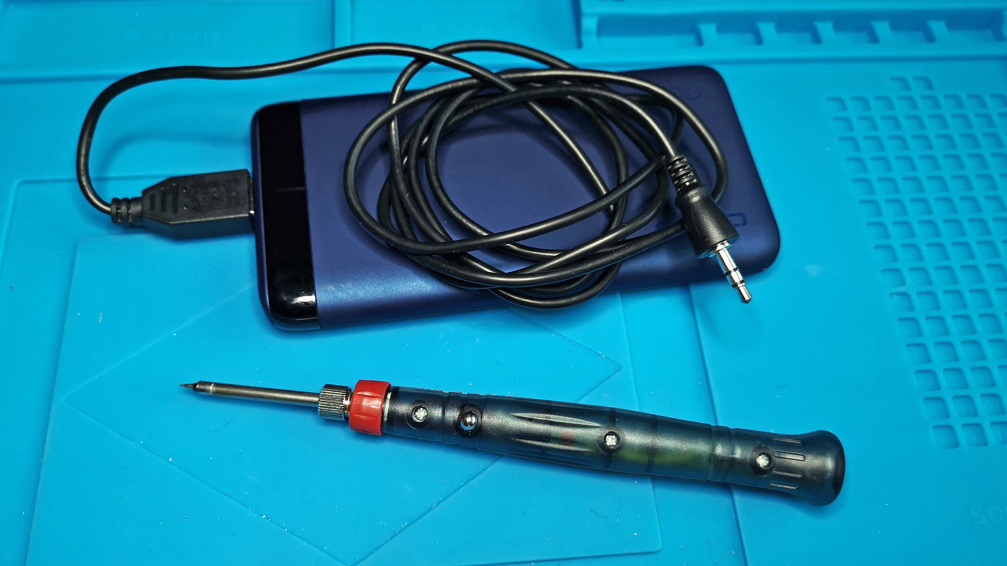 Der USB-C-Lötkolben KETS02 von Kaiweets an einer Powerbank..