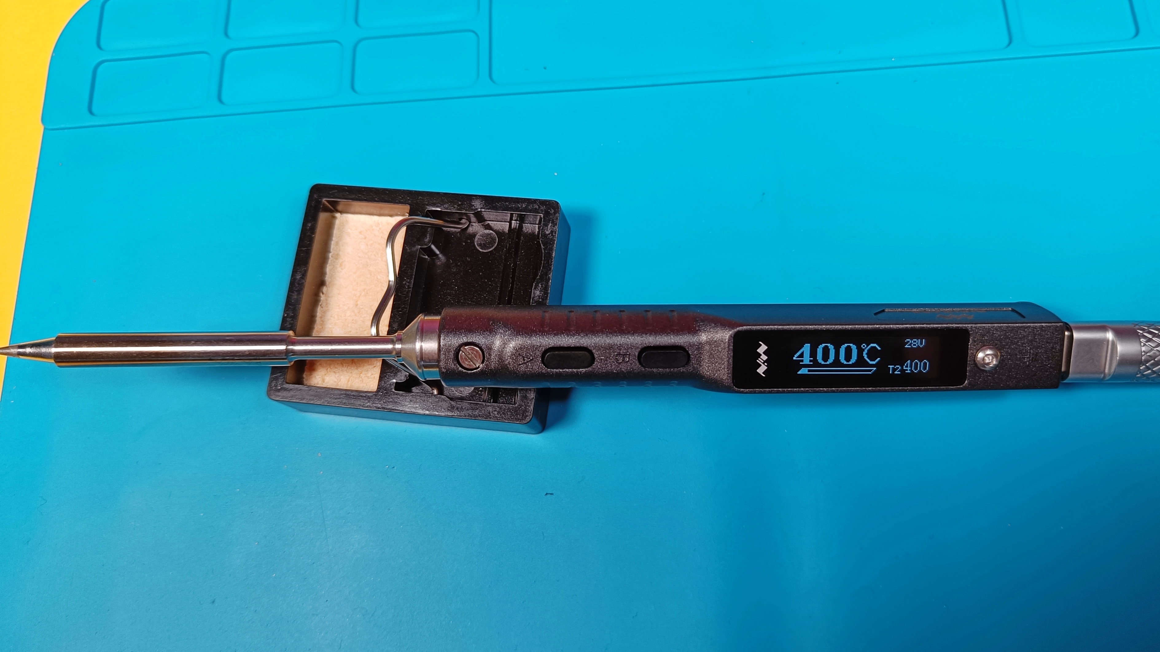 Die Stromversorgung ist zwischen 9 und 20 Volt zulässig, die Temperatur zum Löten per OLED-Display von 80 °C und 420 °C bequem einstellbar. Bis er über 400 Grad erreicht hat, dauert es nur knapp 10 Sekunden – damit gehört das Modell zu den schnellsten Testkandidaten.