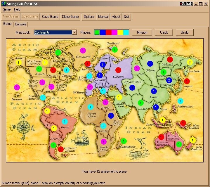 Java-Version des bekannten Strategiespiels Risiko mit Einzelspieler- und Netzwerkspieler-Modi