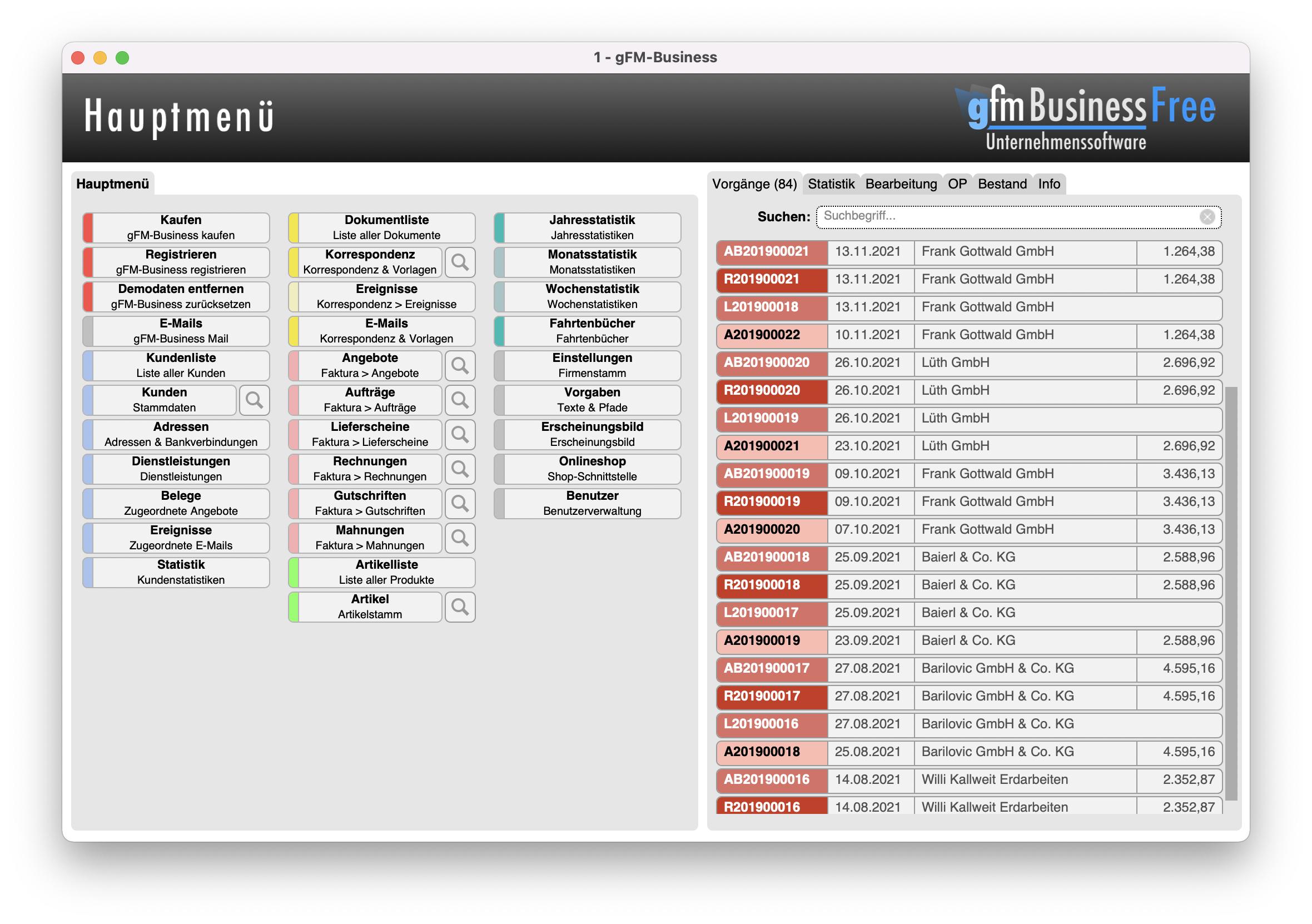 Rechnungsprogramm und Warenwirtschaftssystem mit Kunden-, Adress- und Dokumentverwaltung; bietet eine Faktura zum Erstellen von Angeboten, Aufträgen, Rechnungen, Lieferscheinen, Gutschriften und Mahnungen; Artikelverwaltung mit Lagerbestand; Zeiterfassung; Fahrtenbücher; unterstützt mehrere Währungen und beliebig viele Drucker; auch als kostenpflichtige Light- und Pro-Version mit erweitertem Funktionsumfang sowie als Customizing-Versionen erhältlich; der Download erfordert die Angabe einer gültigen Mail-Adresse