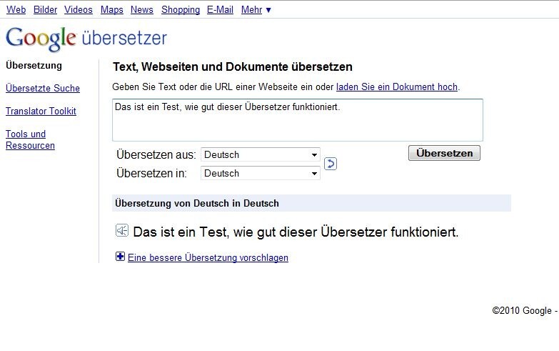 Mit dem Google Übersetzer lassen sich komplette Texte zwischen verschiedenen Sprachen übersetzen.