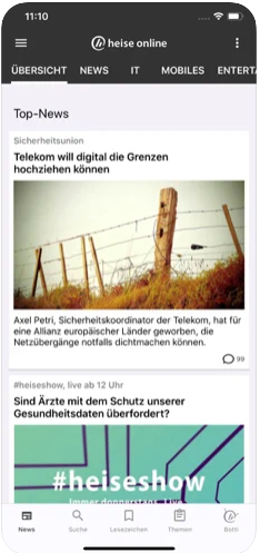 Die heise online - App für iPhone & iPad bietet einen schnellen und übersichtlichen Zugriff auf Nachrichten, Hintergrundberichte, Forendiskussionen und Videos des gesamten Online-Auftritts von heise online inklusive aller Channels.