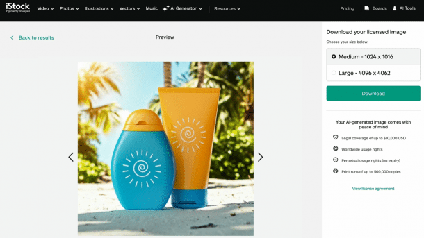 The photo agency Getty Images offers a commercially secure AI image generator. Product images can now be created there and reference photos can be used.