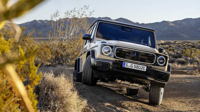 Bei Bedarf bewältigt der elektrische G 580 EQ Steigungen bis zu 100 Prozent. Als maximale Schräglage gibt Mercedes-Benz die G-Klasse bis 35 Grad frei, ebenso für eine Wattiefe von 85 cm. "Durch die einzeln ansteuerbaren Elektromotoren und den niedrigen Schwerpunkt ist die elektrische G-Klasse aus unserer Sicht sogar geländegängiger als die Verbrenner", sagt Chefentwickler Fabian Schossau.