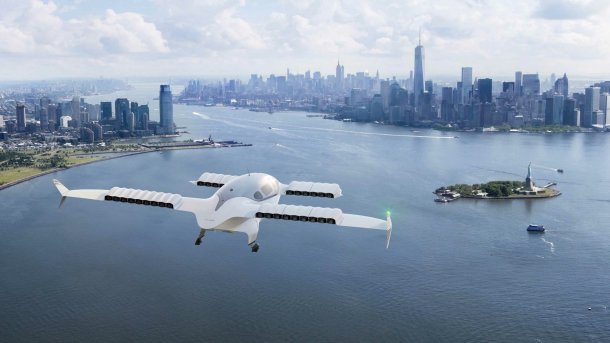 So wie hier vom Computer als Grafik erzeugt könnte es einmal aussehen, wenn ein Lilium Jet New York ansteuert.